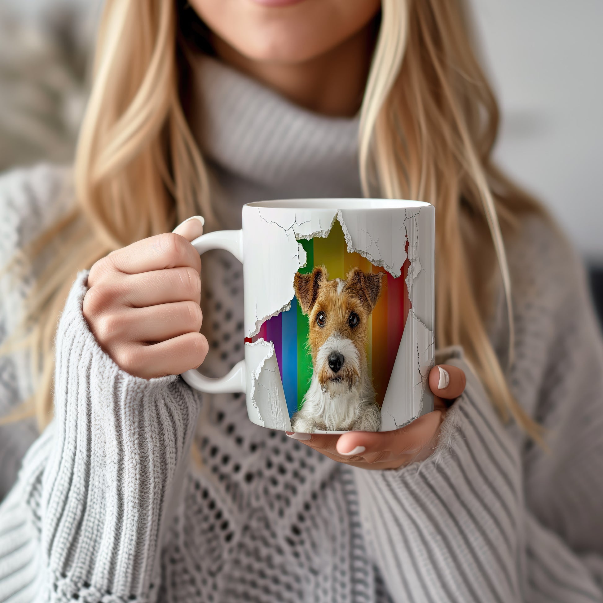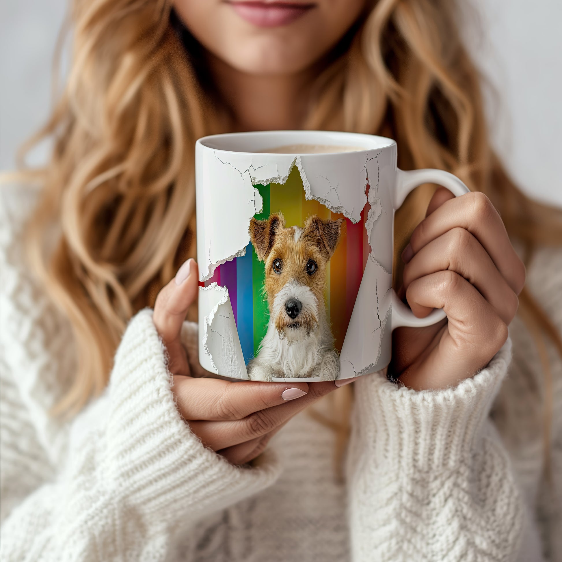 Hrnek s roztomilým motivem veselého psa a duhovými pruhy je ideální pro milovníky zvířat. Skvělý tip na dárek pro přátele nebo rodinu, kteří ocení hravý design. Materiál: keramika. Objem: 330 ml. Vhodné do myčky i mikrovlnky. Tento hrnek přináší radost do každodenního pití a zaručuje pozitivní náladu.