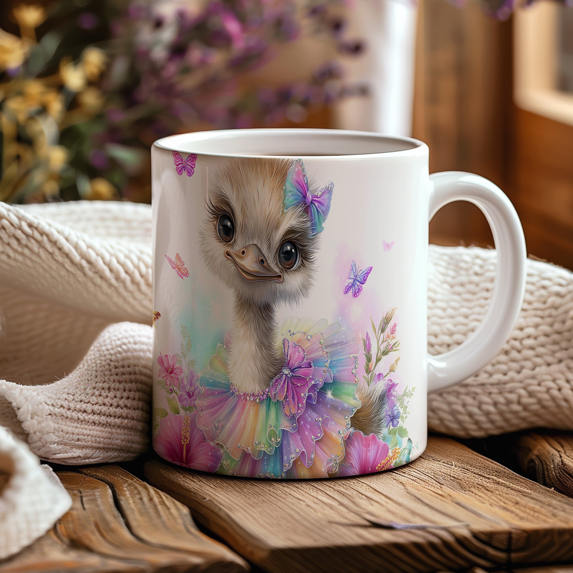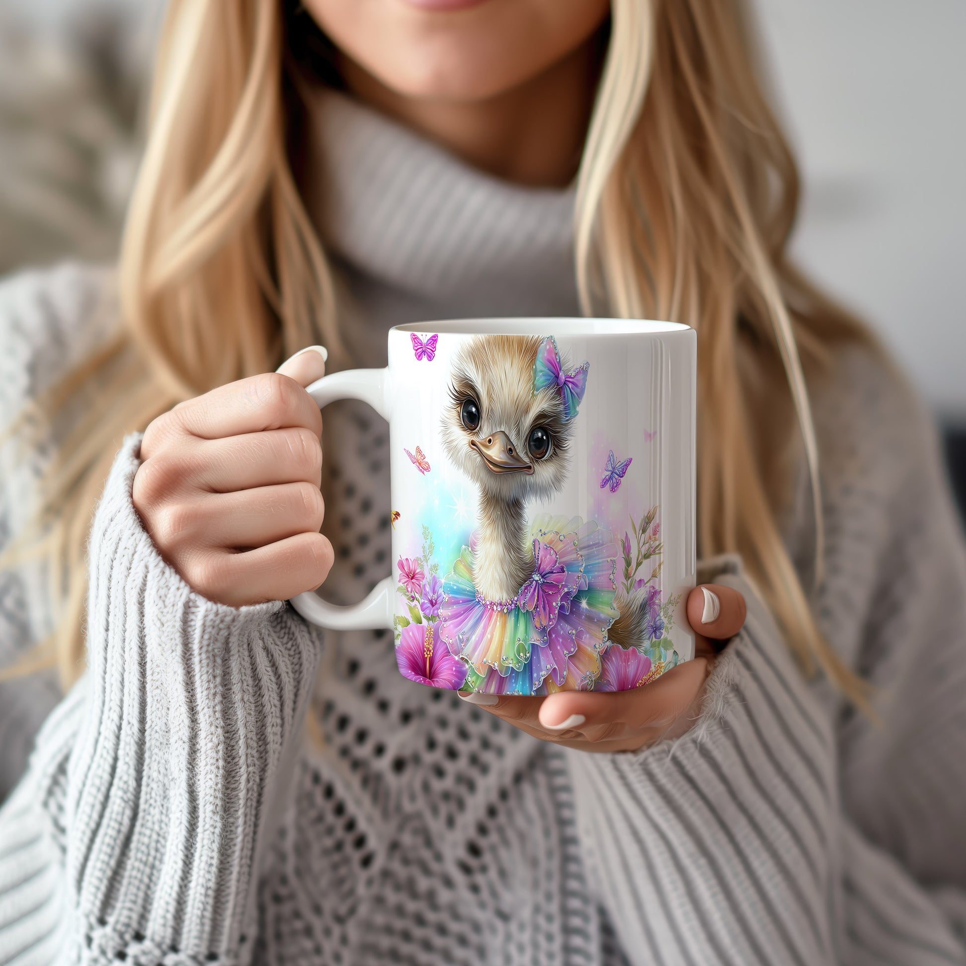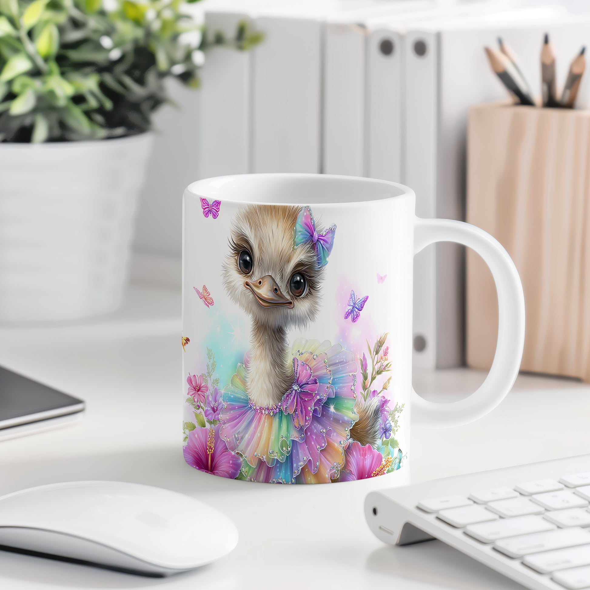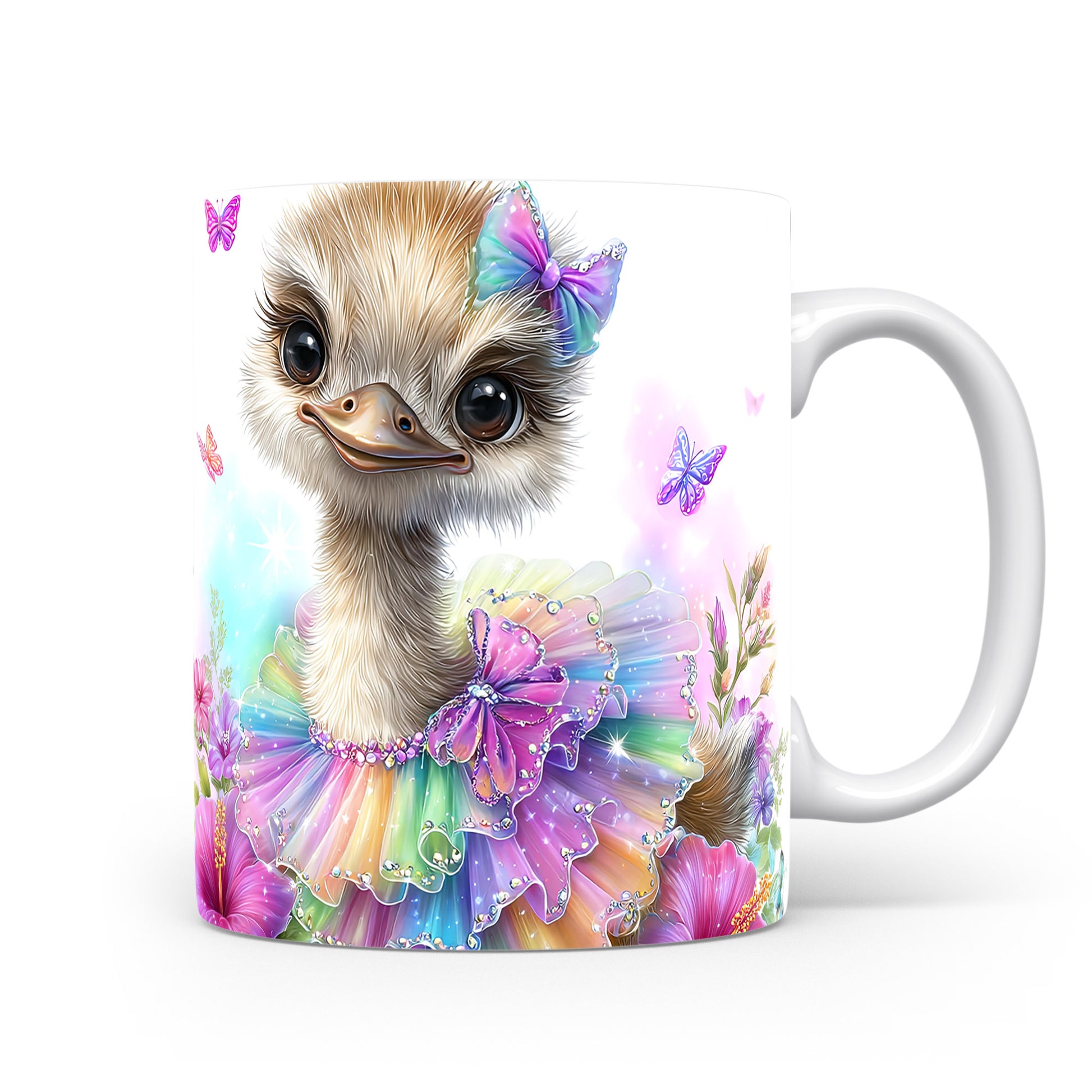 Elegantní hrnek s motivem roztomilého pštrosa v barevném tutu. Tento hrnek je ideální pro milovníky zvířat a jedinečného designu, skvělý tip na dárek pro každého, kdo ocení originalitu. Materiál: keramika. Objem: 330 ml. Vhodné do myčky i mikrovlnky. Používání tohoto hrnku přináší radost a zábavu do každodenního pití.