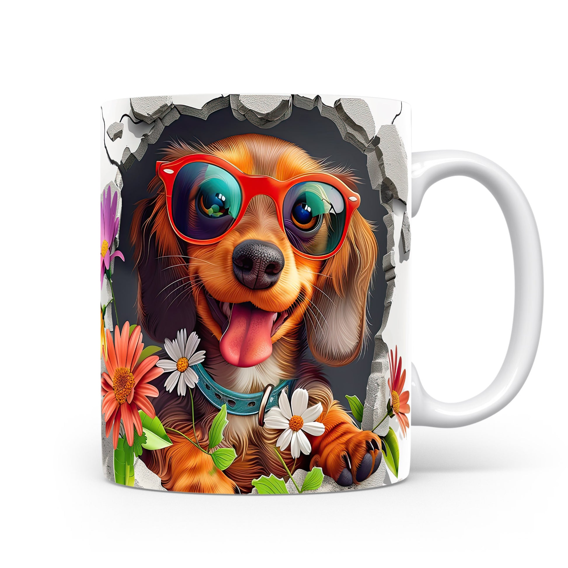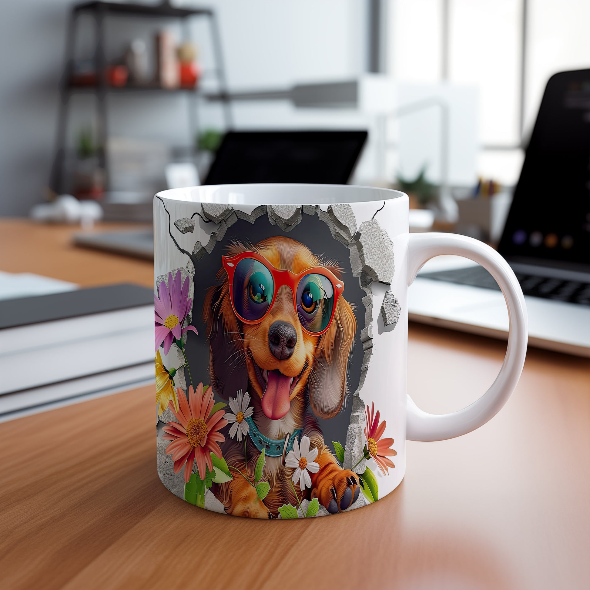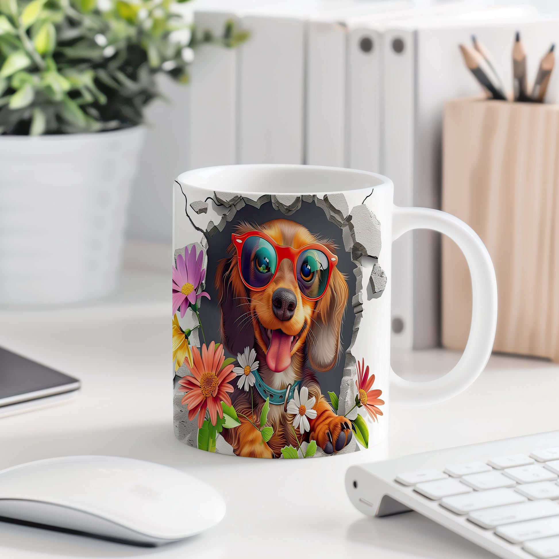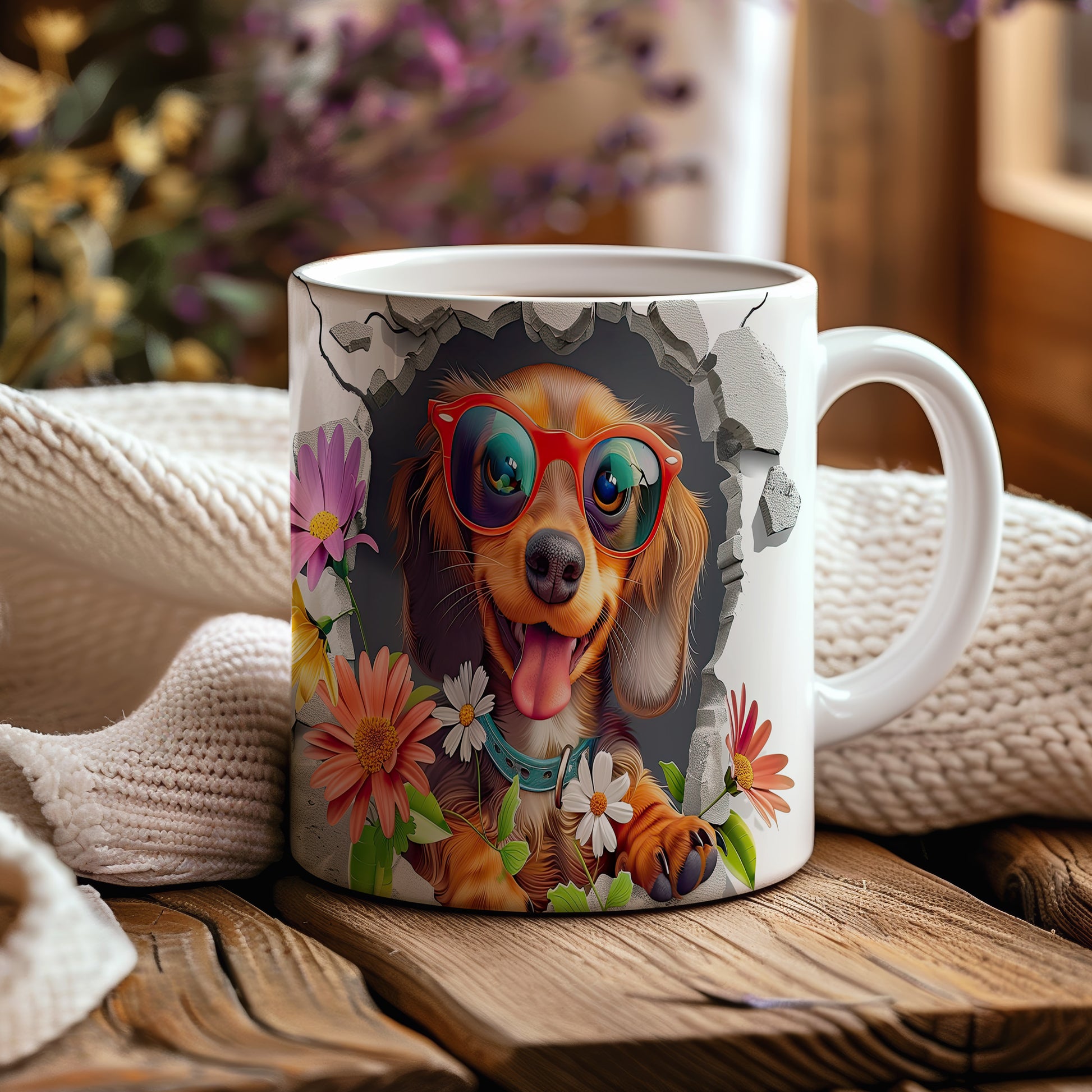 Hrnek s roztomilým psem v brýlích a květinami je ideální volbou pro všechny milovníky psů. Tento hrnek potěší každého, kdo si rád vychutnává kávu nebo čaj. Materiál: keramika. Objem: 330 ml. Vhodné do myčky i mikrovlnky. Při používání tohoto hrnku si užijete nejen skvělý design, ale i praktické vlastnosti.