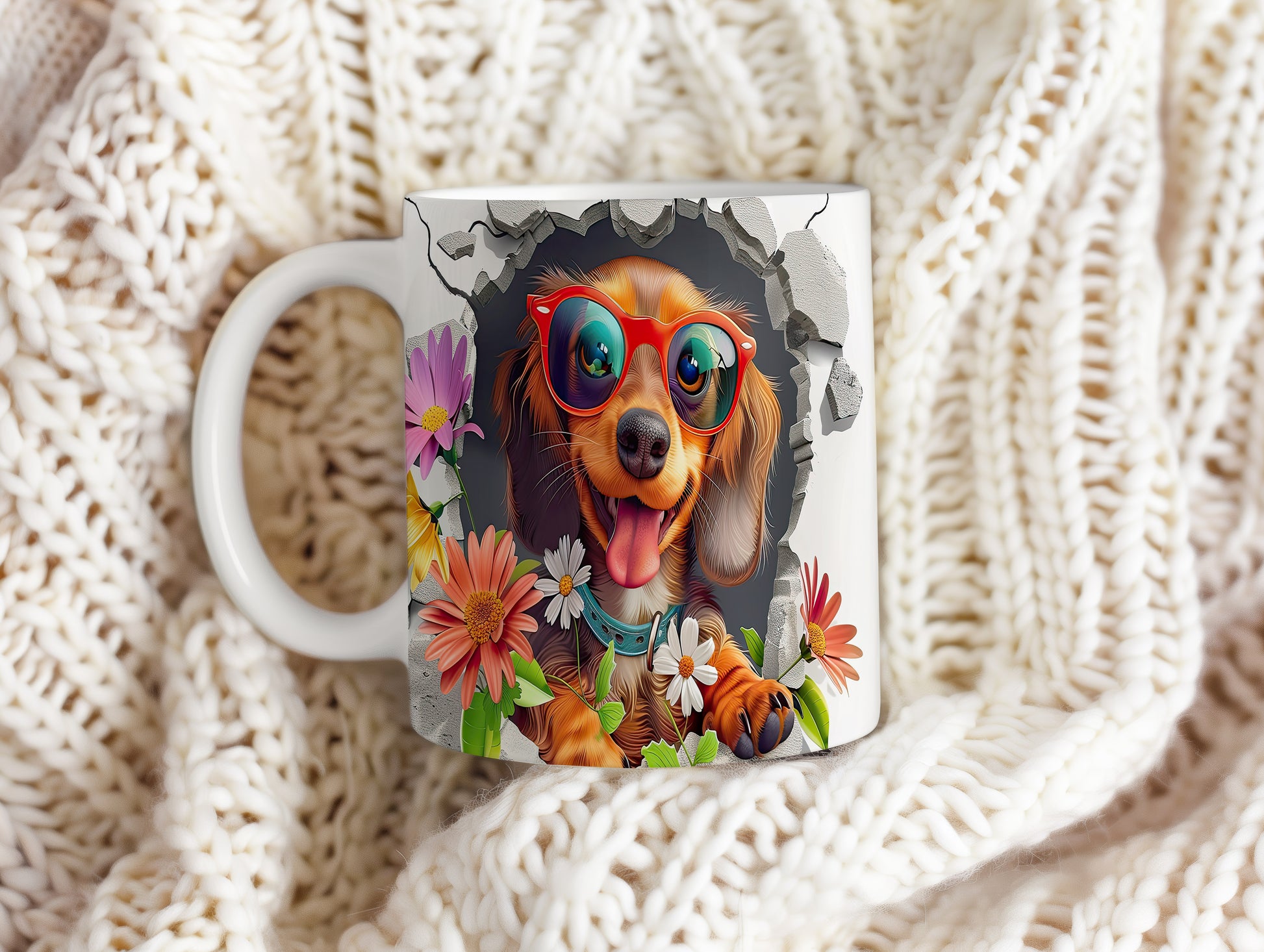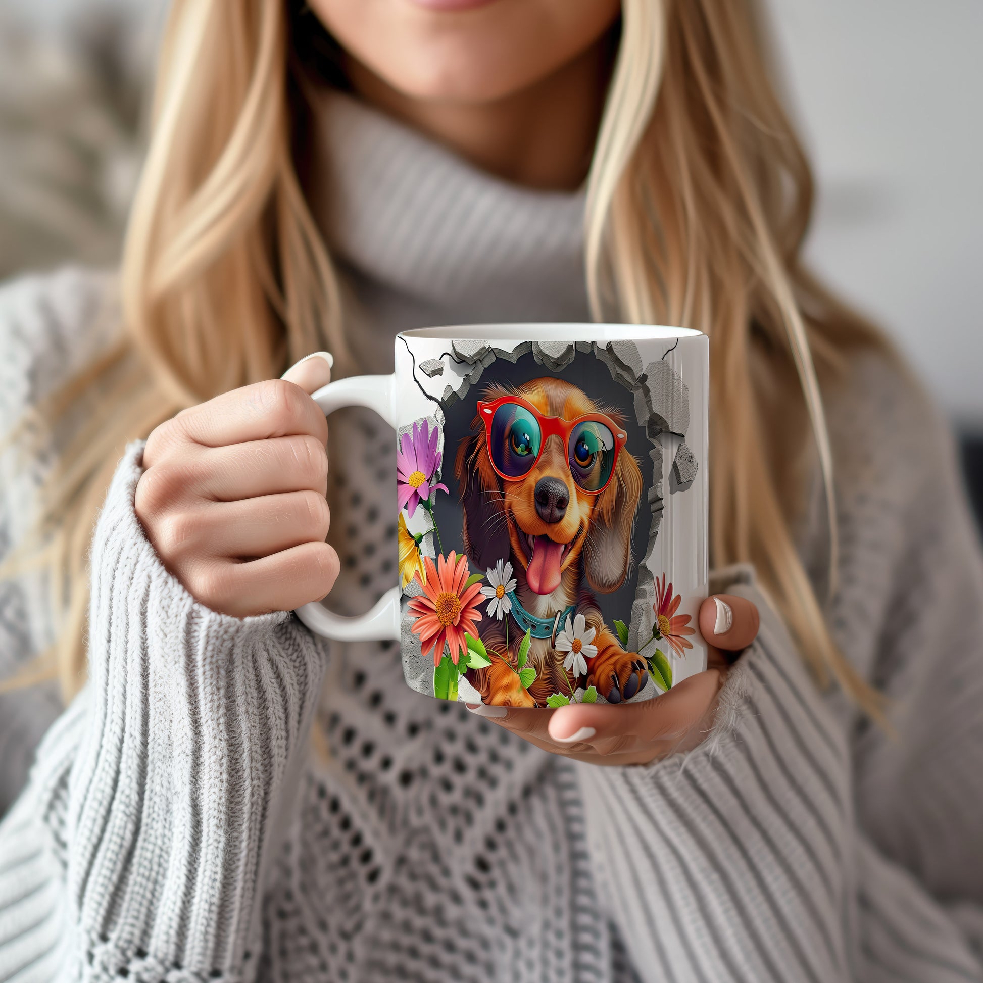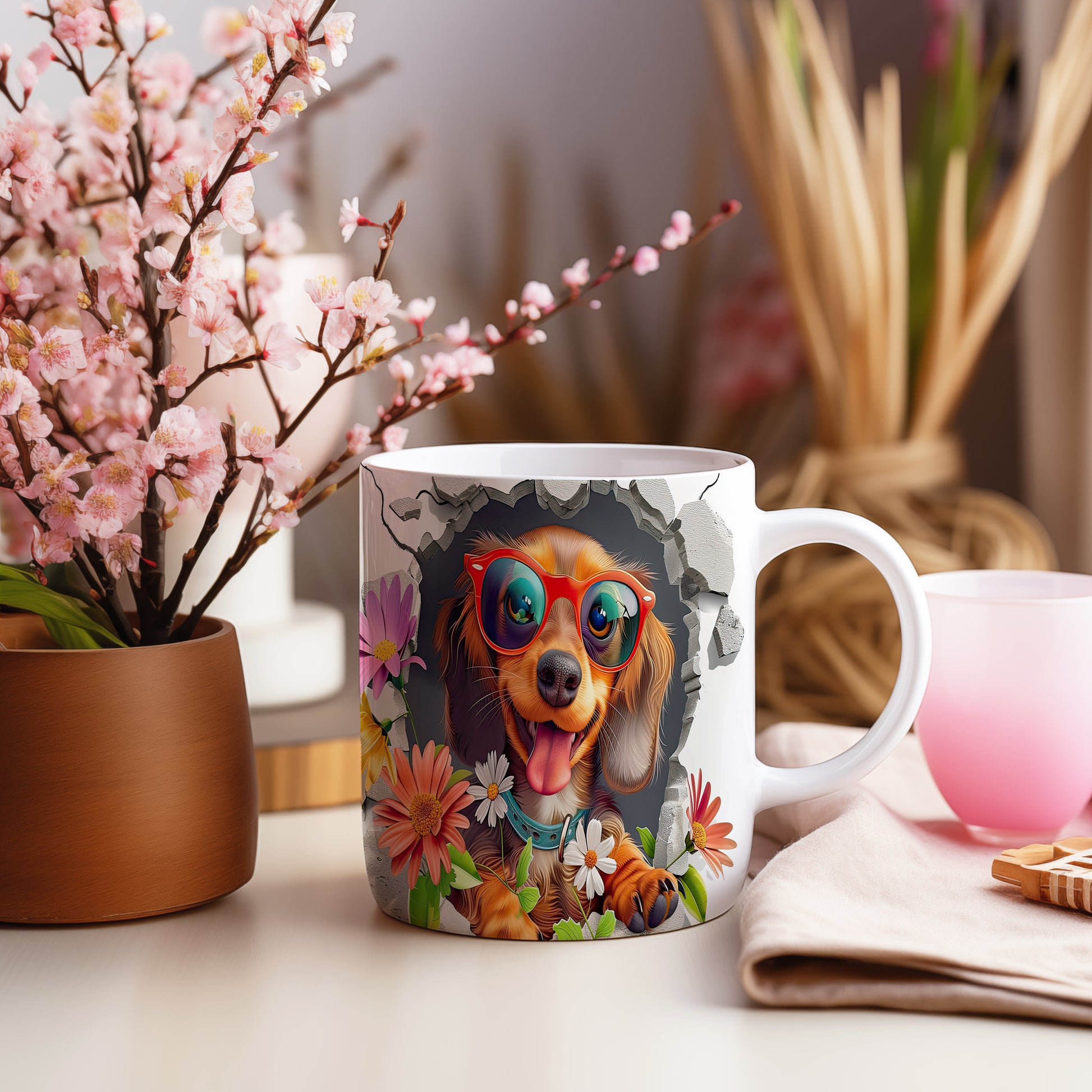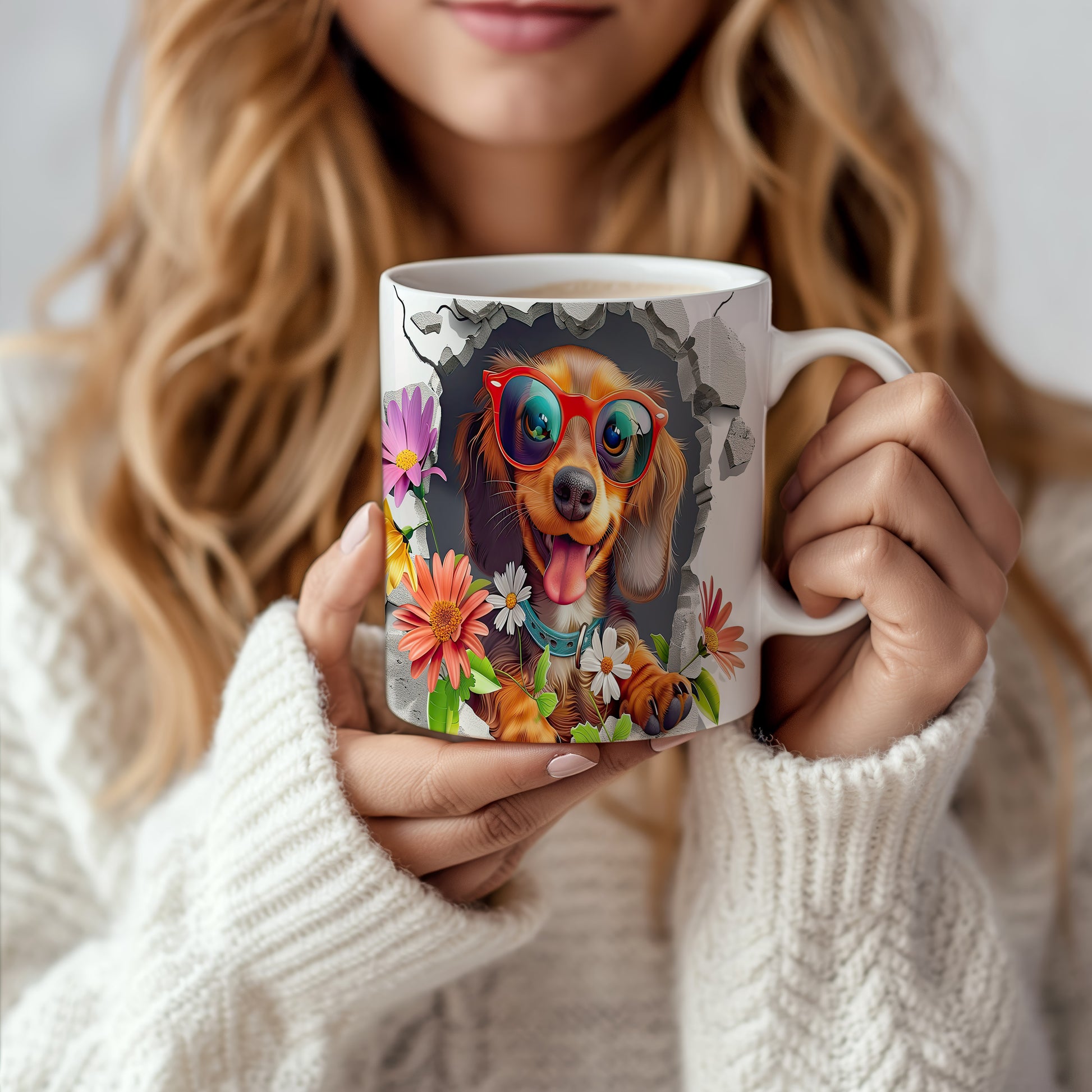 Hrnek s roztomilým psem v brýlích a květinami je ideální volbou pro všechny milovníky psů. Tento hrnek potěší každého, kdo si rád vychutnává kávu nebo čaj. Materiál: keramika. Objem: 330 ml. Vhodné do myčky i mikrovlnky. Při používání tohoto hrnku si užijete nejen skvělý design, ale i praktické vlastnosti.