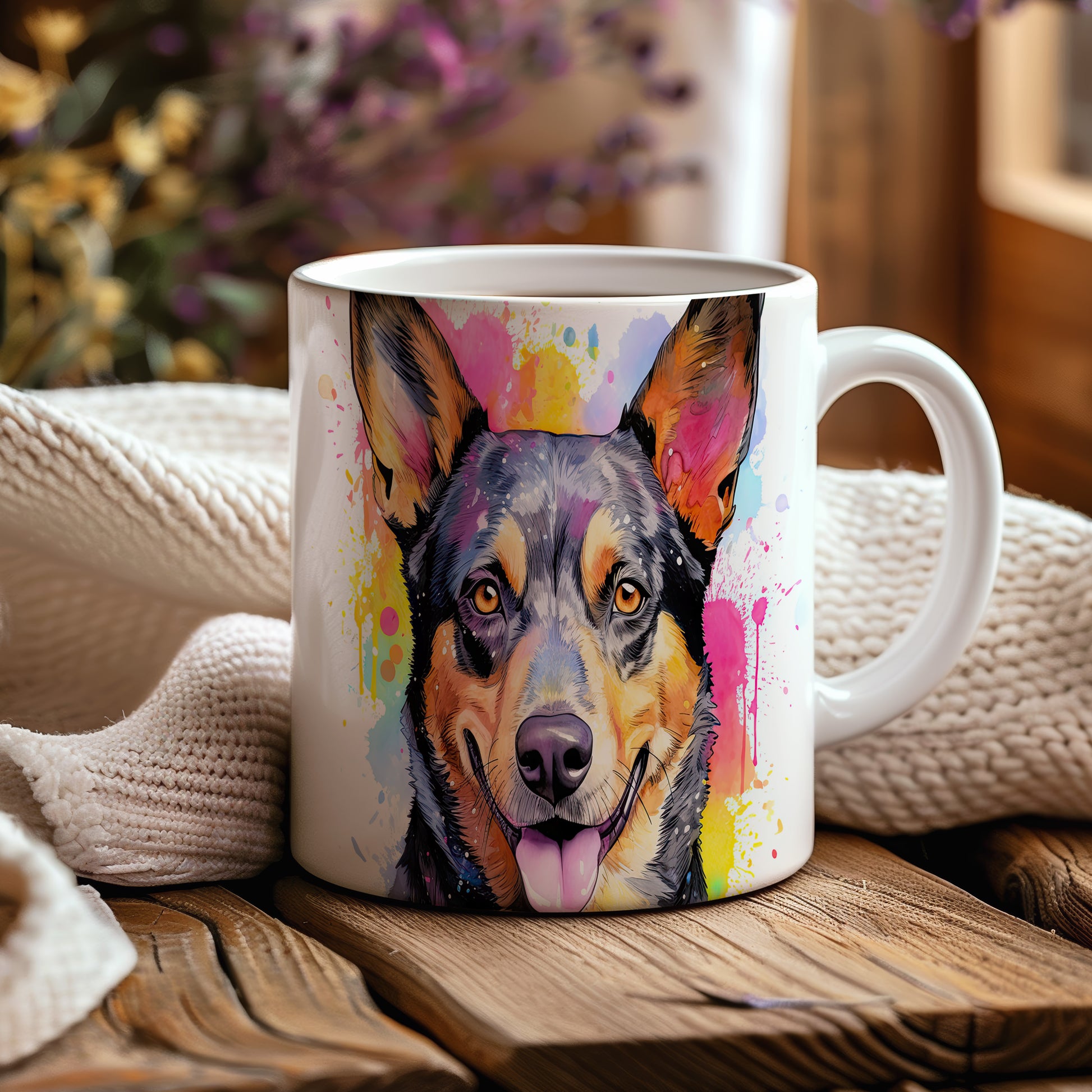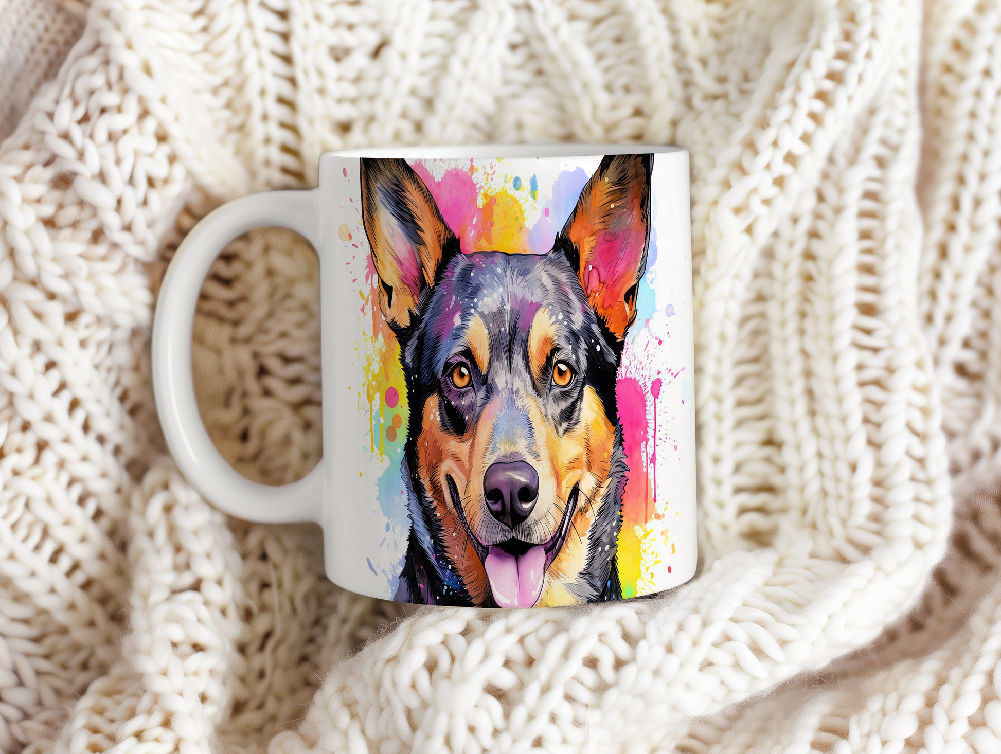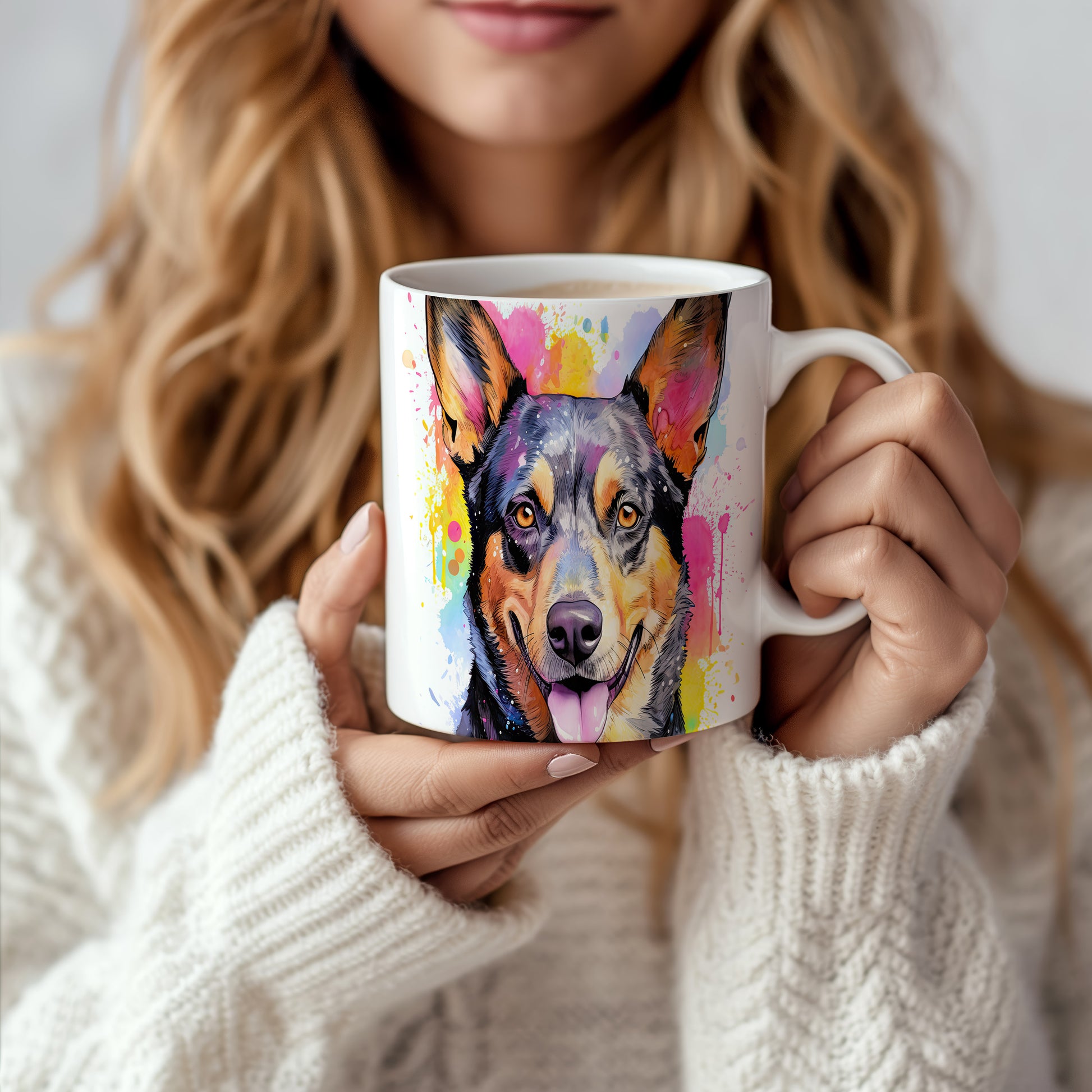 Hrnek s veselým ovčákem a barevnými tóny