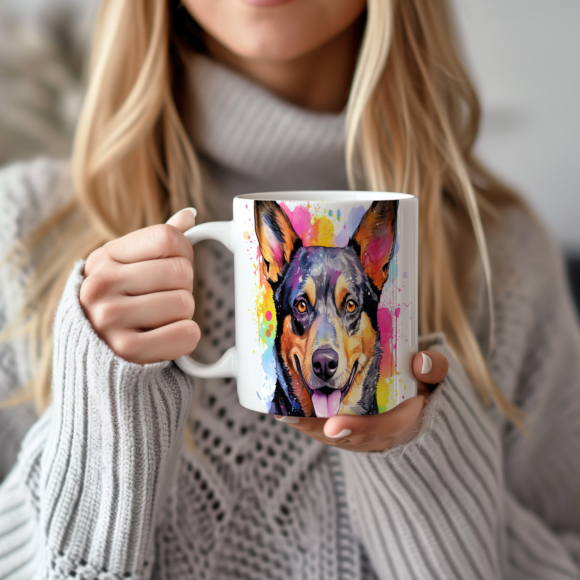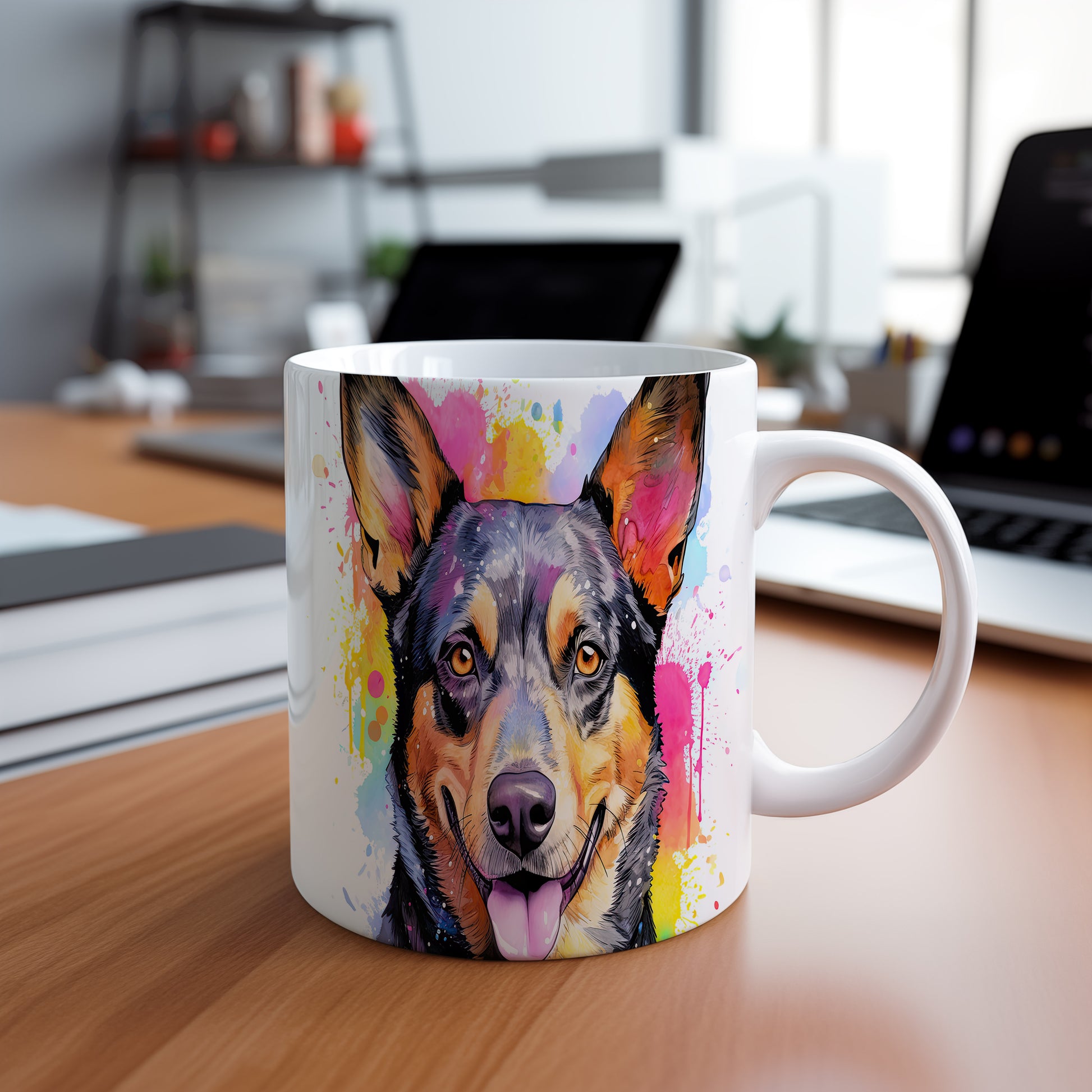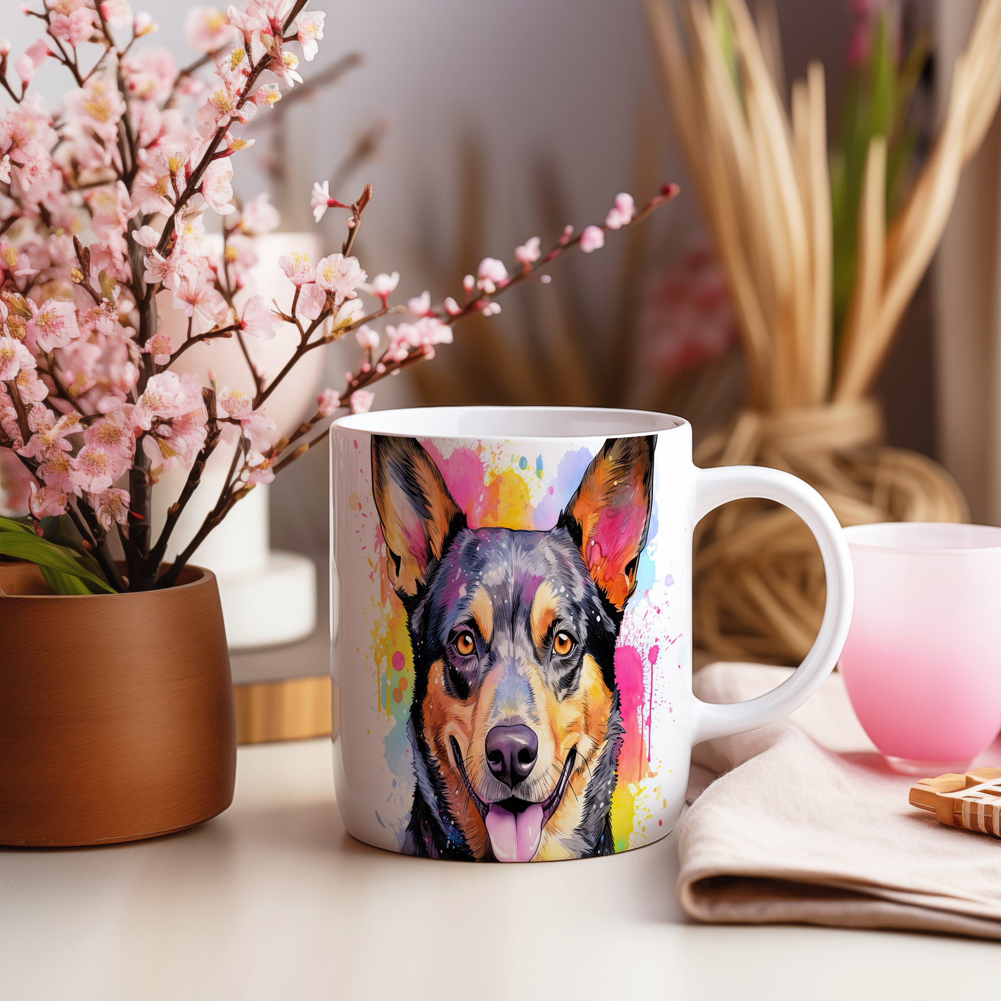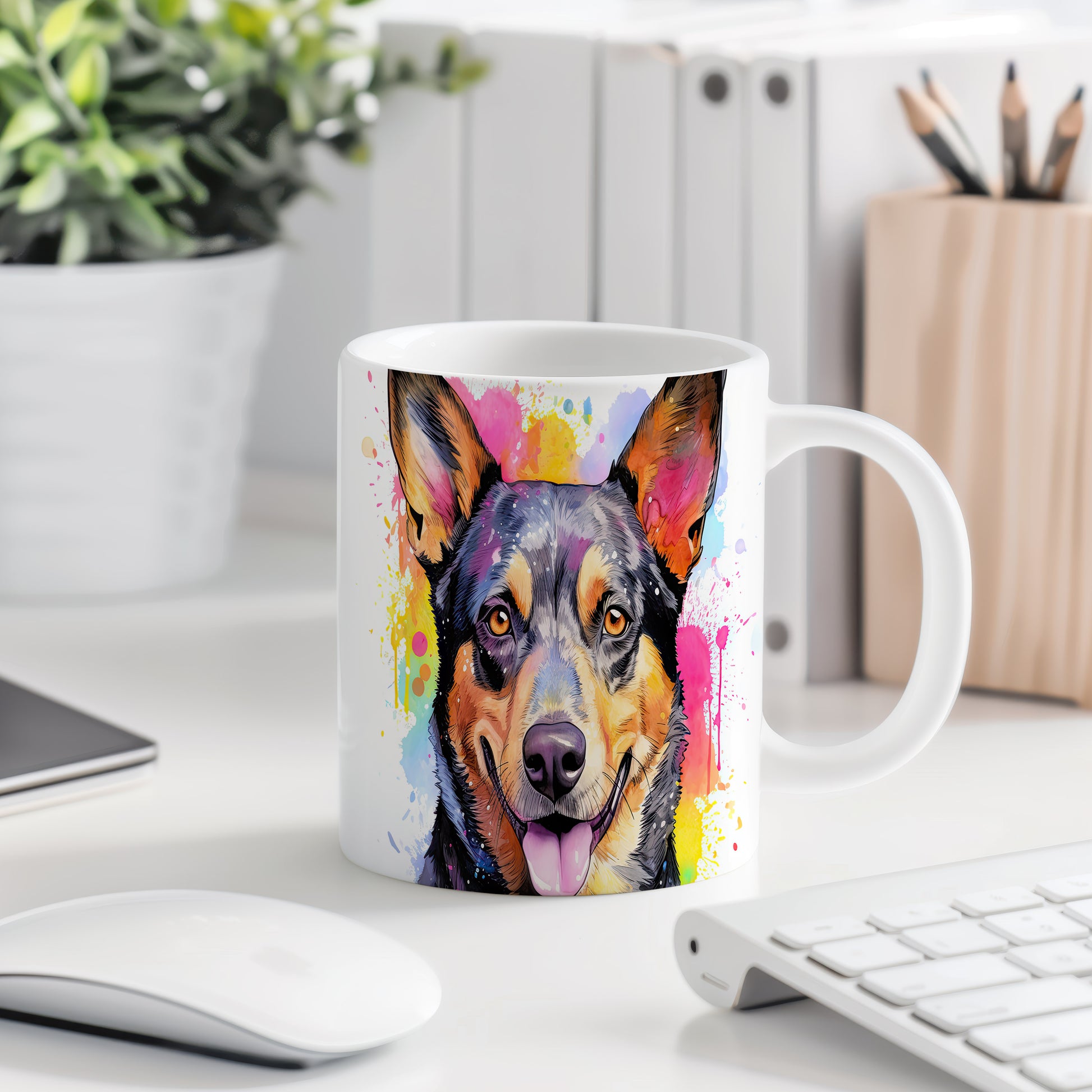 Hrnek s veselým ovčákem a barevnými tóny
