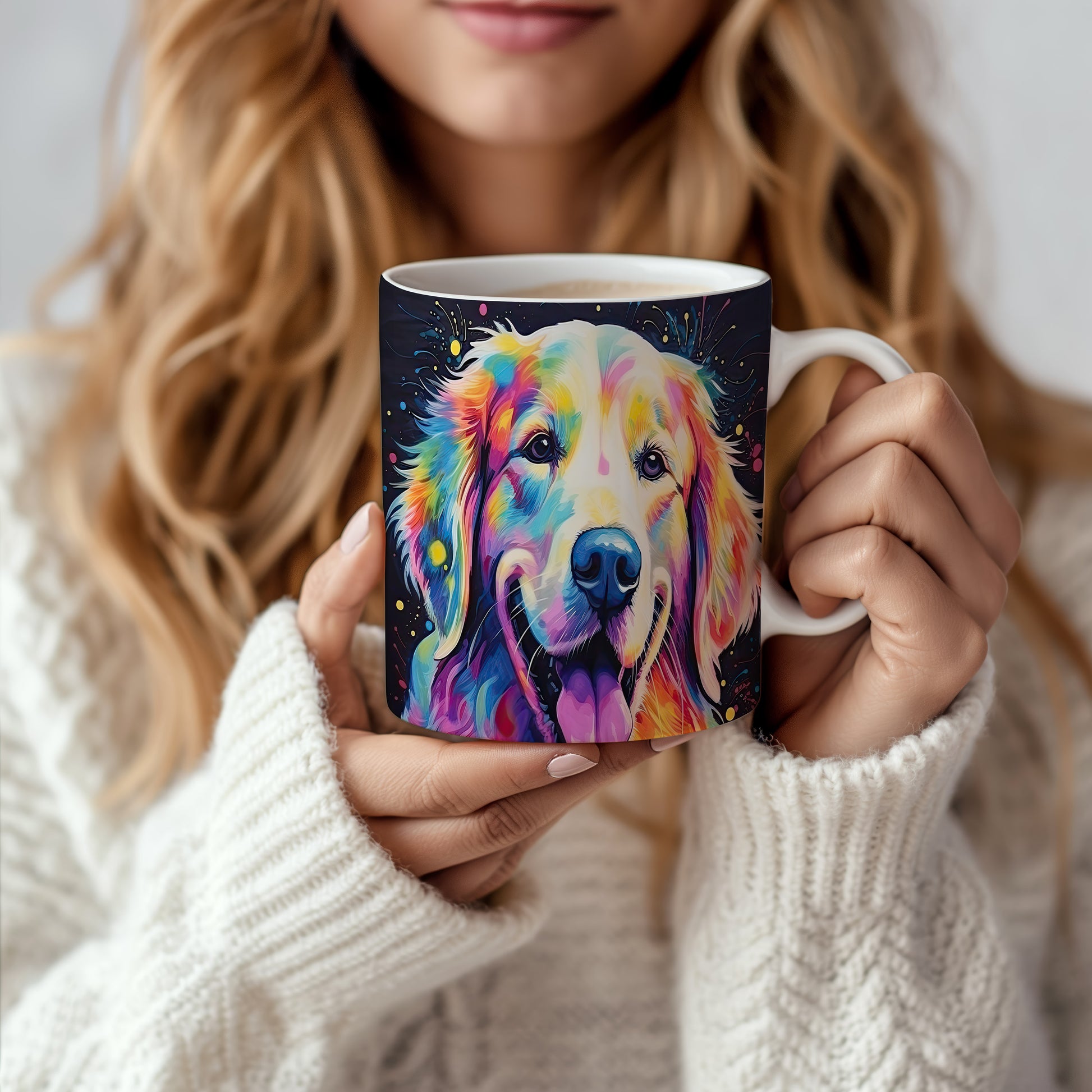 Tento keramický hrnek zobrazuje veselého retrívra v barevném stylu. Je ideální pro milovníky psů a skvělým dárkem pro každého, kdo ocení roztomilé motivy. Materiál: keramika. Objem: 330 ml. Vhodné do myčky i mikrovlnky. Používání tohoto hrnku přináší radost a zábavu do každodenního pití.