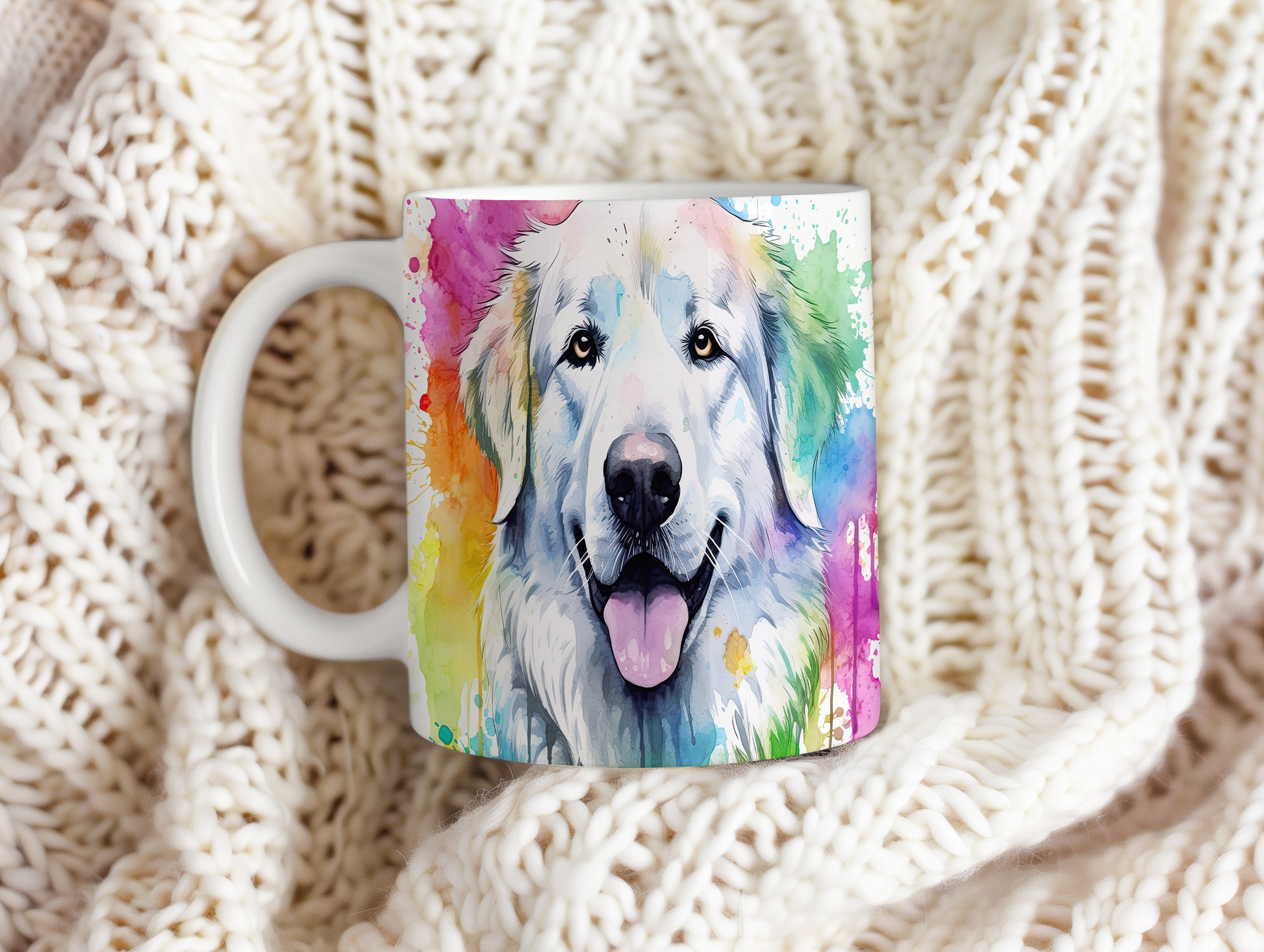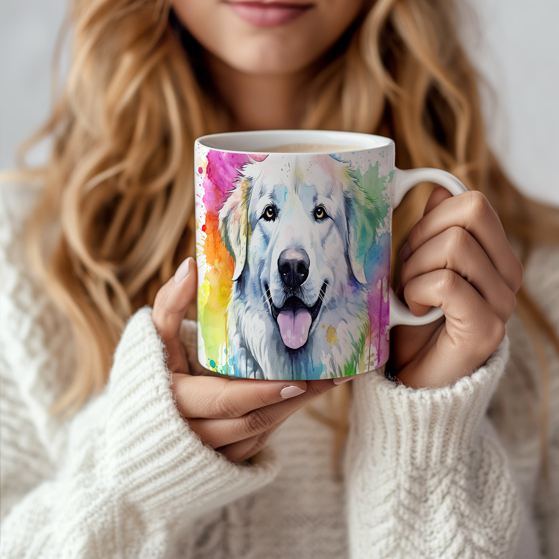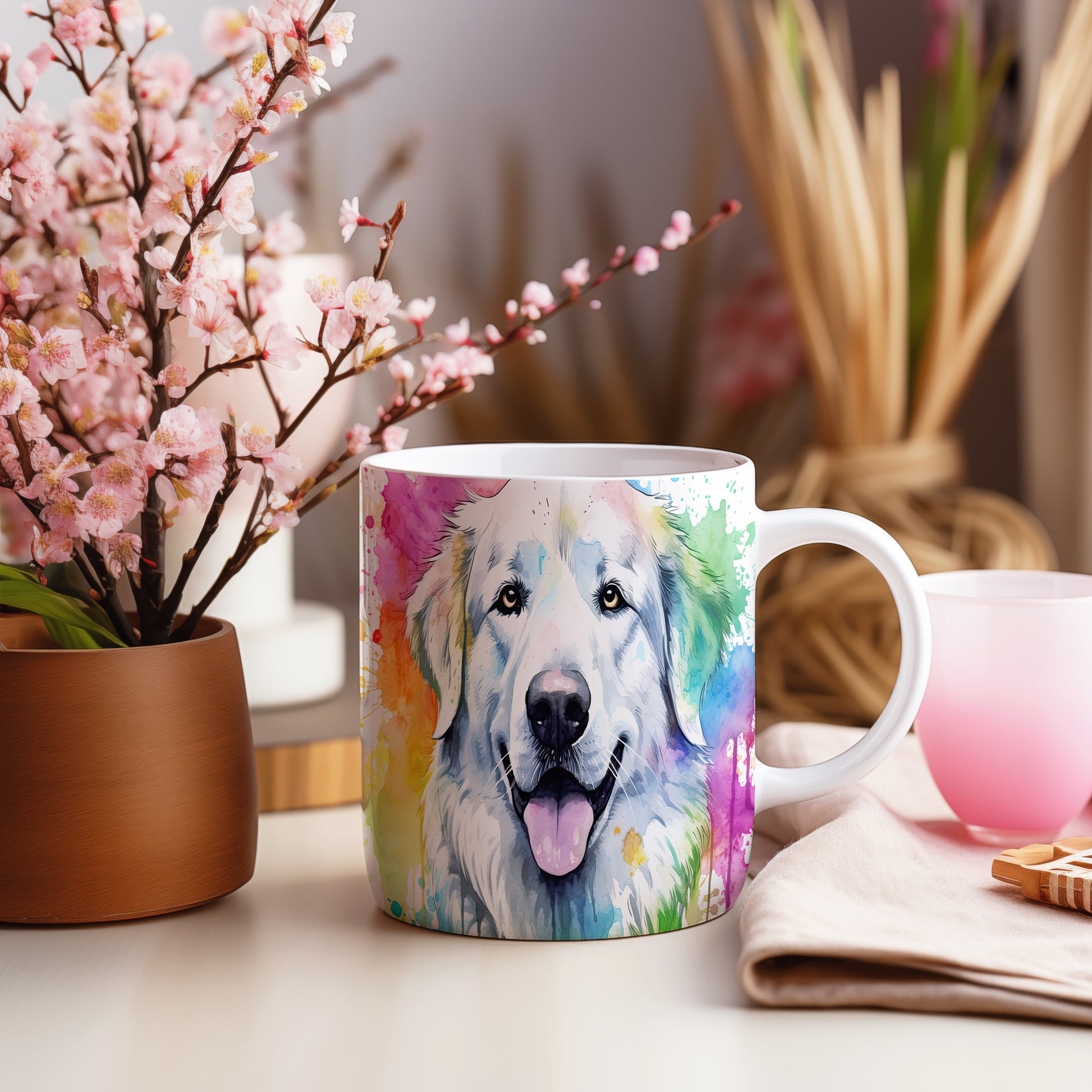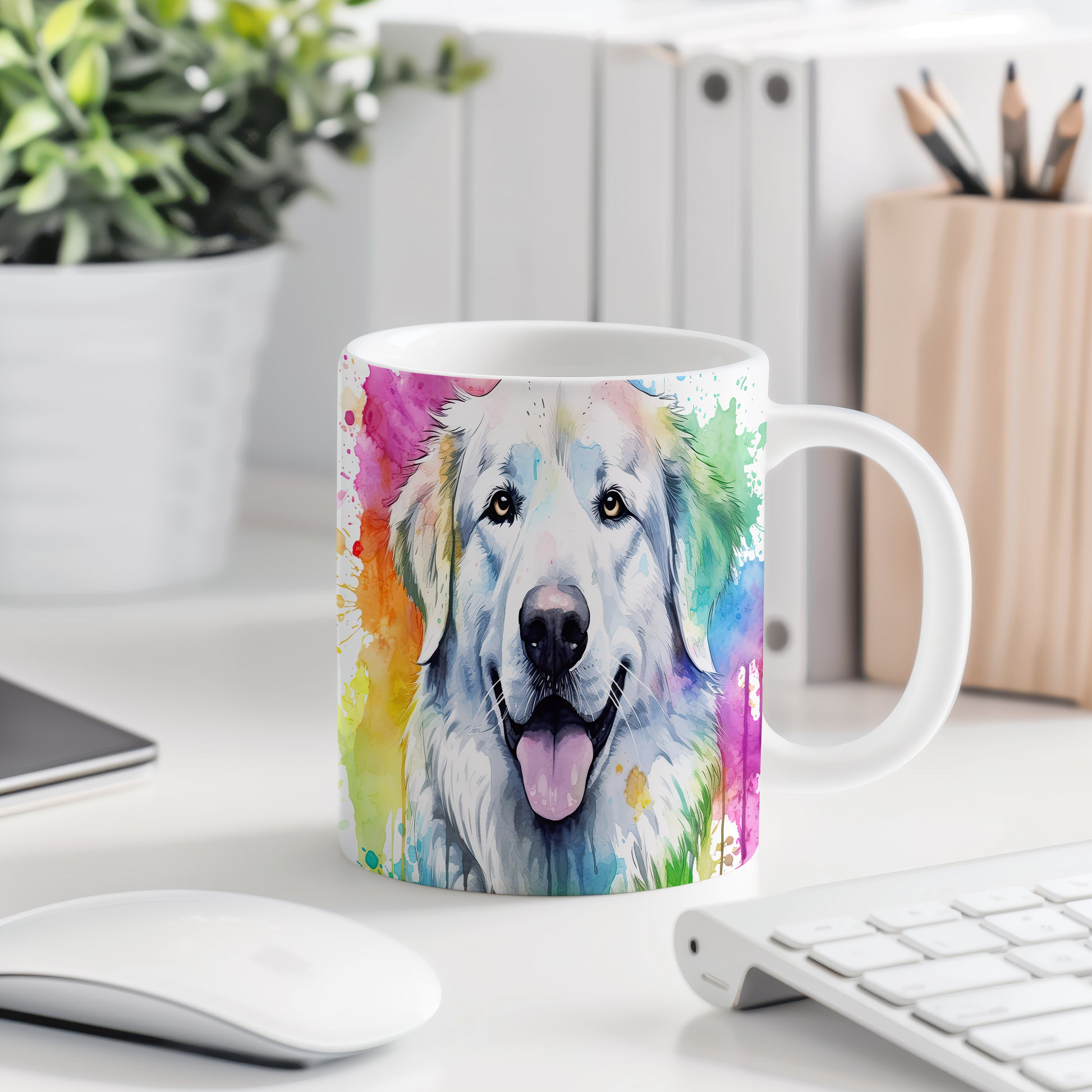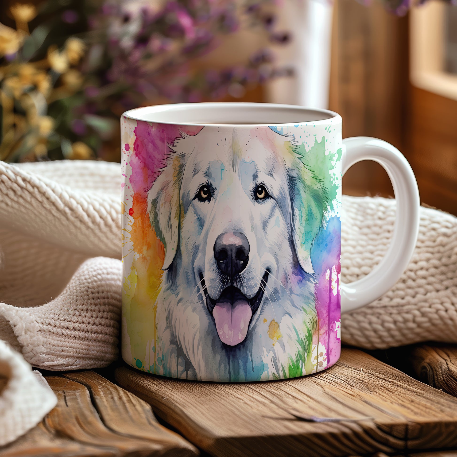 Hrnek s veselým retrívrem v barvách duhy
