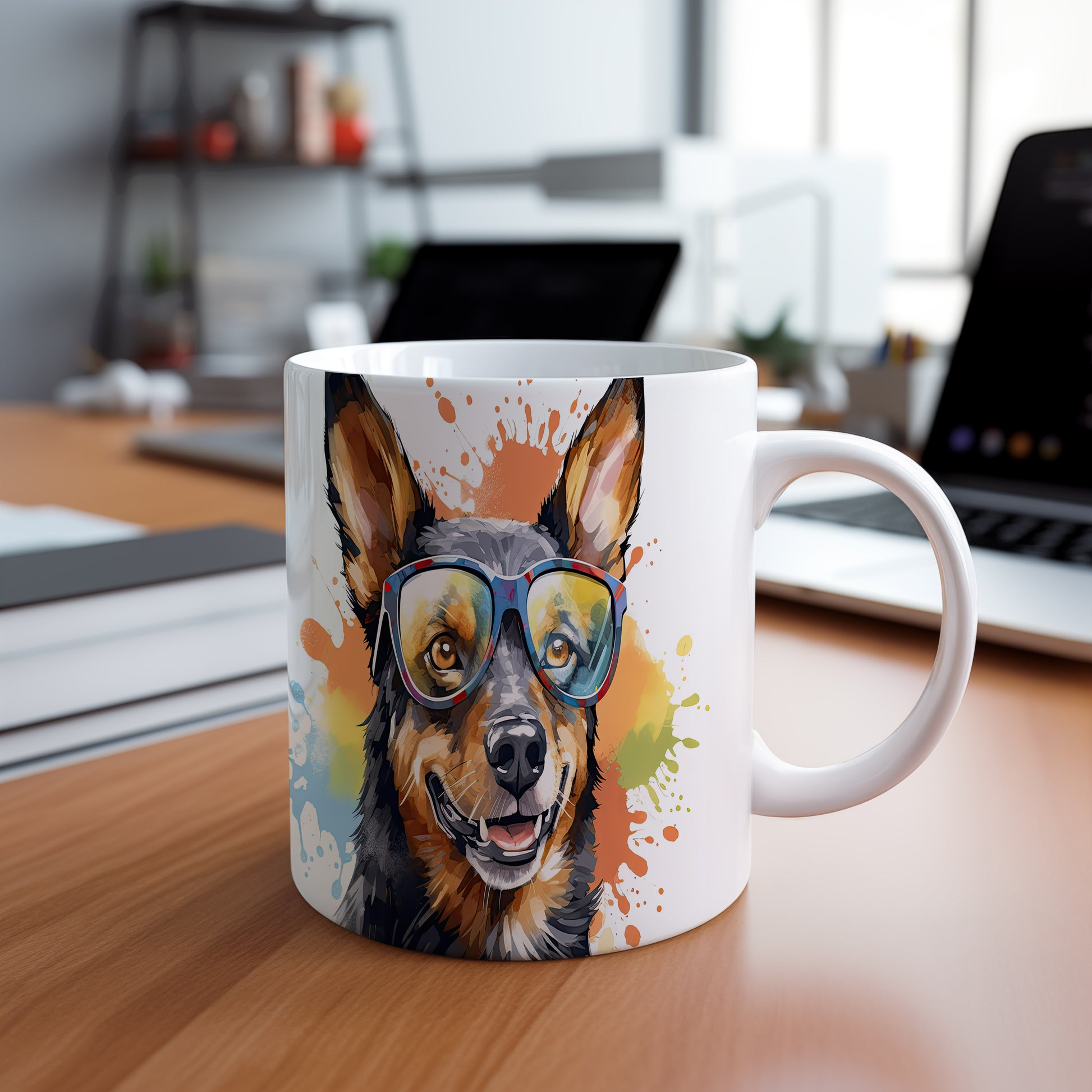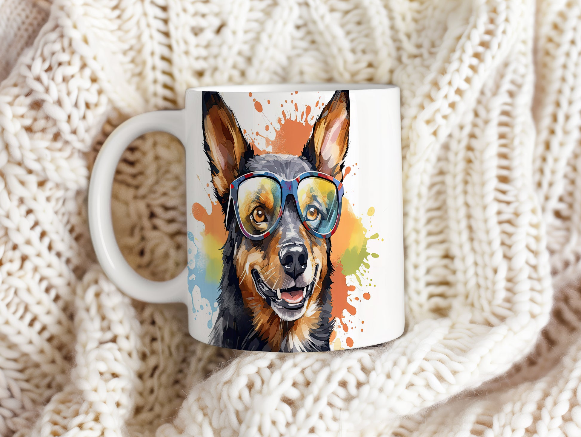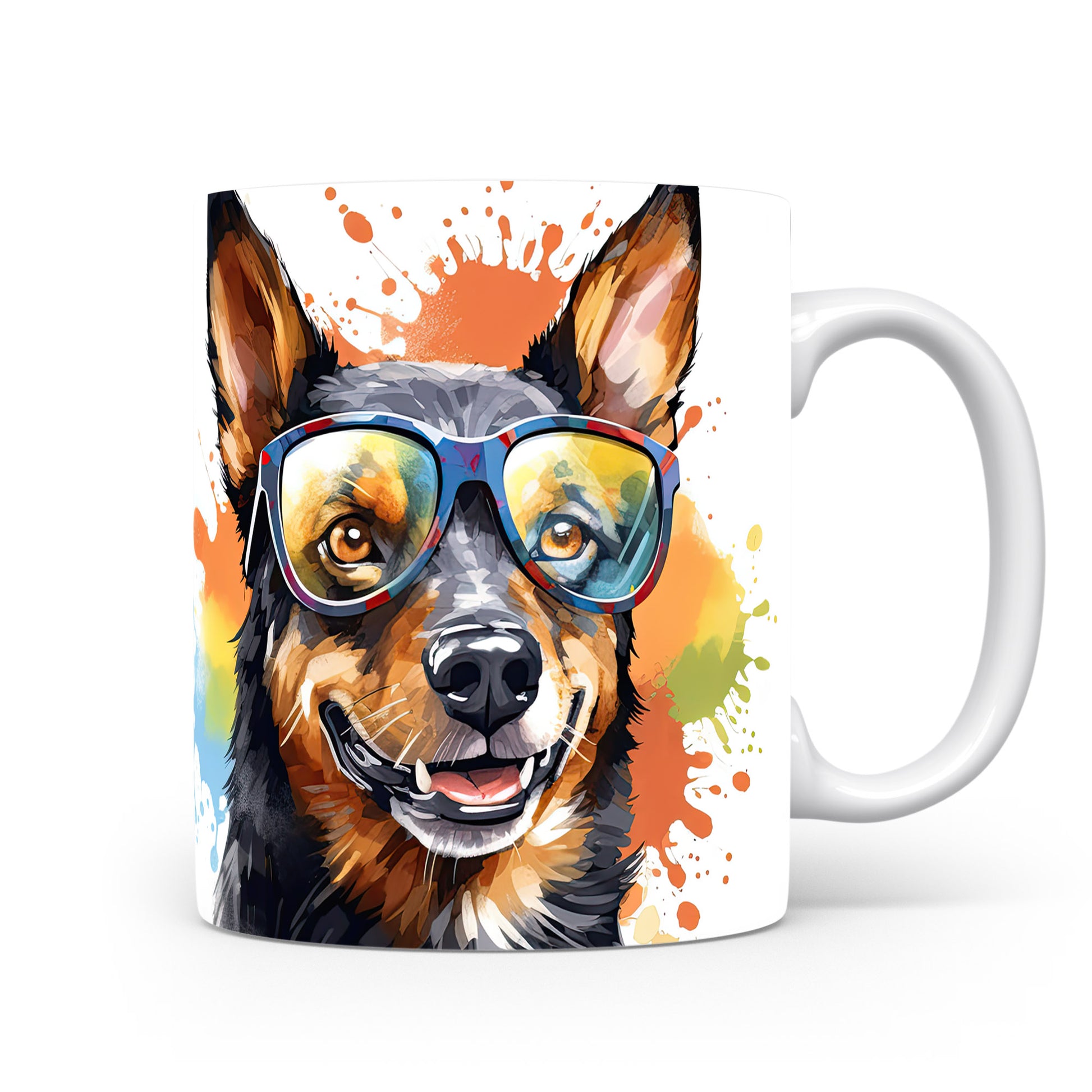 Hrnek s veselým australským honáckým psem v brýlích