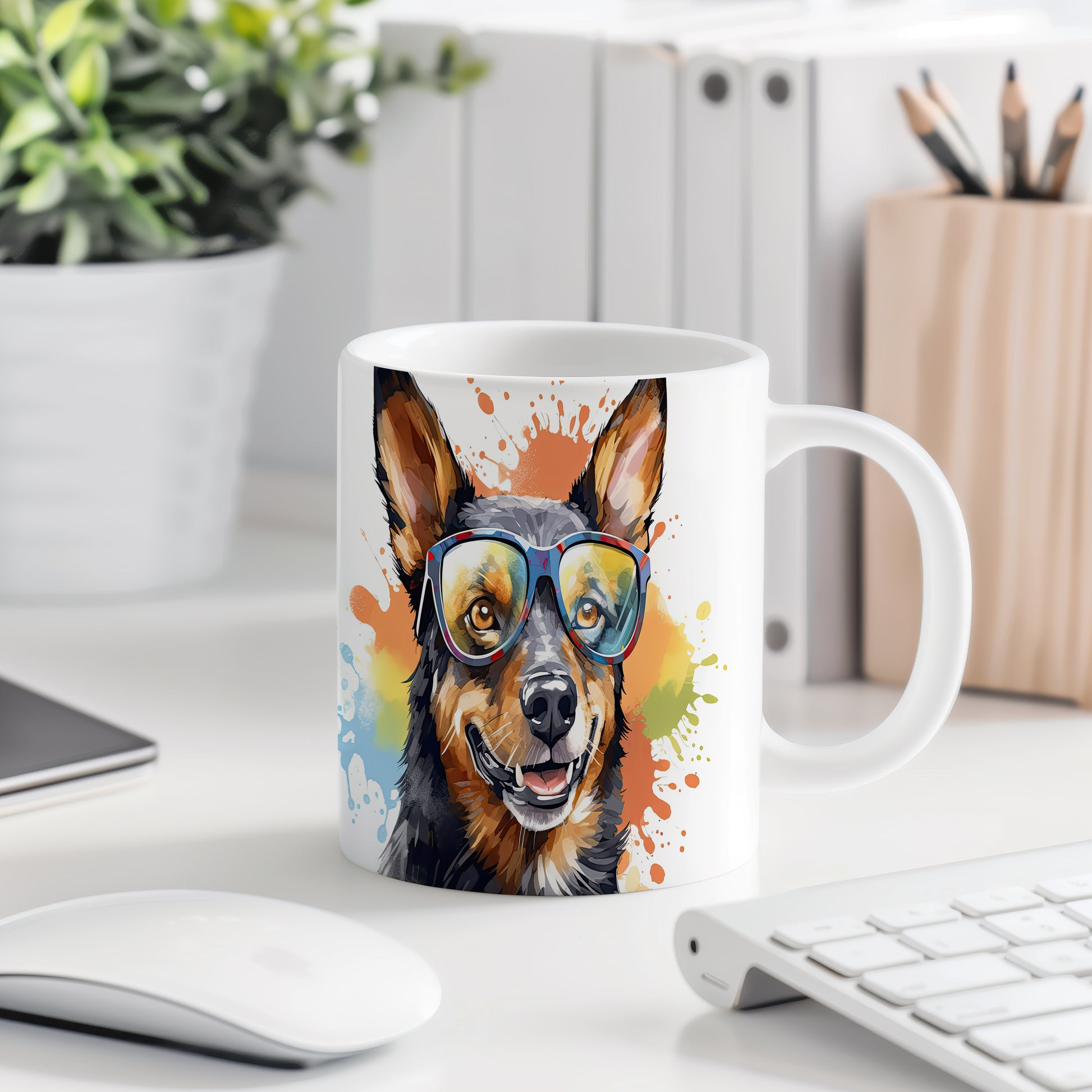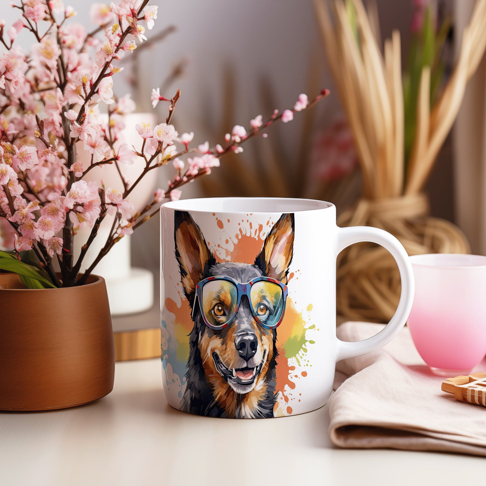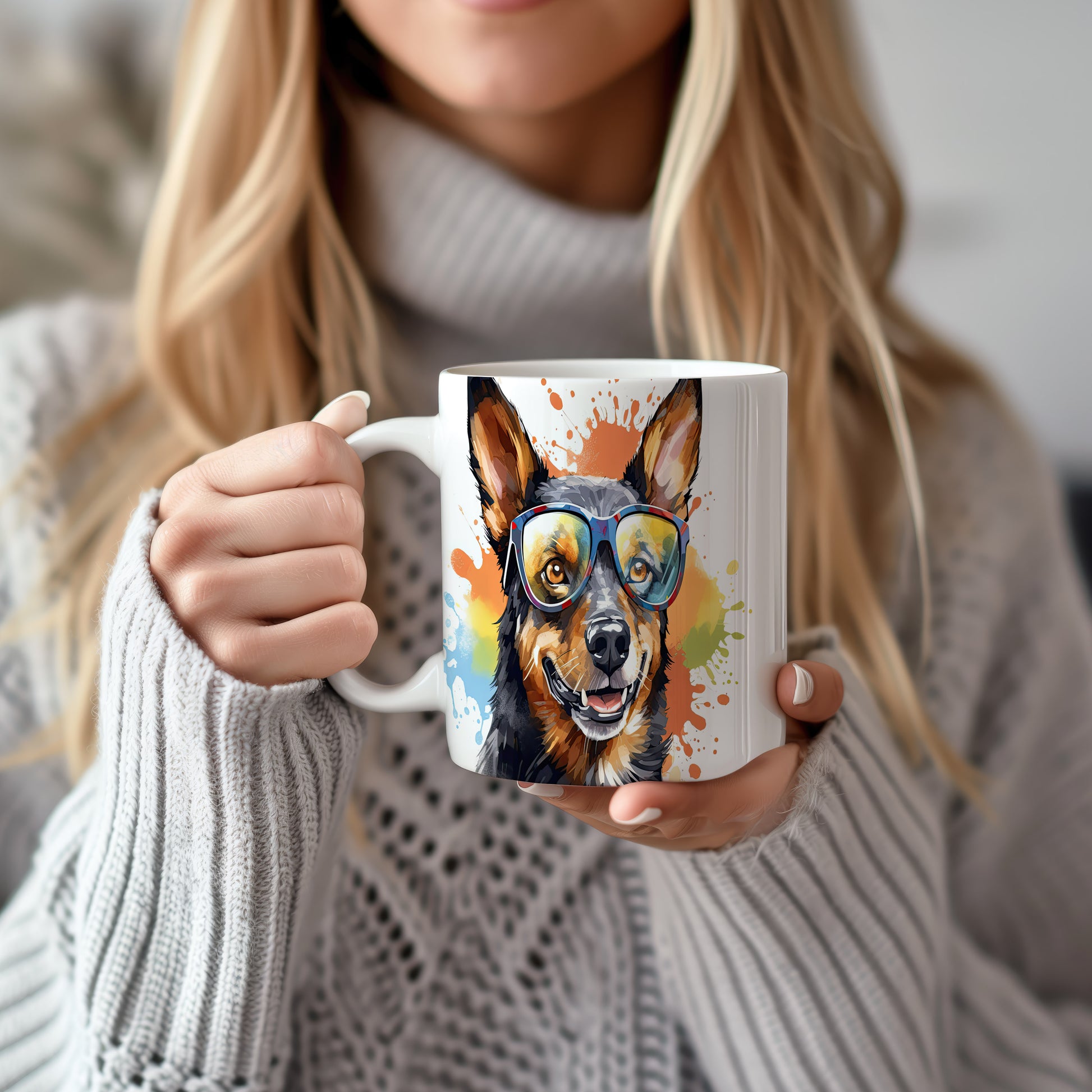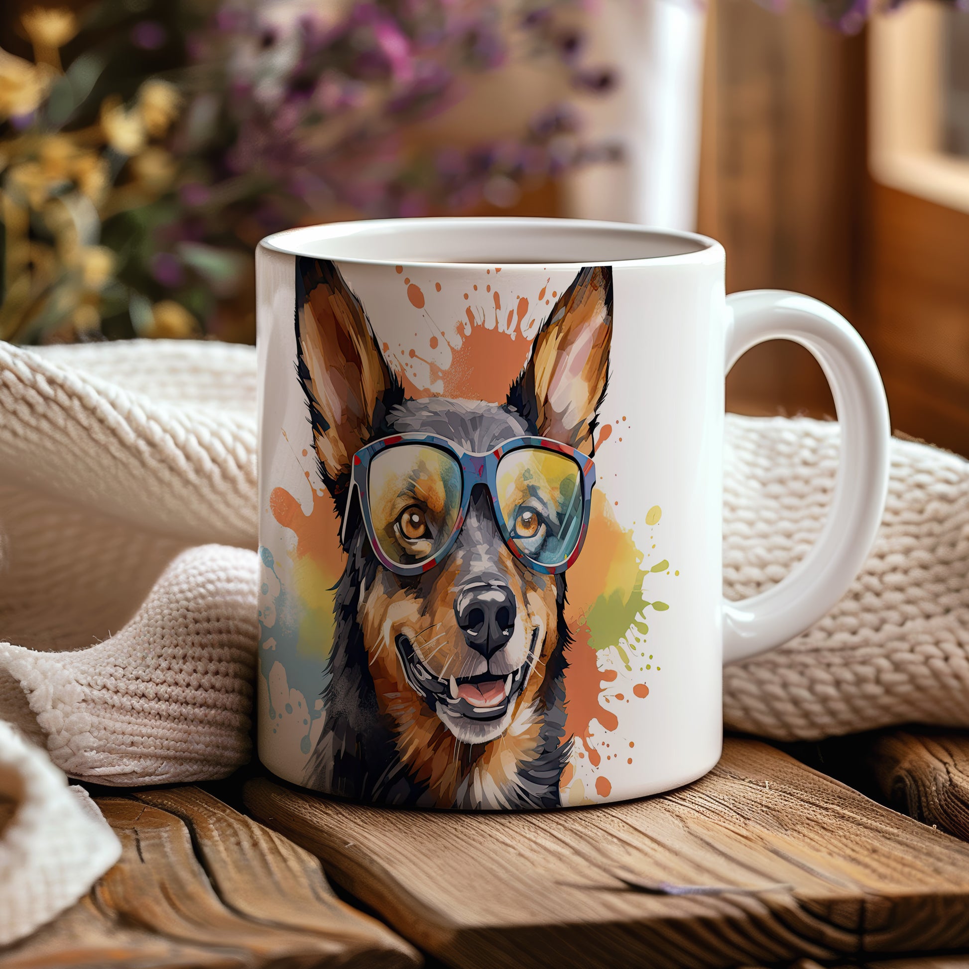 Hrnek s veselým australským honáckým psem v brýlích