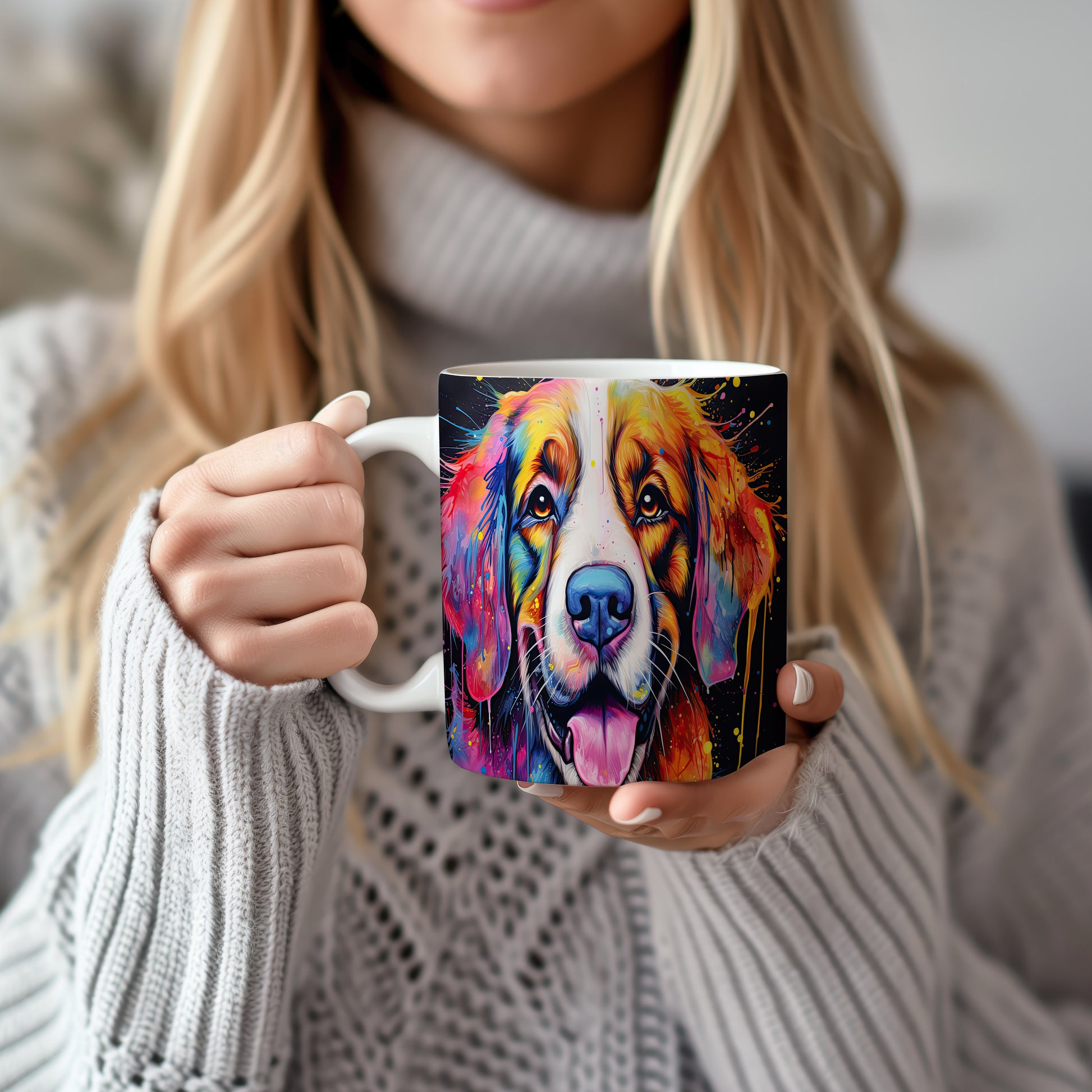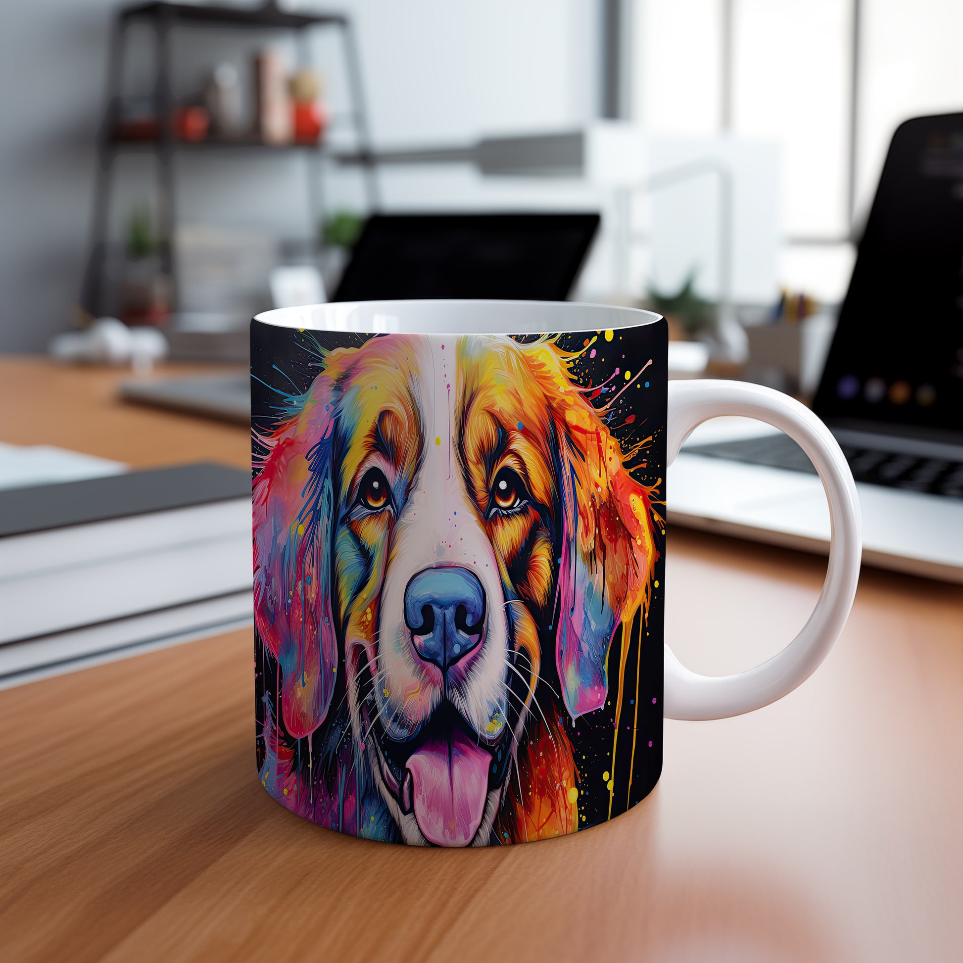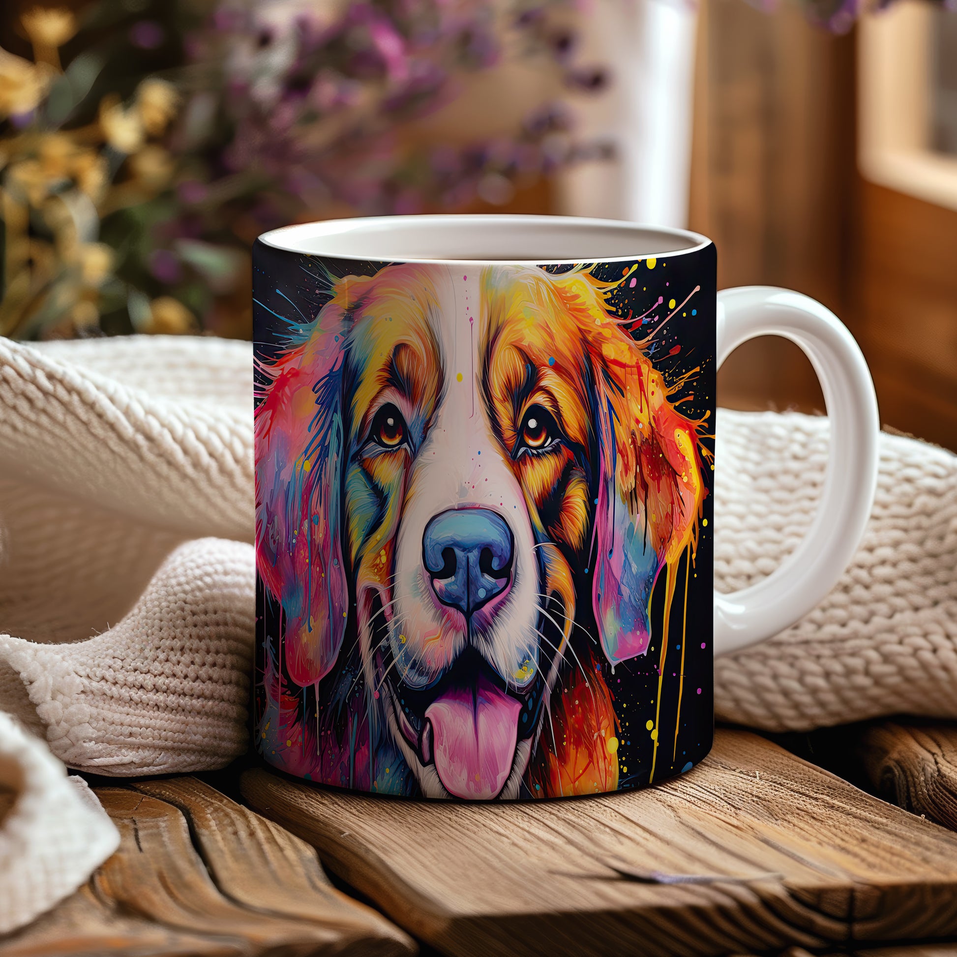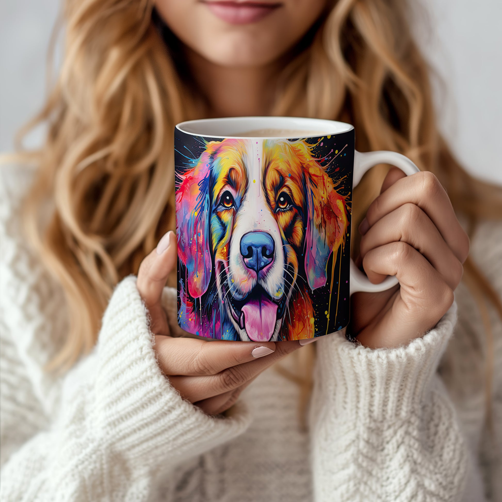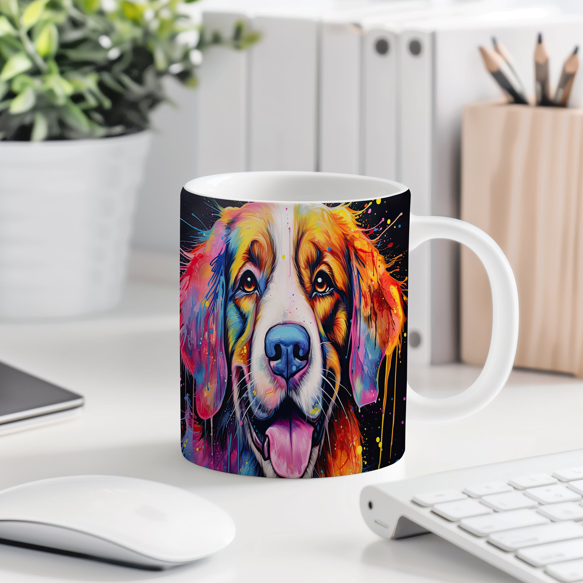 Tento hrnek zdobí roztomilý pes s veselým úsměvem a pestrými barvami. Je ideální pro milovníky zvířat a skvělým dárkem pro přátele nebo rodinu. Materiál: keramika. Objem: 330 ml. Vhodné do myčky i mikrovlnky. Používání tohoto hrnku přináší radost a pozitivní energii do každého dne.
