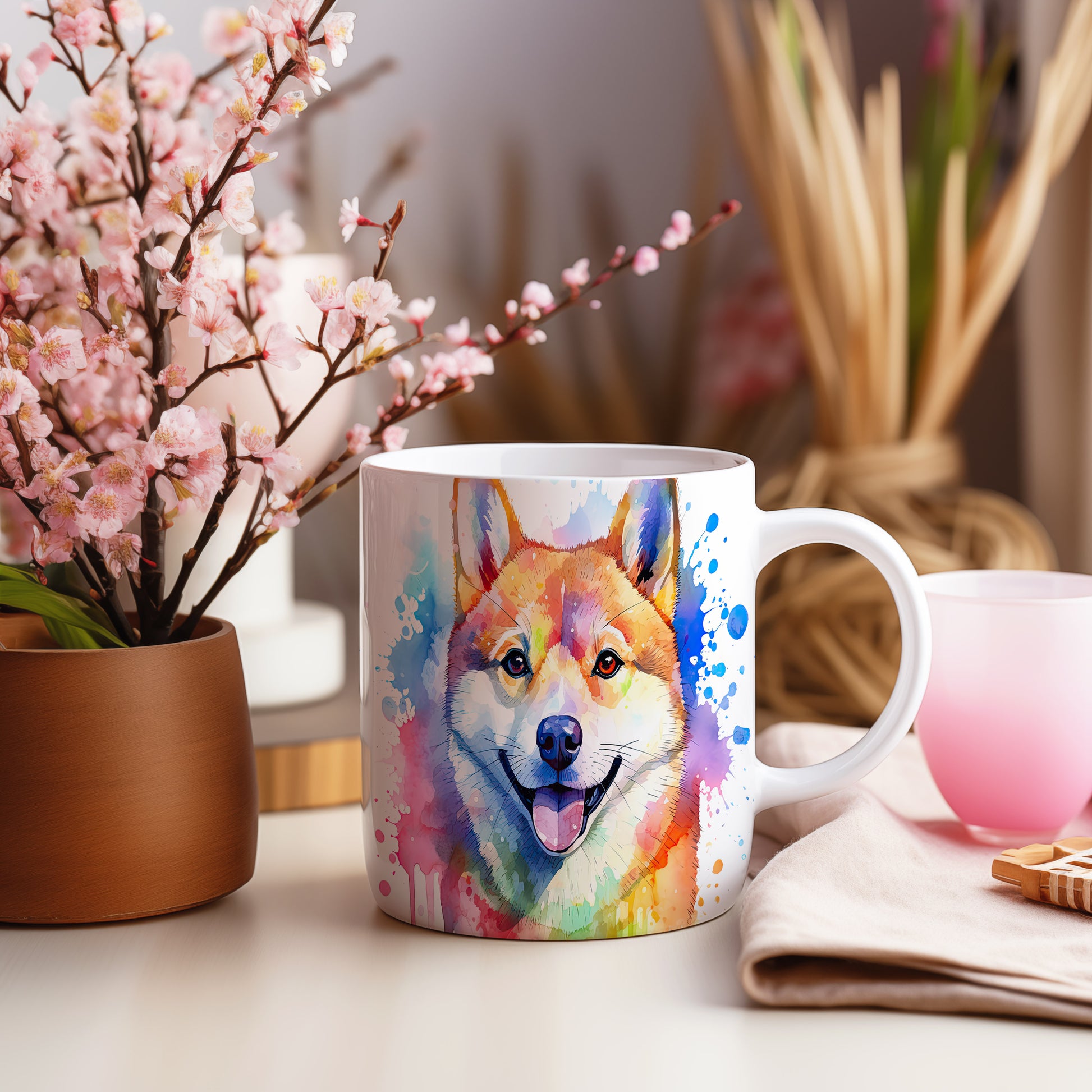 Veselý hrnek s motivem psa plemene shiba inu, ztvárněného v živých barvách. Tento hrnek je ideální pro milovníky psů a skvělý dárek pro každého, kdo ocení barevné doplňky do domácnosti. Materiál: keramika. Objem: 330 ml. Vhodné do myčky i mikrovlnky. Používání tohoto hrnku přináší radost a pozitivní energii do každodenního pití.
