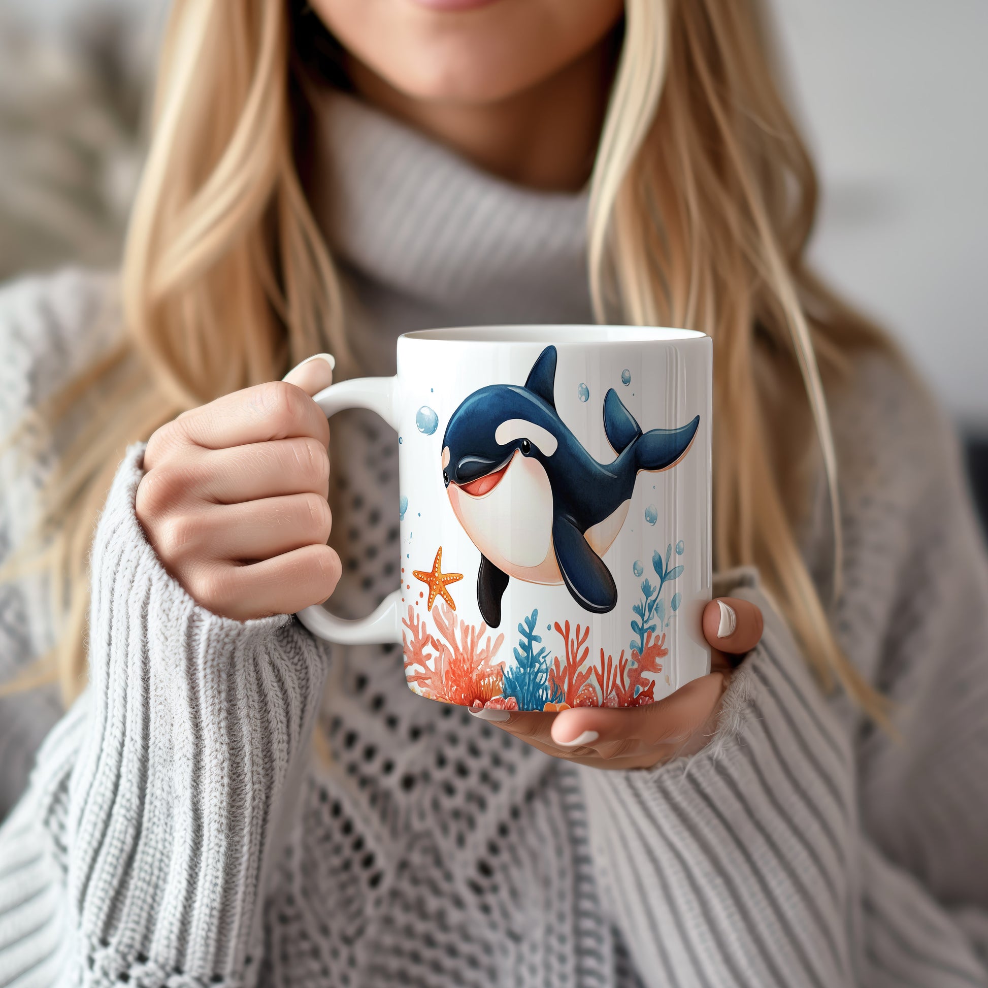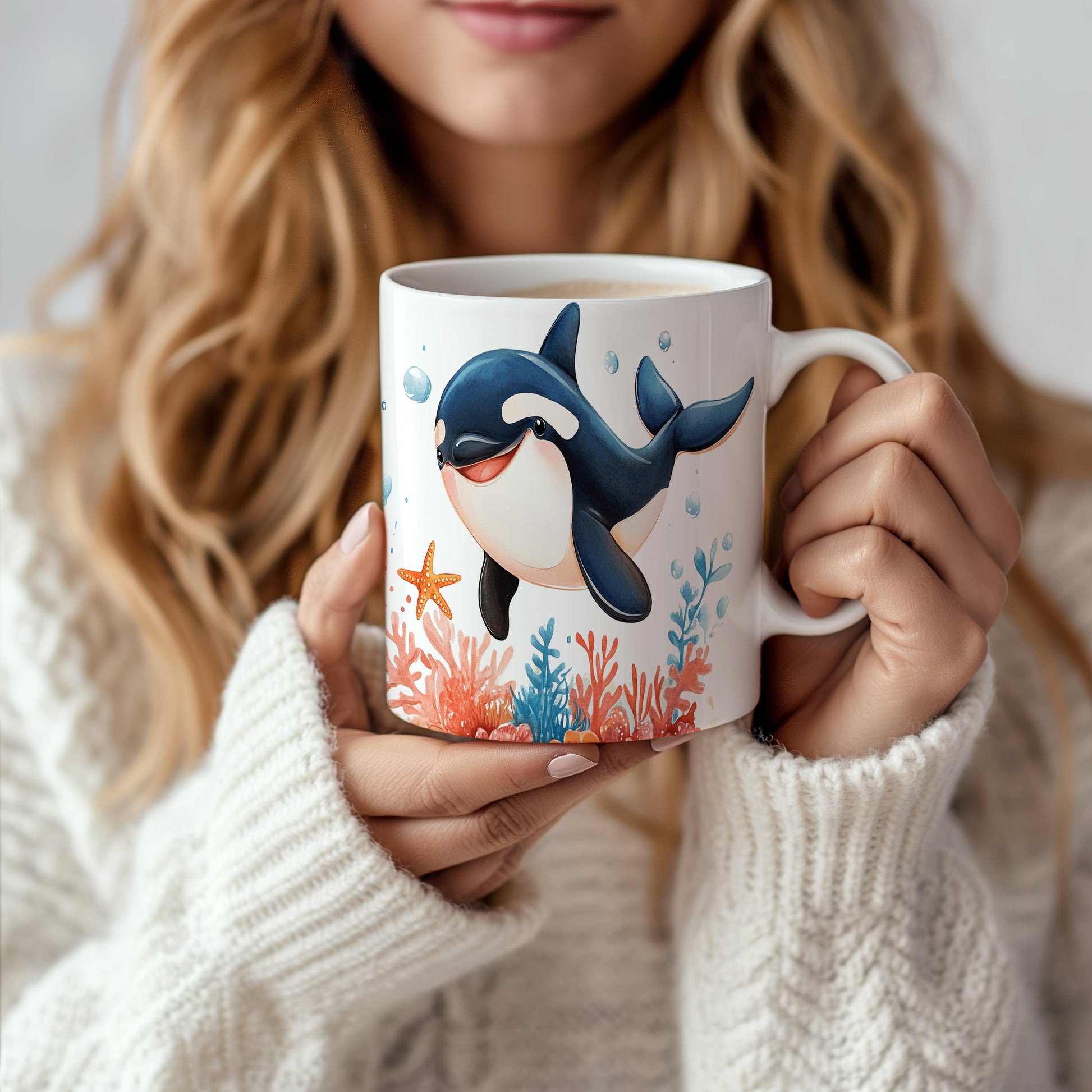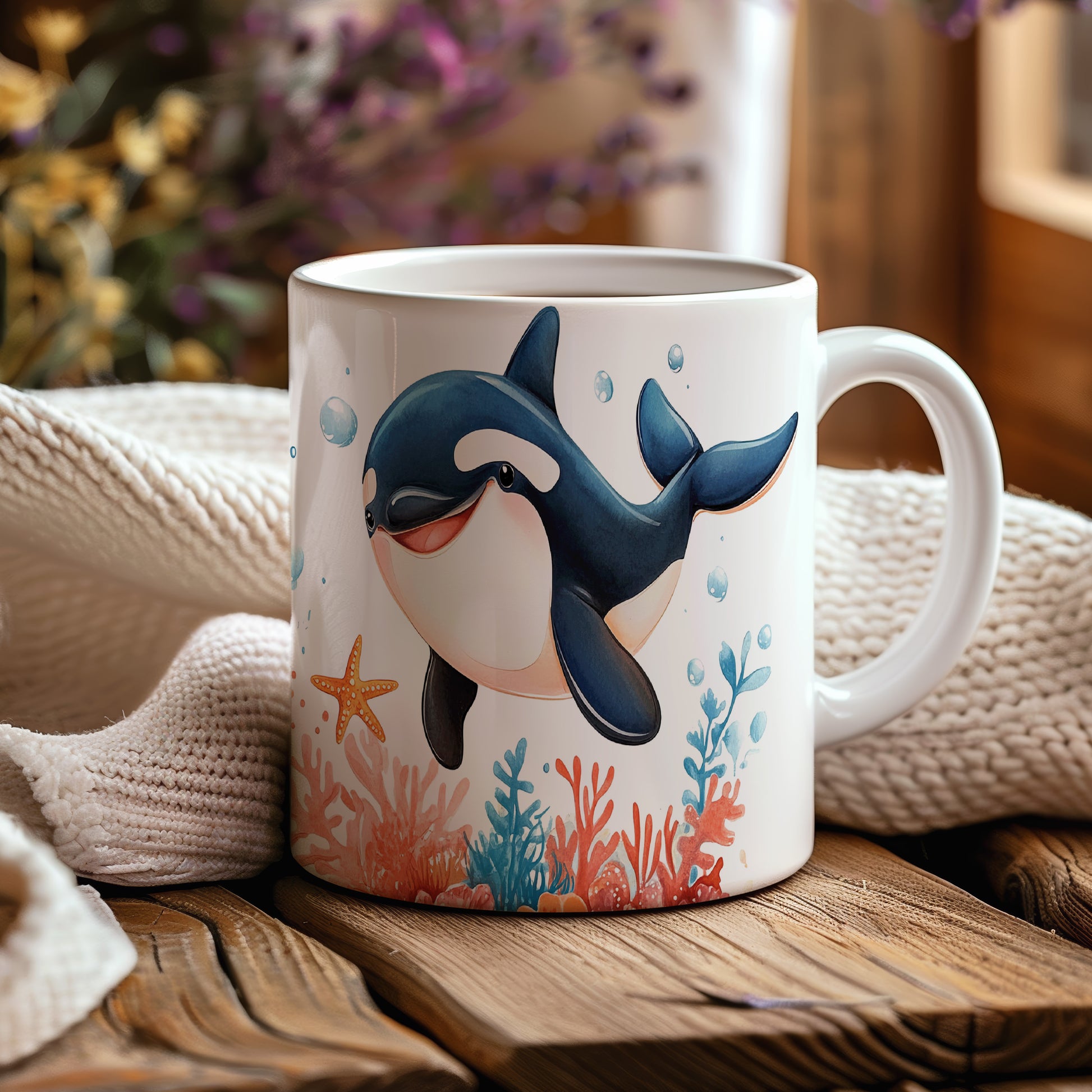 Tento hrnek s motivem veselého kosatky přináší radost a svěžest. Je ideální pro milovníky moře a zvířat, skvělý tip na dárek pro každého, kdo ocení přírodu. Materiál: keramika. Objem: 330 ml. Vhodné do myčky i mikrovlnky. Používání tohoto hrnku vám zpříjemní každé ráno a dodá energii na celý den.