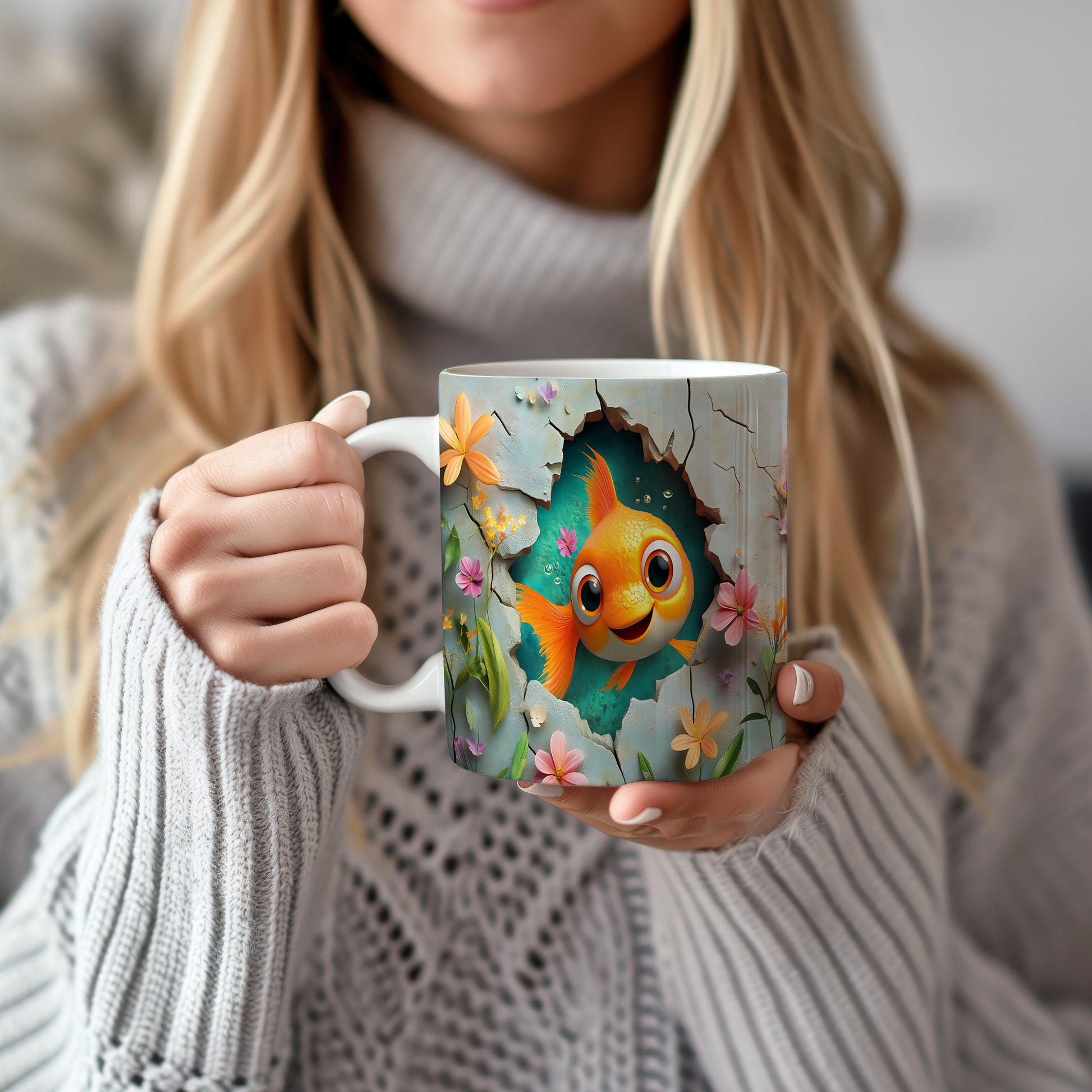 Tento hrnek zobrazuje veselou zlatou rybičku s květinami. Je ideální pro milovníky přírody a mořského života, skvělý tip na dárek pro děti i dospělé. Materiál: keramika. Objem: 330 ml. Vhodné do myčky i mikrovlnky. Při každém doušku vám přinese radost a pozitivní energii.