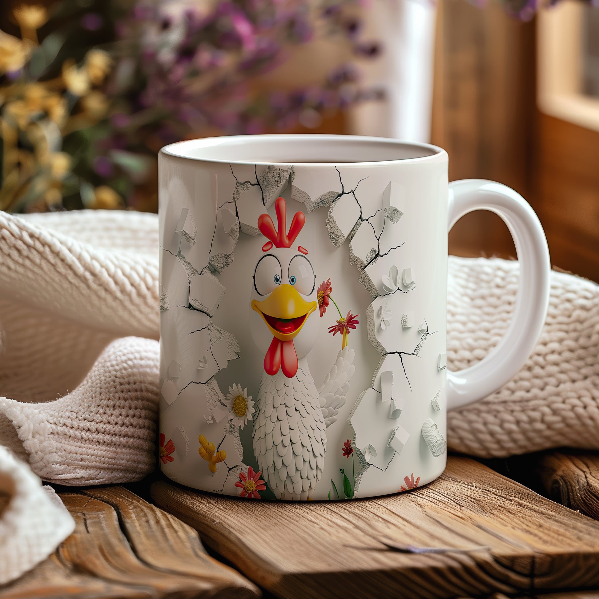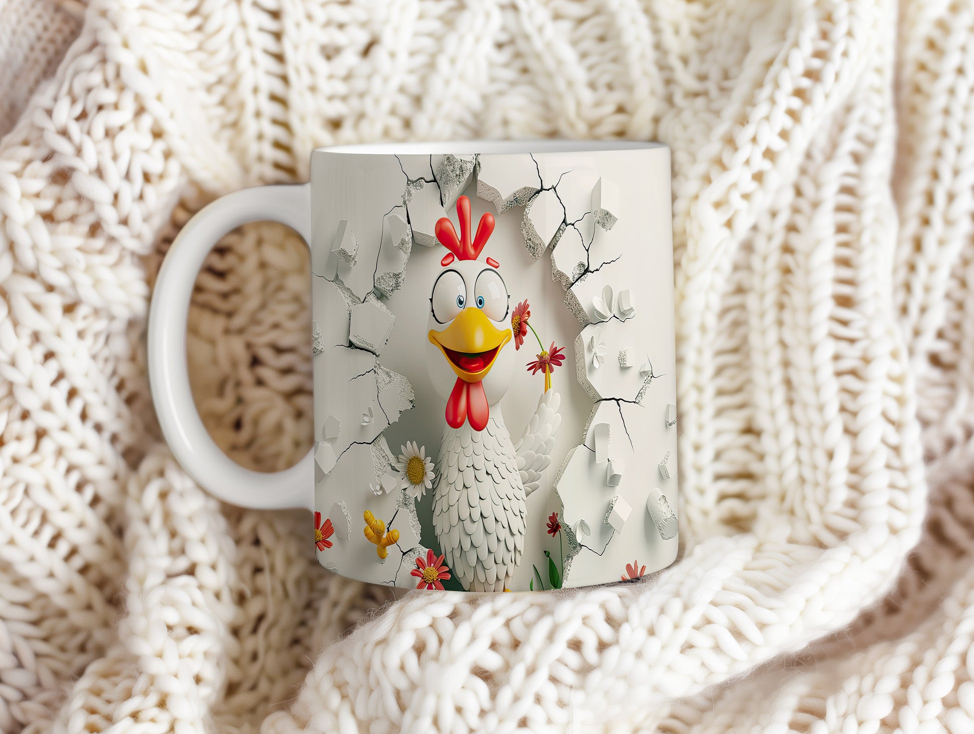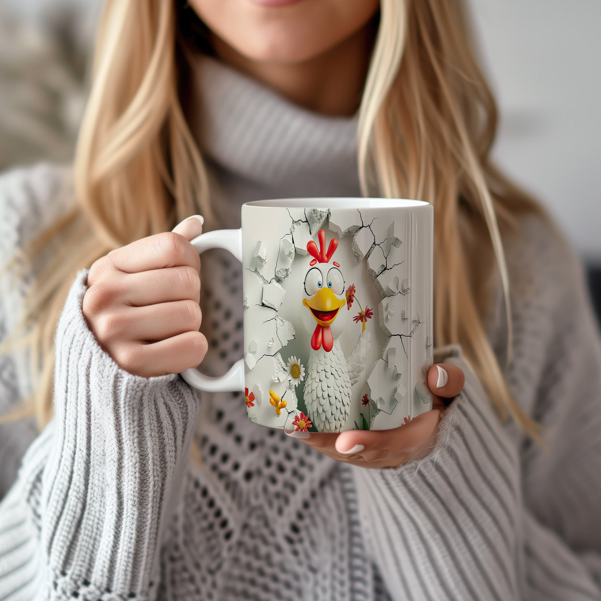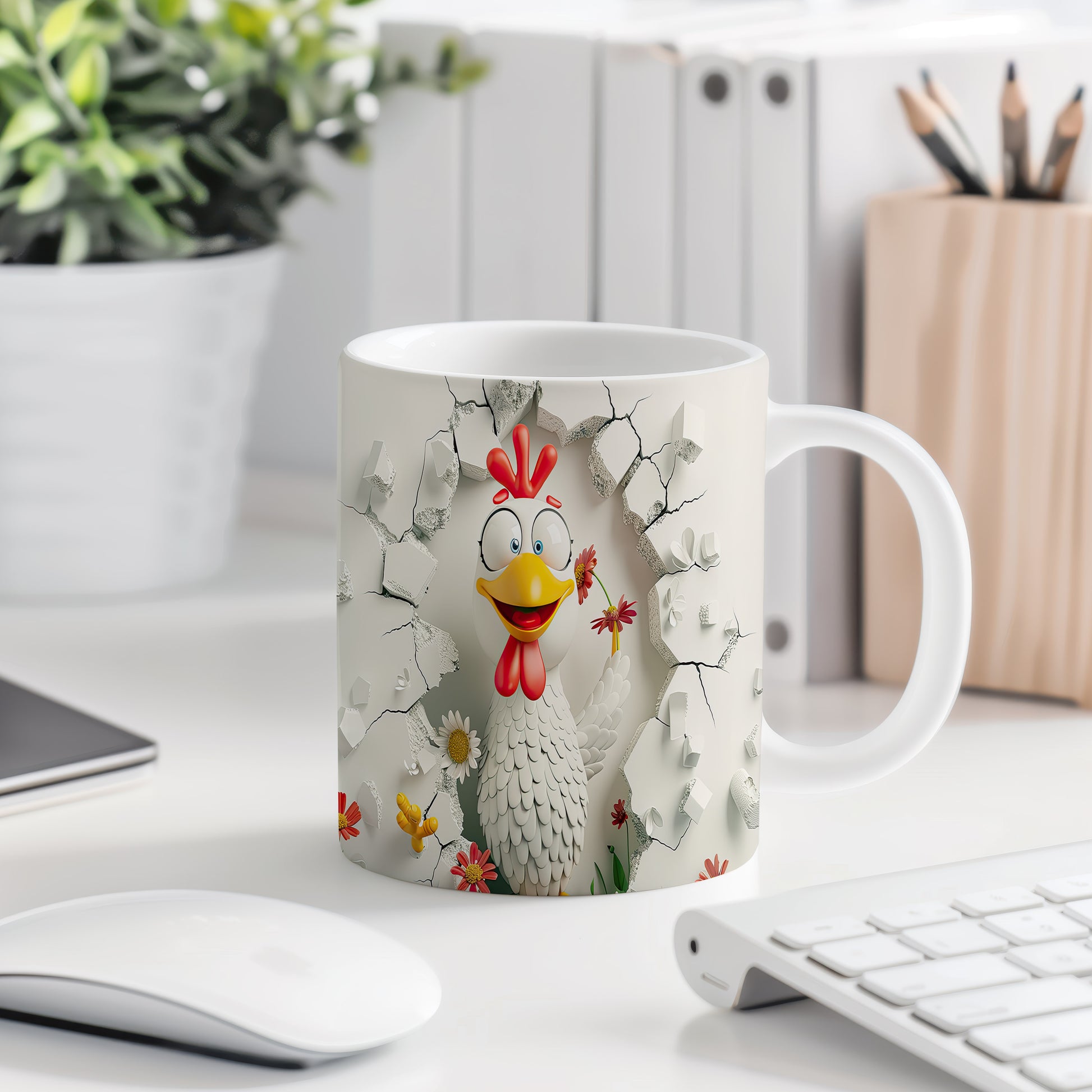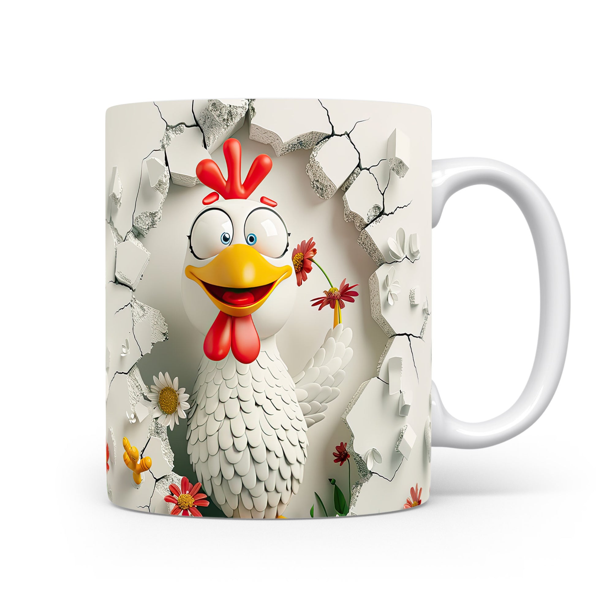 Veselý hrnek s motivem roztomilé slepičky, která se prodírá květinami. Tento hrnek je ideální pro milovníky zvířat a vtipné dekorace, skvělý tip na dárek pro přátele nebo rodinu. Materiál: keramika. Objem: 330 ml. Vhodné do myčky i mikrovlnky. Používáním tohoto hrnku si zpříjemníte každé ráno šálkem oblíbeného nápoje.