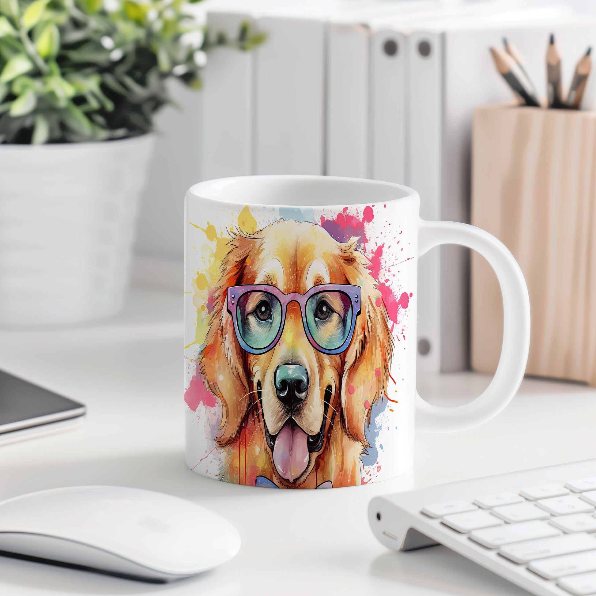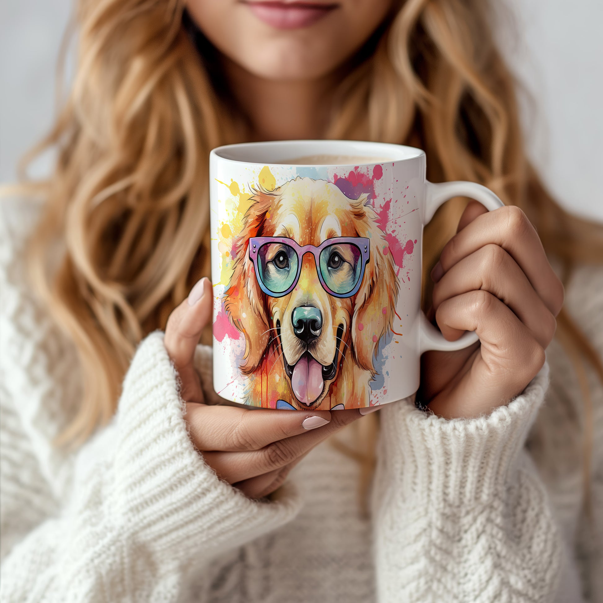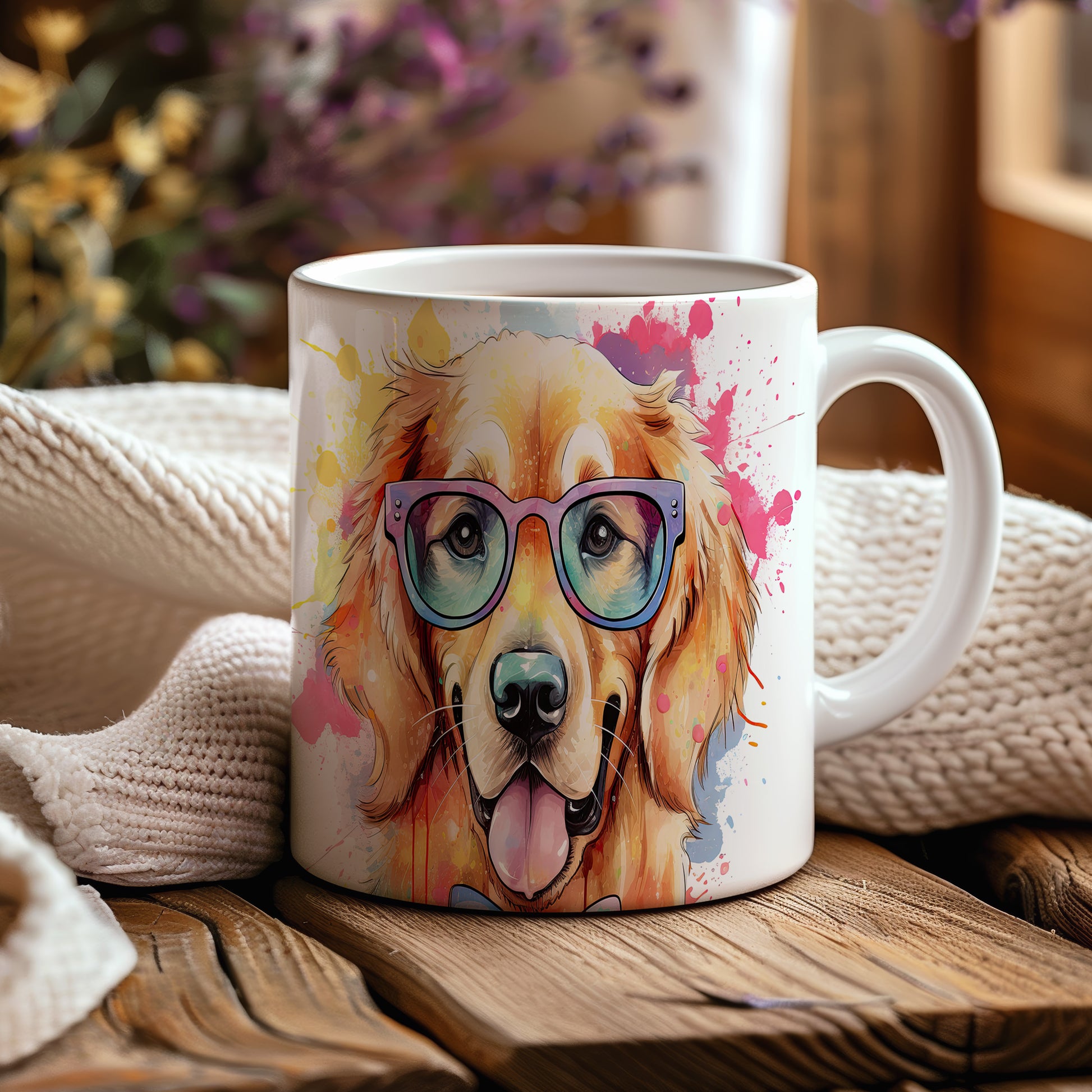 Tento hrnek s veselým zlatým retrívrem v brýlích přináší radost do každého dne. Je ideální pro milovníky psů a skvělým dárkem pro přátele či rodinu. Materiál: keramika. Objem: 330 ml. Vhodné do myčky i mikrovlnky. Užijte si kávu nebo čaj s tímto originálním kouskem, který vám zlepší náladu.