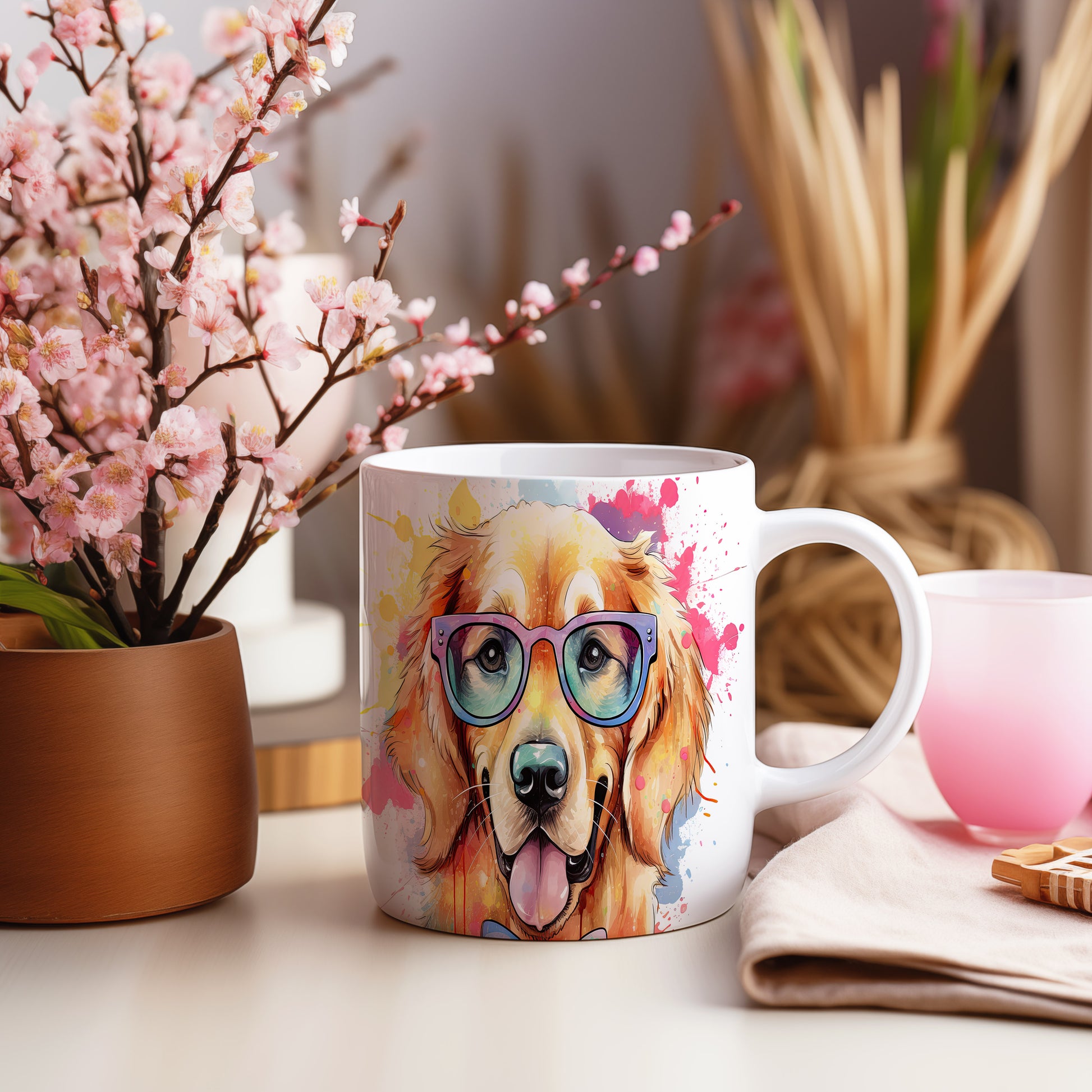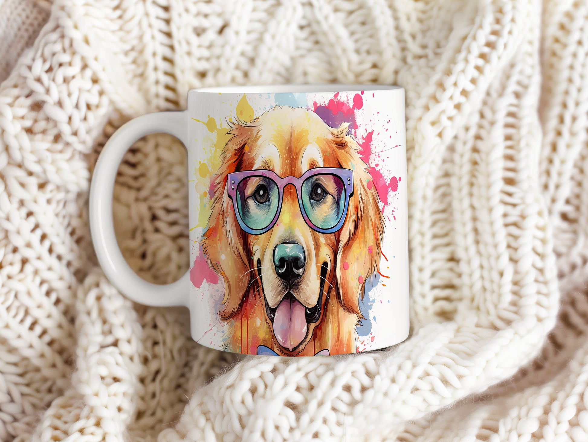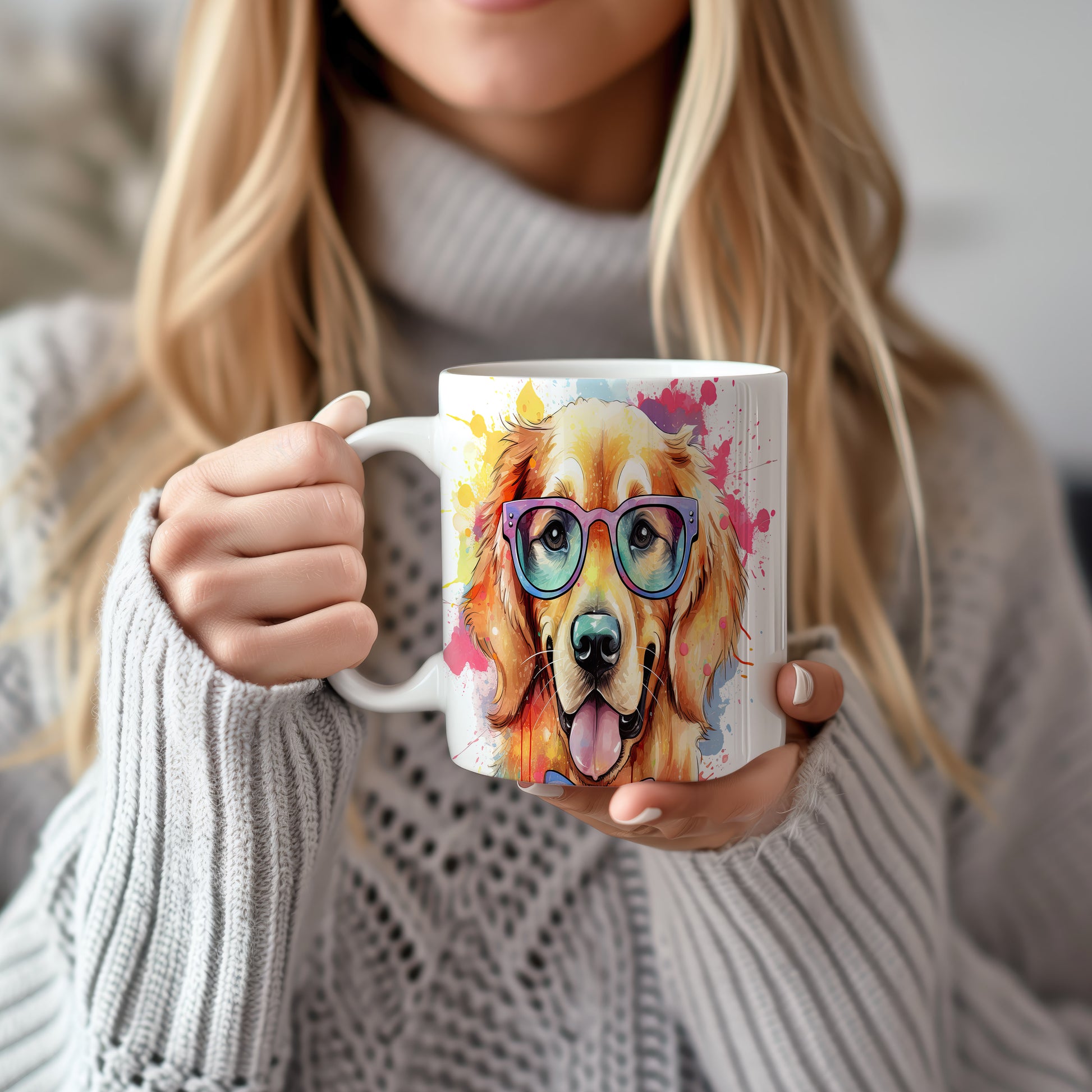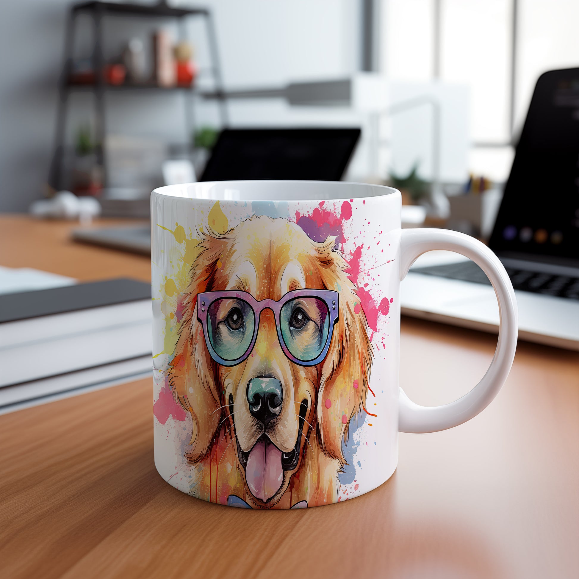 Tento hrnek s veselým zlatým retrívrem v brýlích přináší radost do každého dne. Je ideální pro milovníky psů a skvělým dárkem pro přátele či rodinu. Materiál: keramika. Objem: 330 ml. Vhodné do myčky i mikrovlnky. Užijte si kávu nebo čaj s tímto originálním kouskem, který vám zlepší náladu.