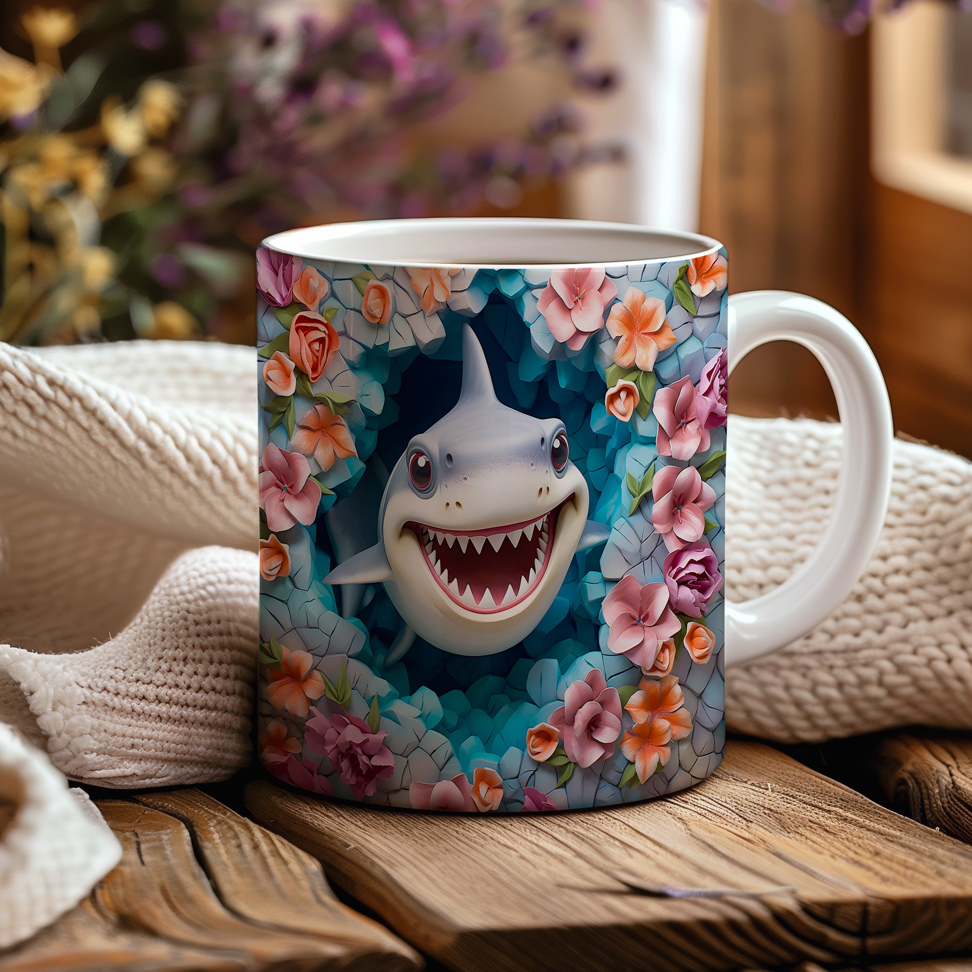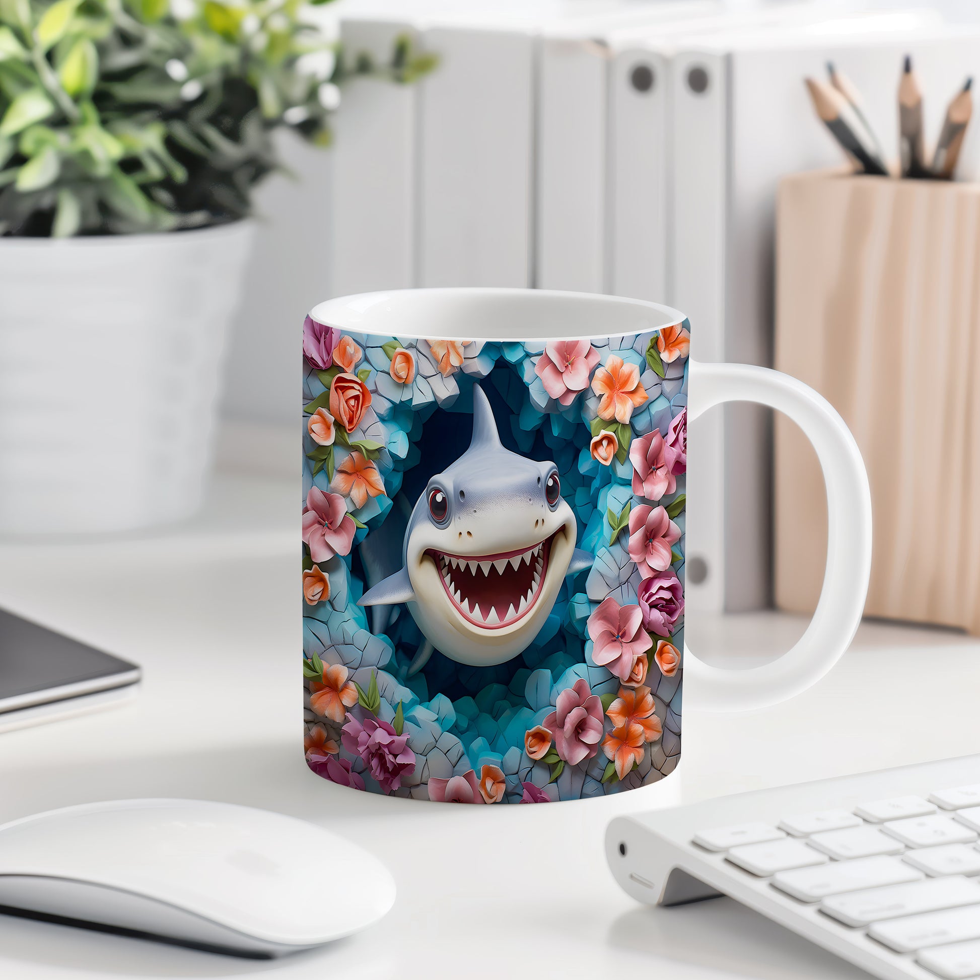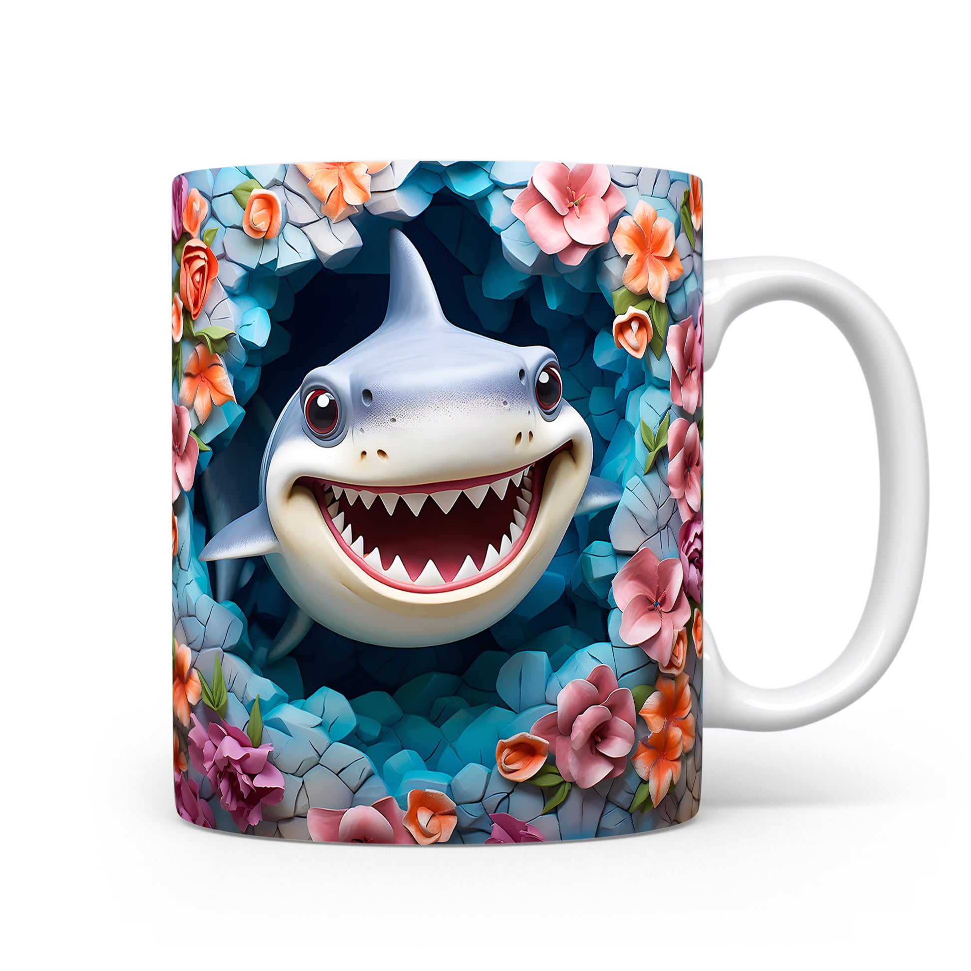 Tento hrnek zobrazuje usměvavého žraloka, který je obklopen barevnými květinami. Je ideální pro milovníky moře a přírody, skvělý tip na dárek pro děti i dospělé. Materiál: keramika. Objem: 330 ml. Vhodné do myčky i mikrovlnky. Používání tohoto hrnku přináší radost a oživí každý den.