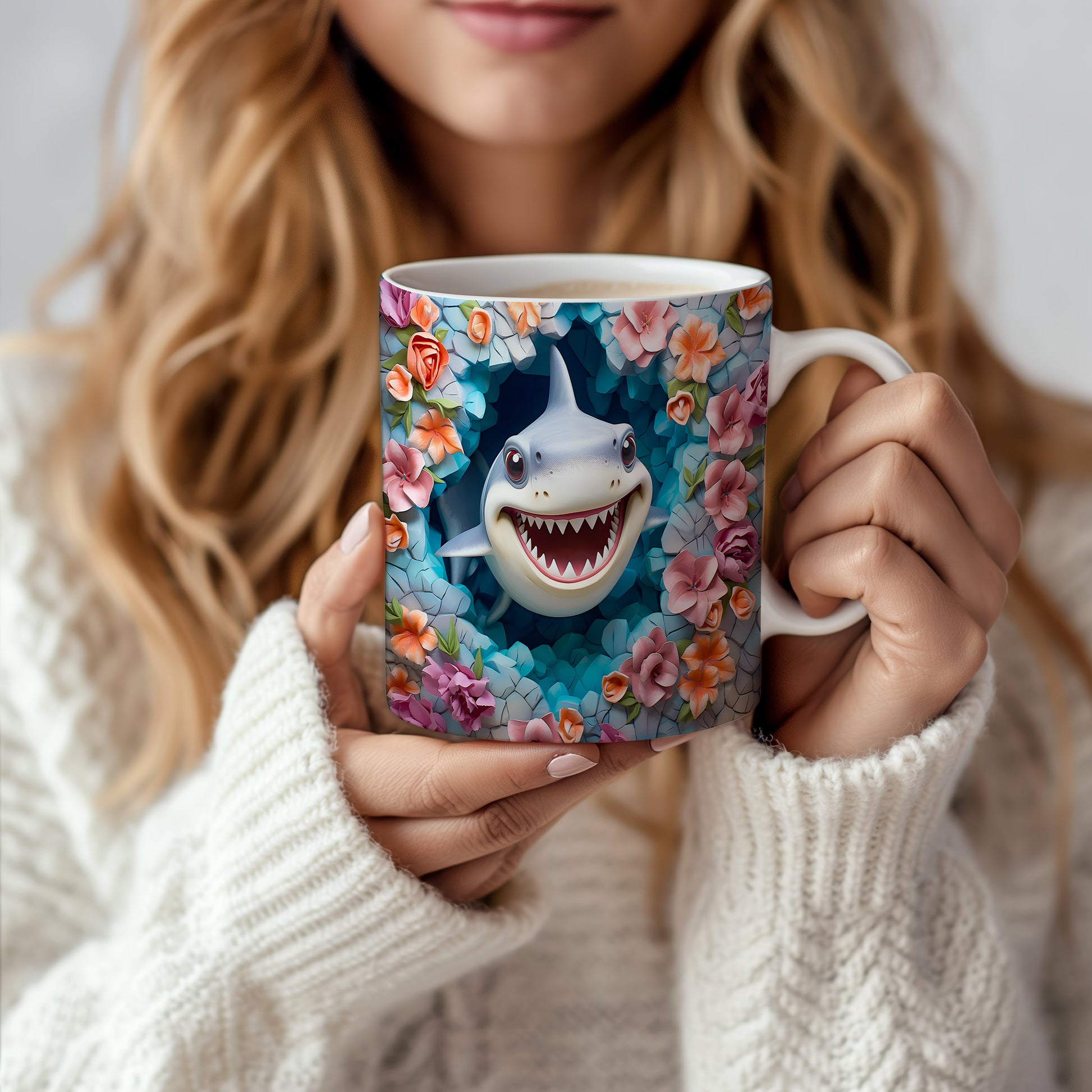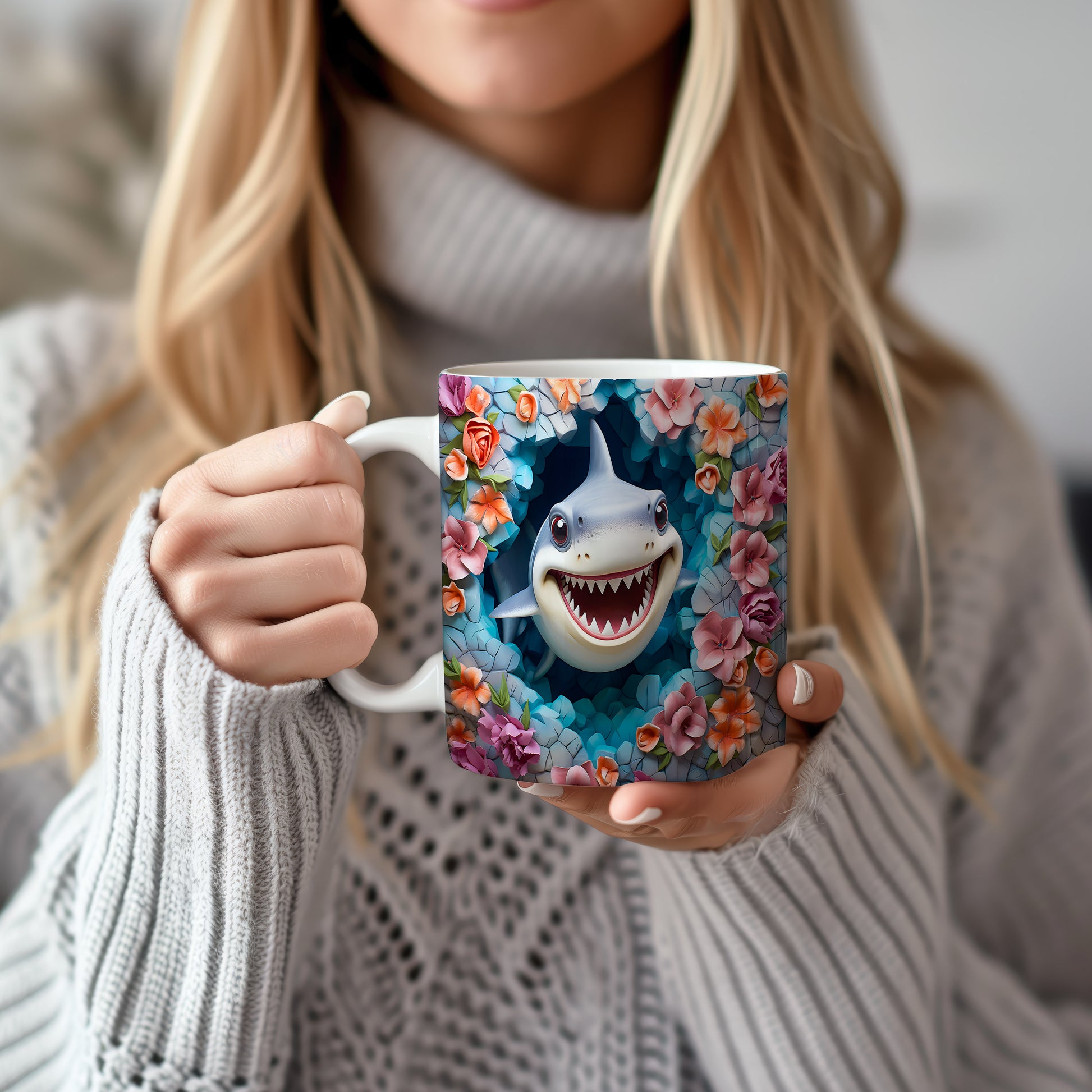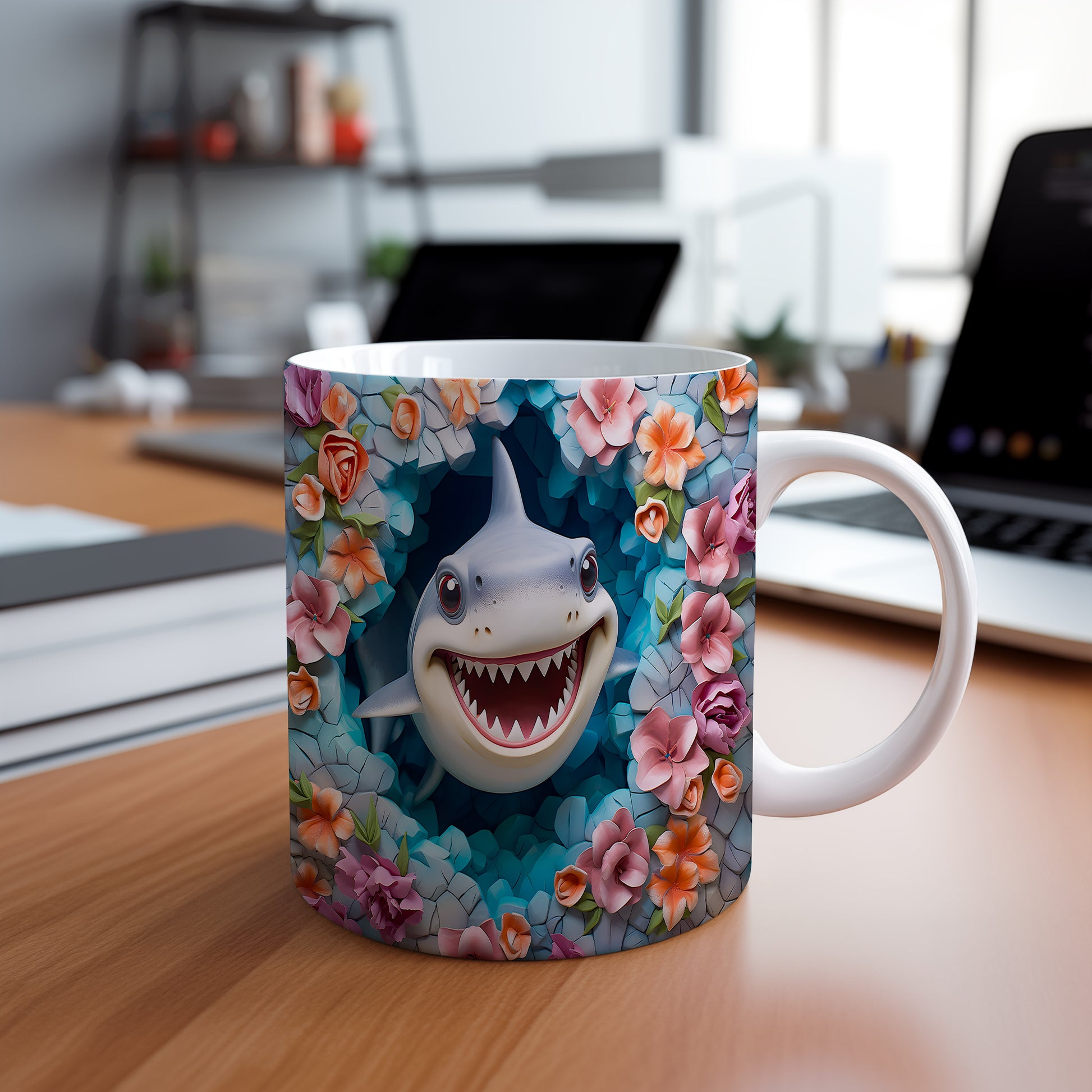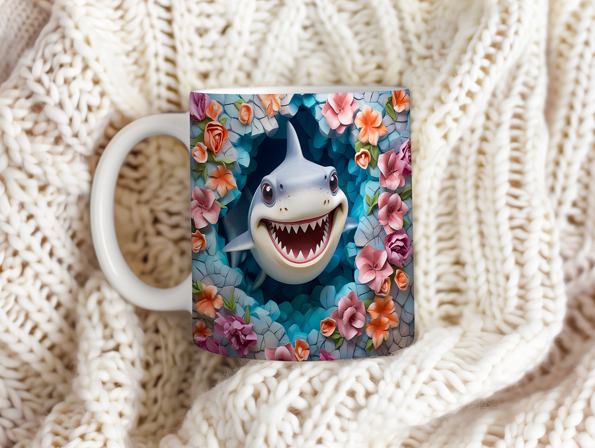Tento hrnek zobrazuje usměvavého žraloka, který je obklopen barevnými květinami. Je ideální pro milovníky moře a přírody, skvělý tip na dárek pro děti i dospělé. Materiál: keramika. Objem: 330 ml. Vhodné do myčky i mikrovlnky. Používání tohoto hrnku přináší radost a oživí každý den.