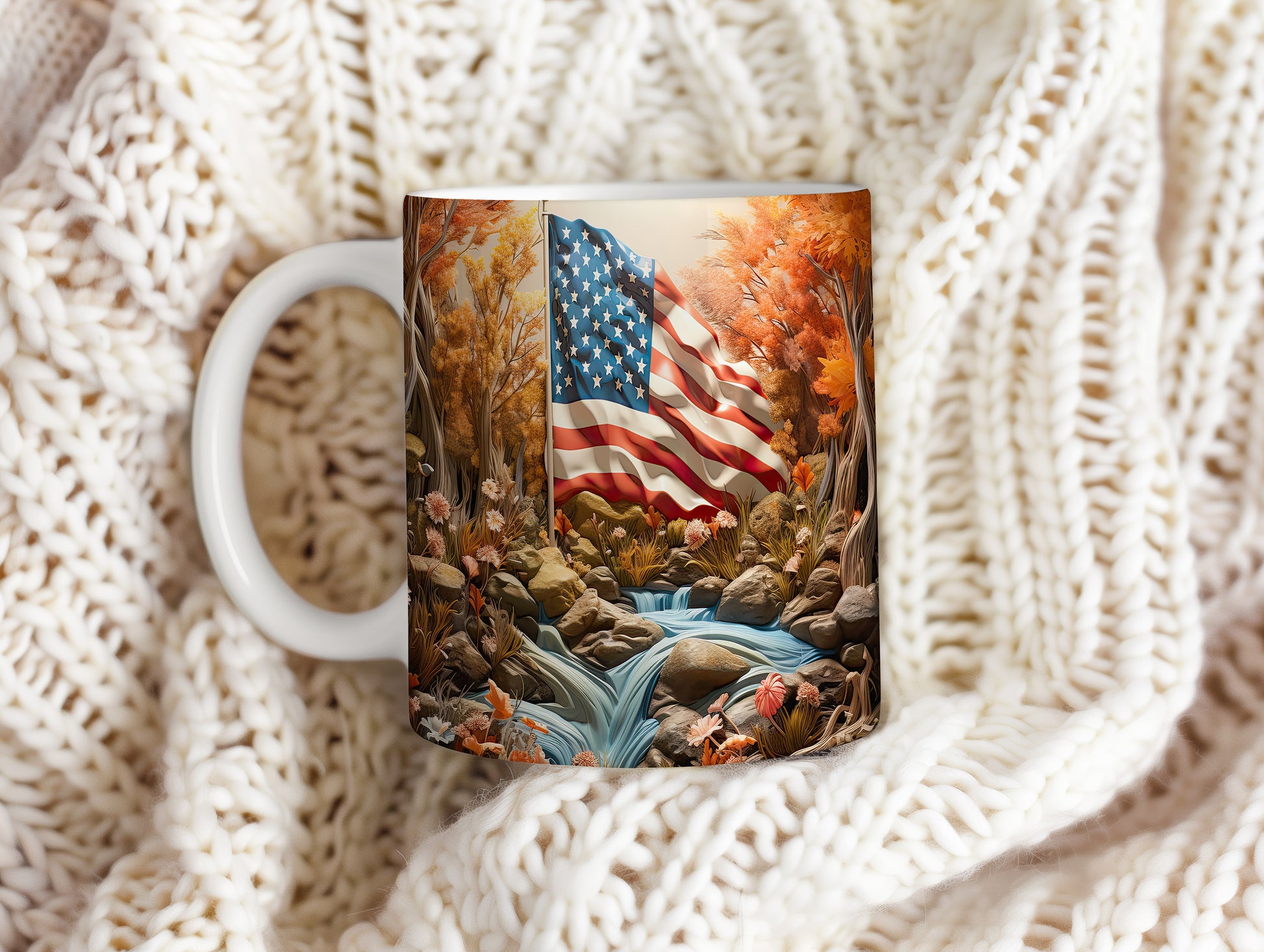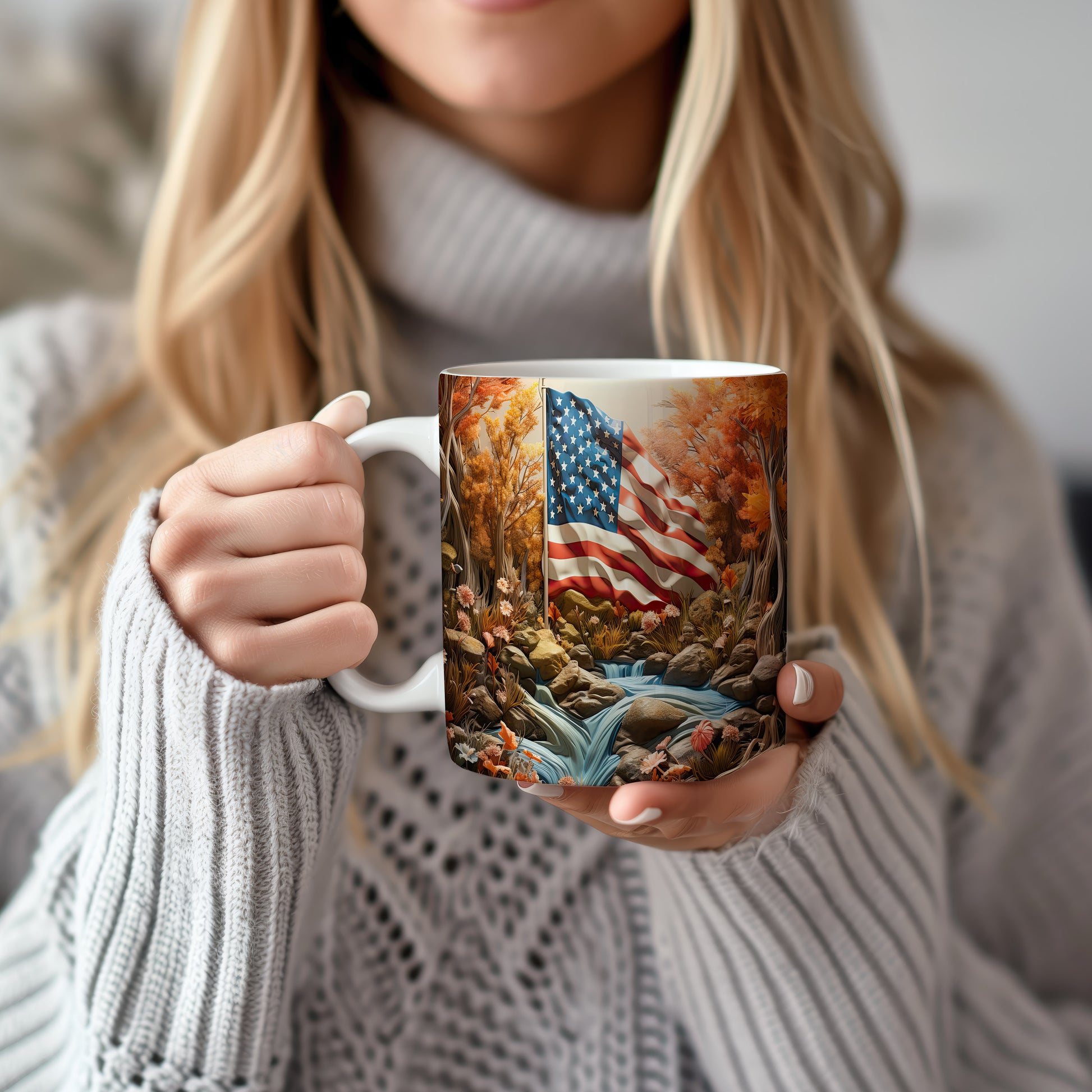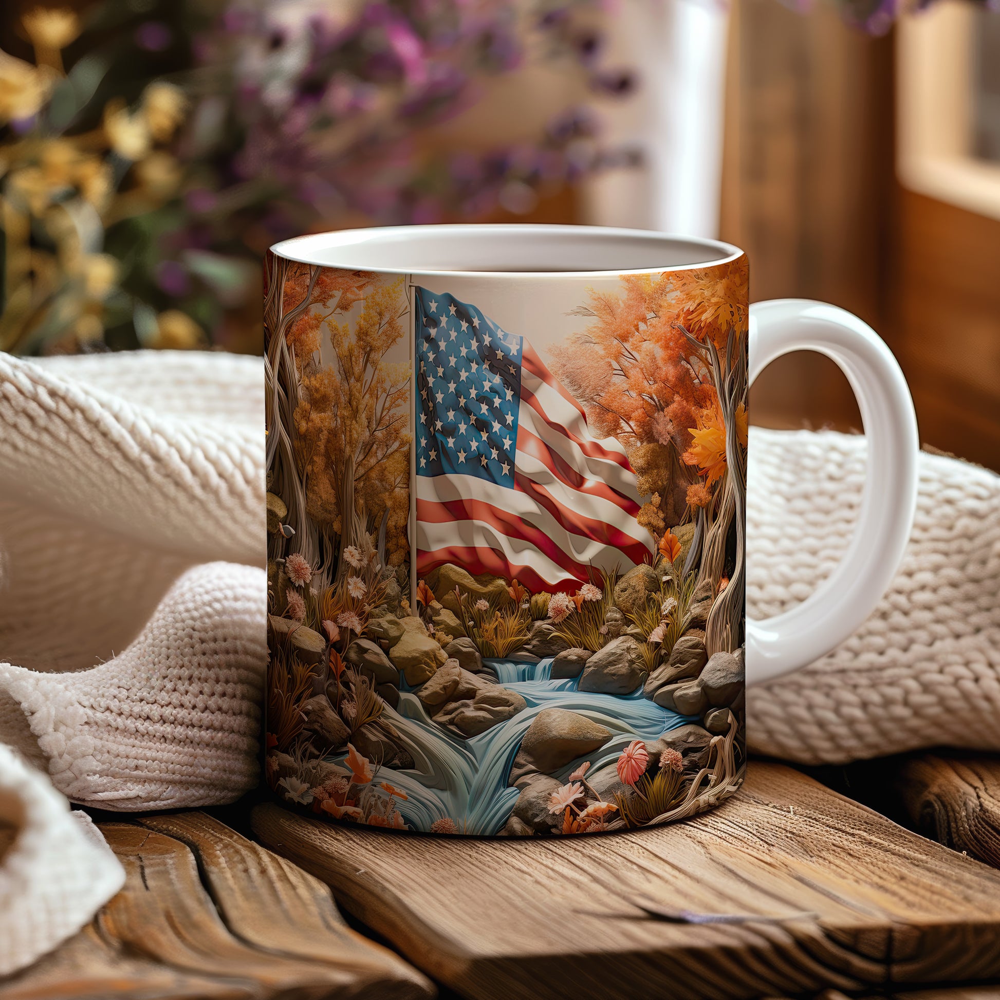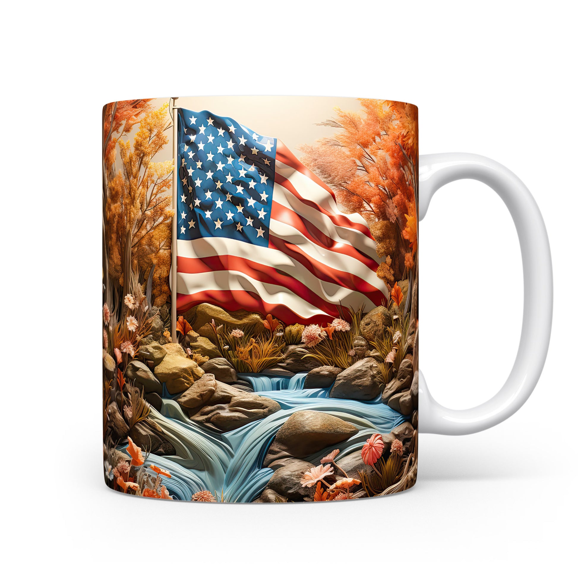 Hrnek s motivem vlajky USA v přírodním stylu, který zobrazuje krásu krajiny. Tento keramický hrnek je skvělým dárkem pro milovníky Ameriky nebo přírody. Materiál: keramika. Objem: 330 ml. Vhodné do myčky i mikrovlnky. Užívejte si kávu nebo čaj s nádechem dobrodružství.
