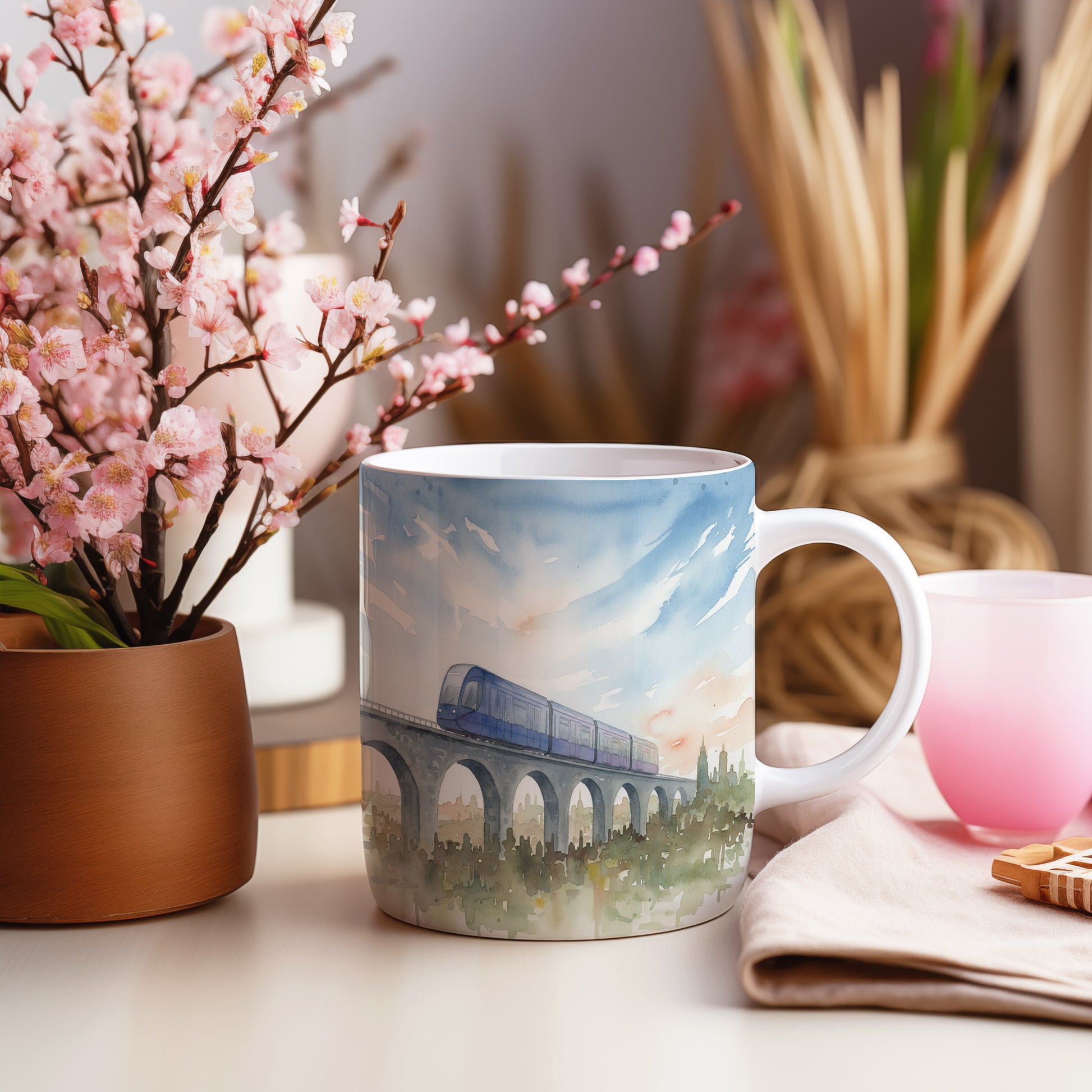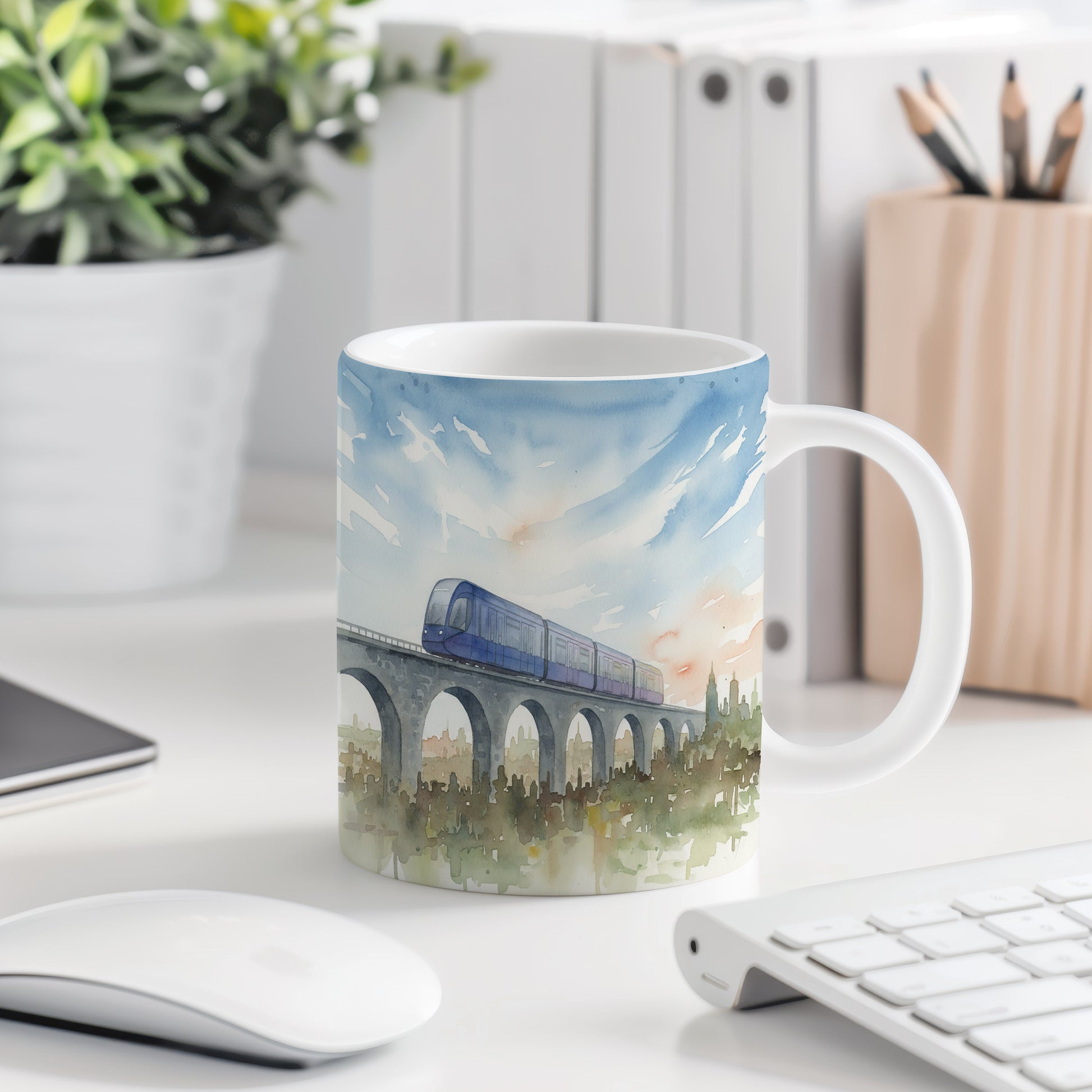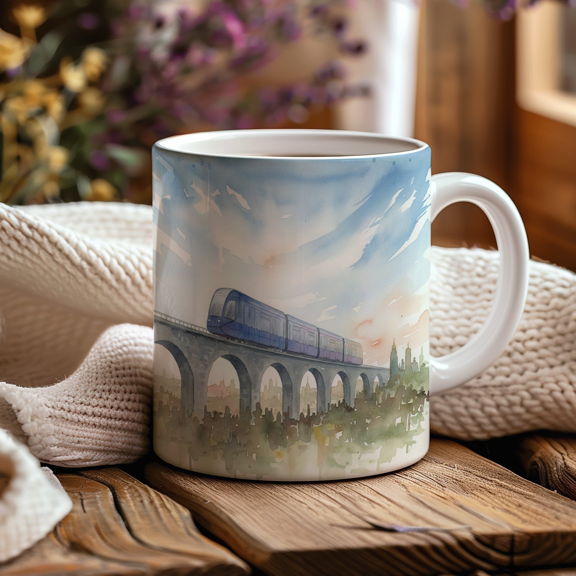 Objevte kouzlo akvarelového motivu vlaku na majestátním viaduktu. Jemné barvy a detaily přinášejí klid a eleganci. Hrnek 330 ml – vhodný do myčky i mikrovlnky.