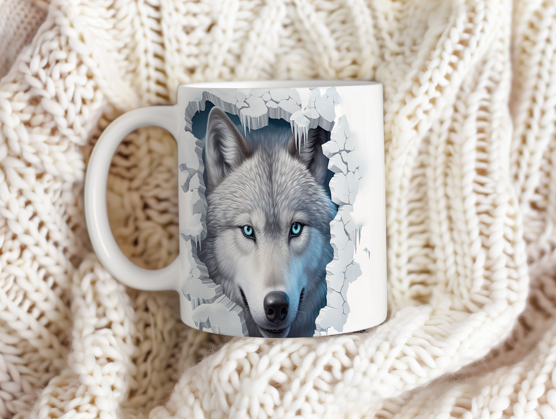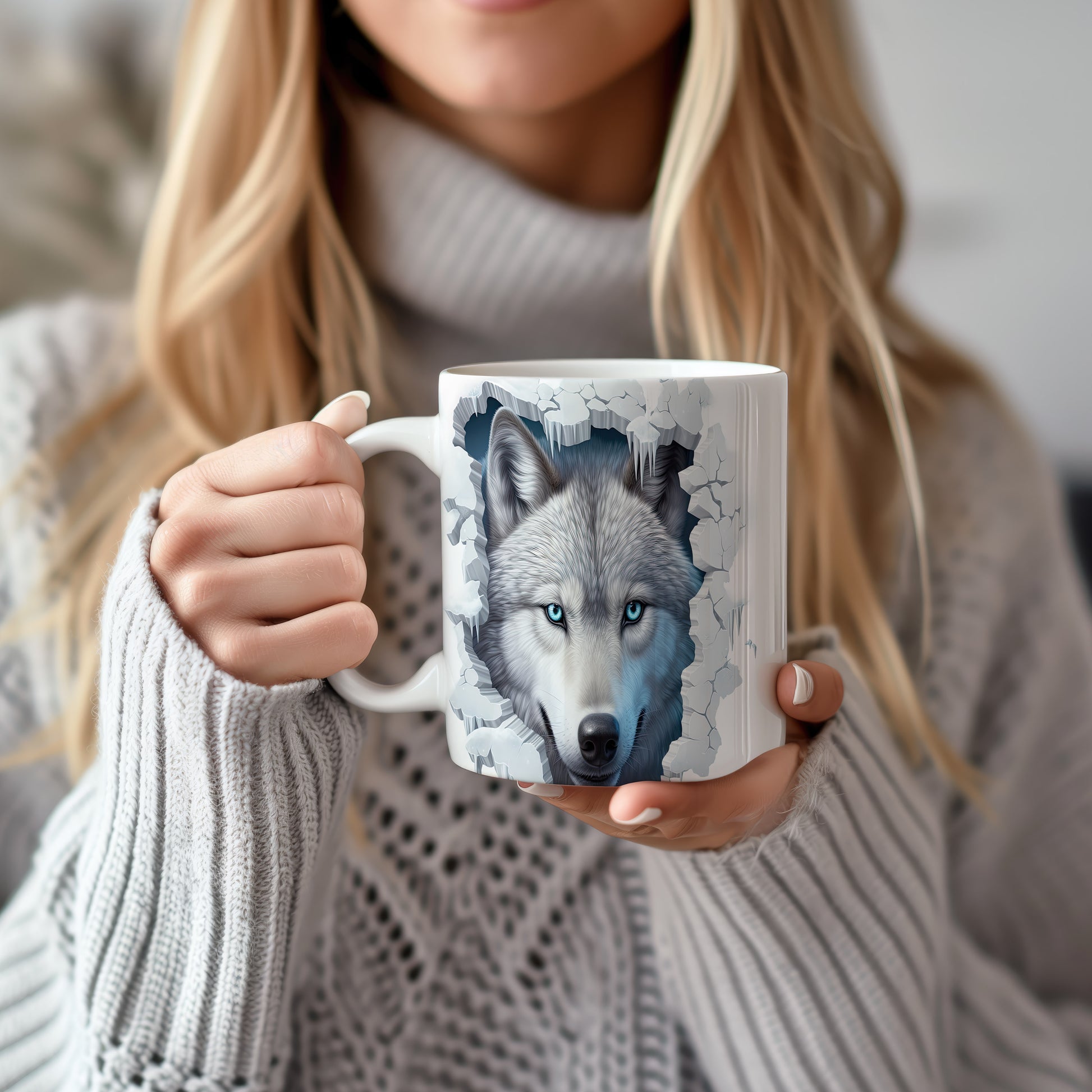 Hrnek s vlkem s modrýma očima