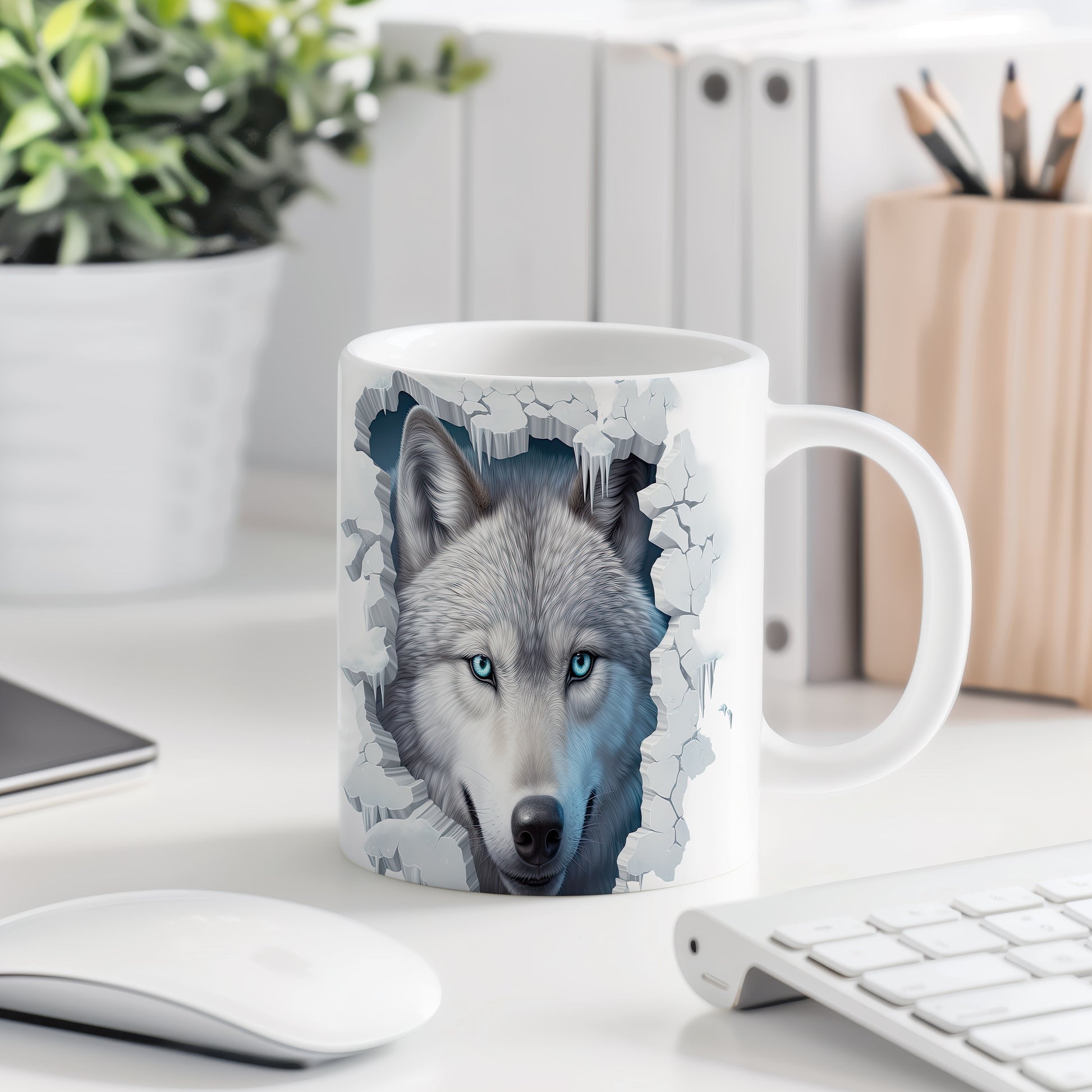 Tento keramický hrnek zobrazuje majestátního vlka s modrýma očima, ideální pro milovníky přírody a zvířat. Skvělý tip na dárek pro všechny, kteří ocení krásu divoké přírody. Materiál: keramika. Objem: 330 ml. Vhodné do myčky i mikrovlnky. Používáním tohoto hrnku si užijete nejen skvělý design, ale i pohodlné pití oblíbených nápojů.