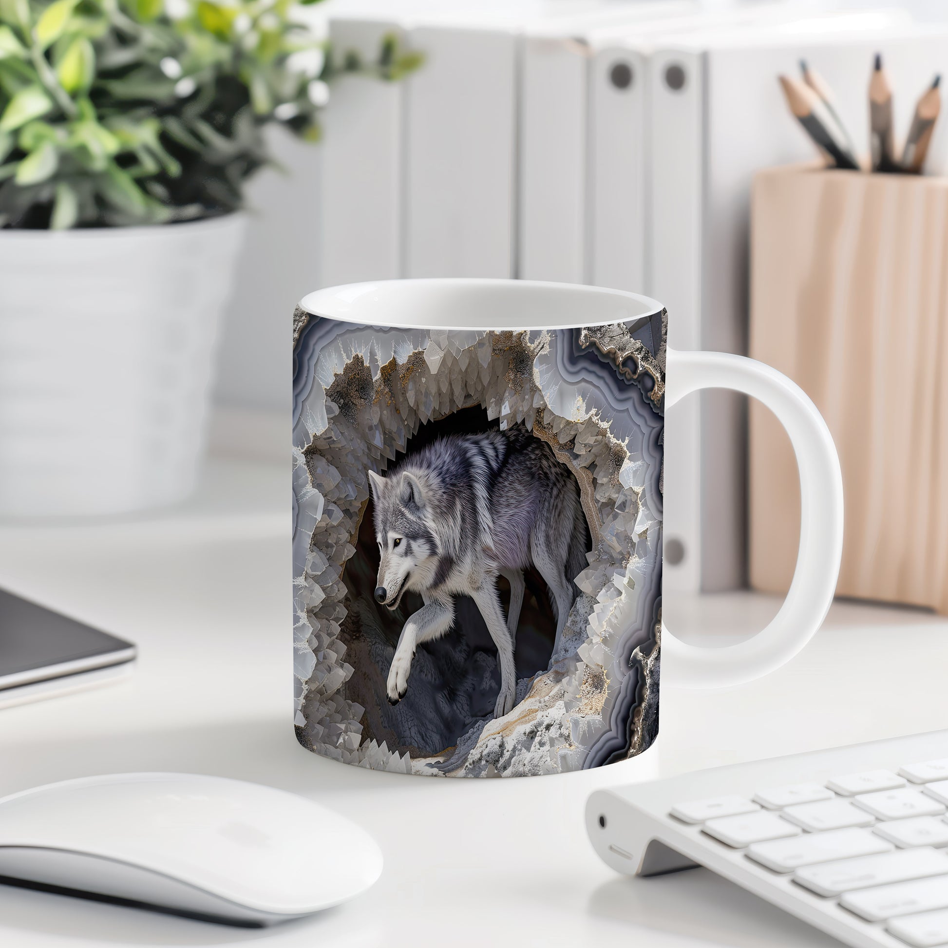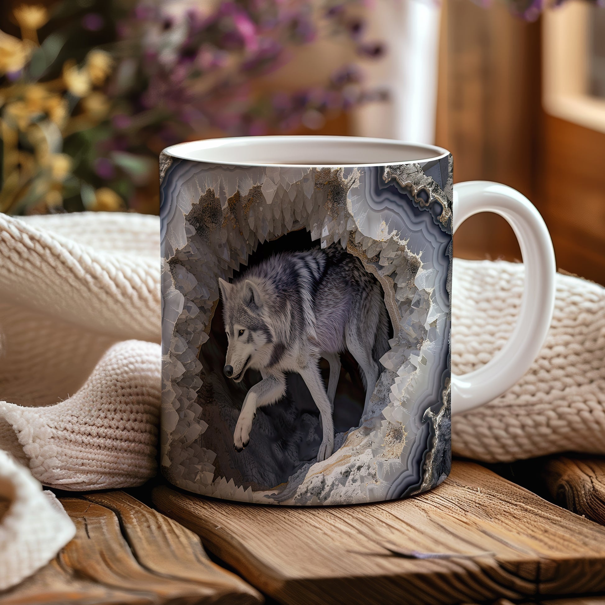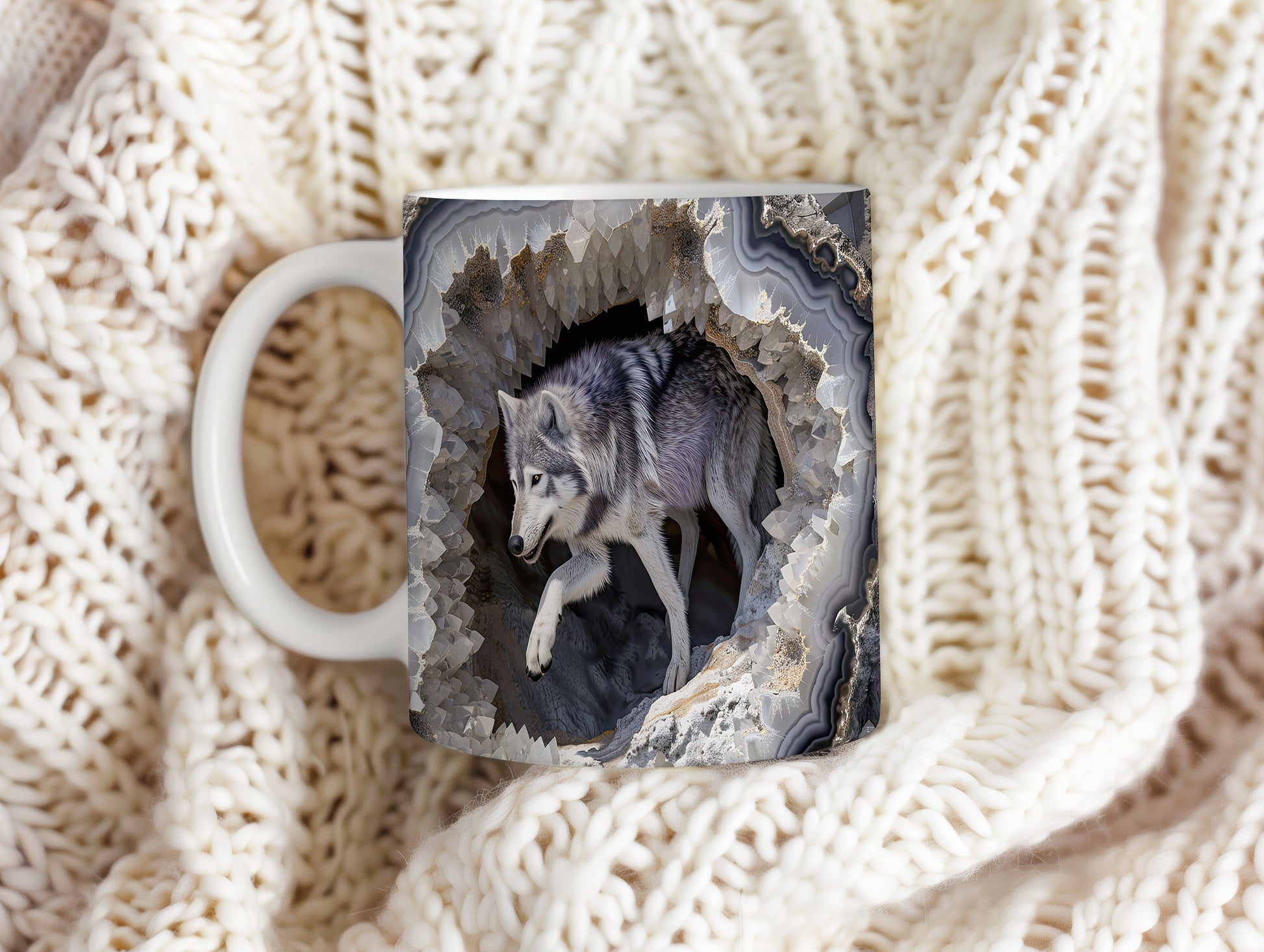 Hrnek zobrazuje vlka vycházejícího z jeskyně, přírodní motiv s krystaly. Je ideální pro milovníky přírody a skvělým dárkem pro každého, kdo ocení divokou krásu. Materiál: keramika. Objem: 330 ml. Vhodné do myčky i mikrovlnky. Tento hrnek přináší do každodenního pití kousek přírody a dobrodružství.