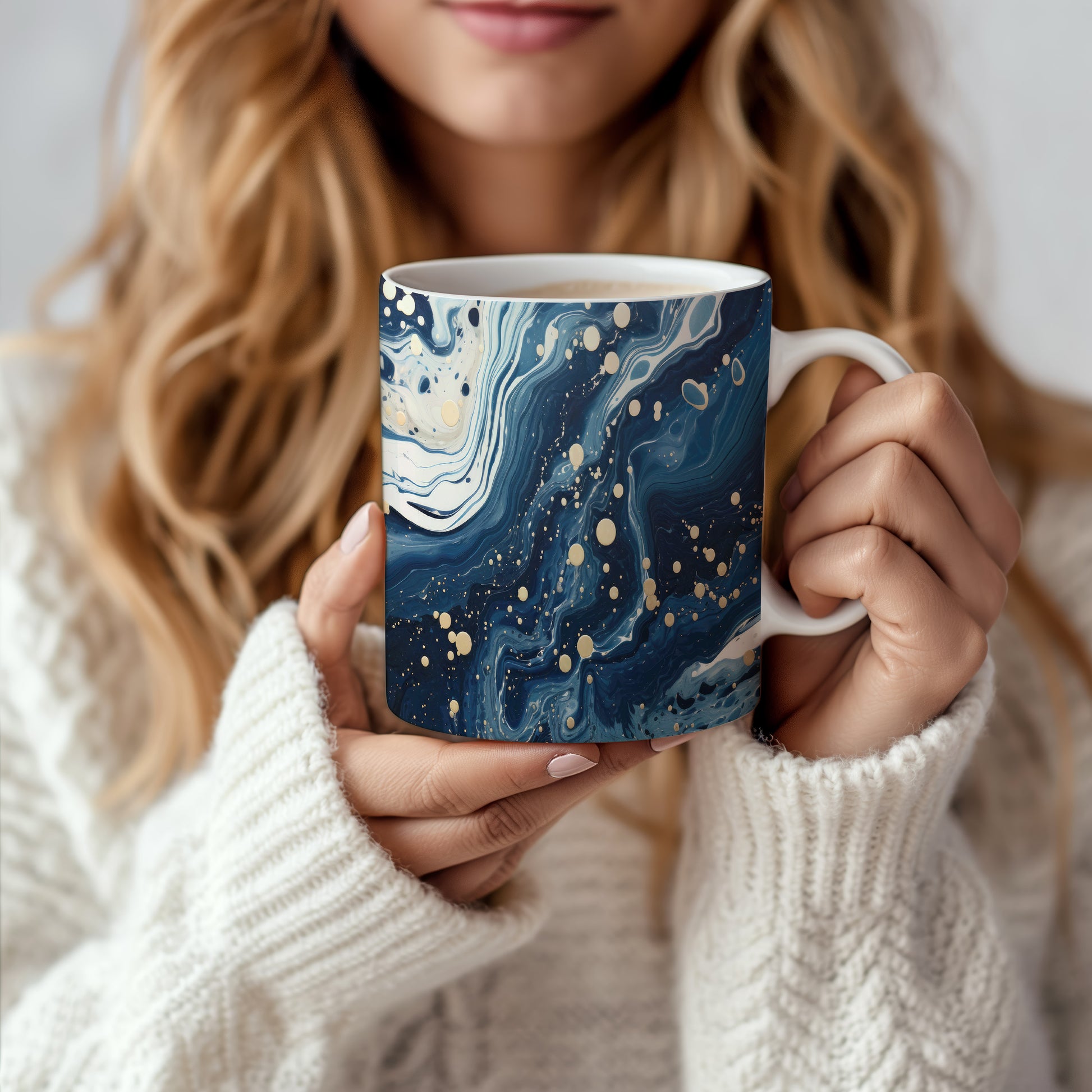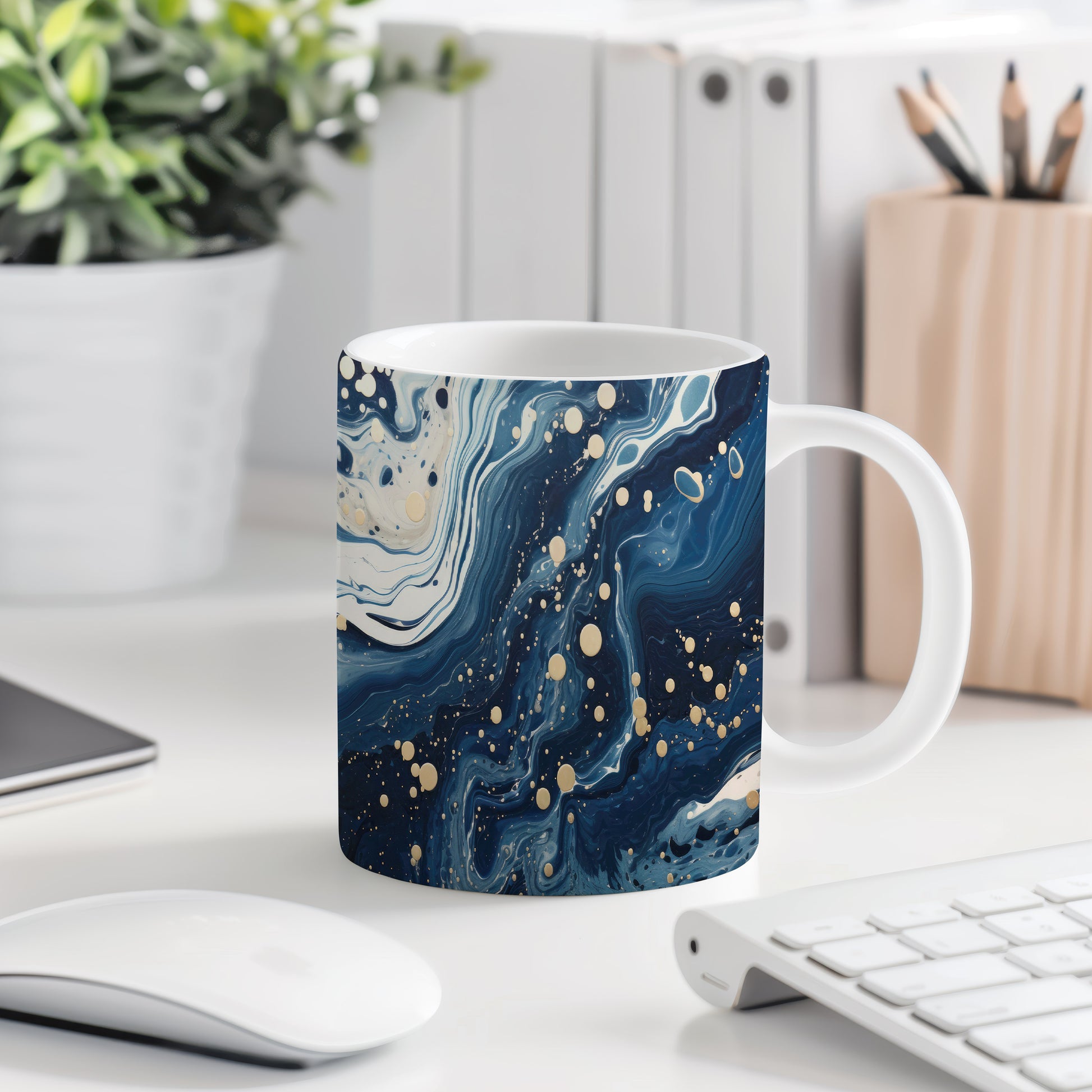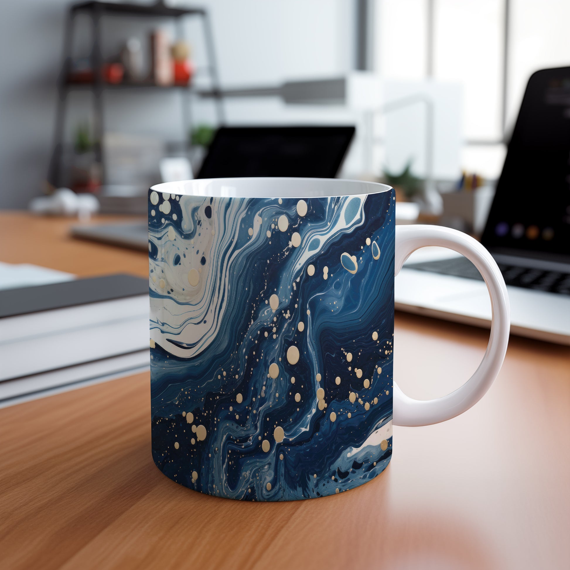 Hrnek s vlnami v tmavě modré a bílé
