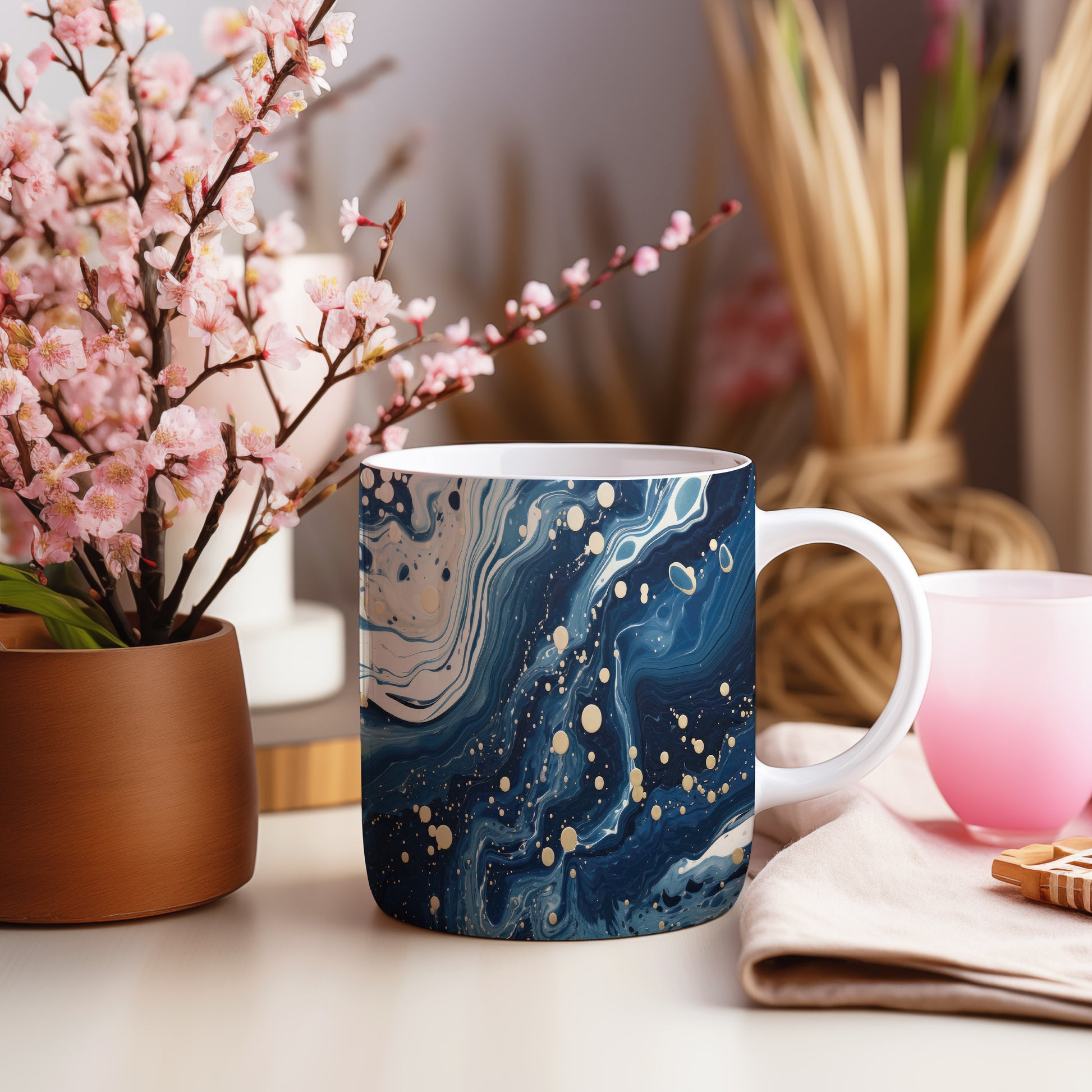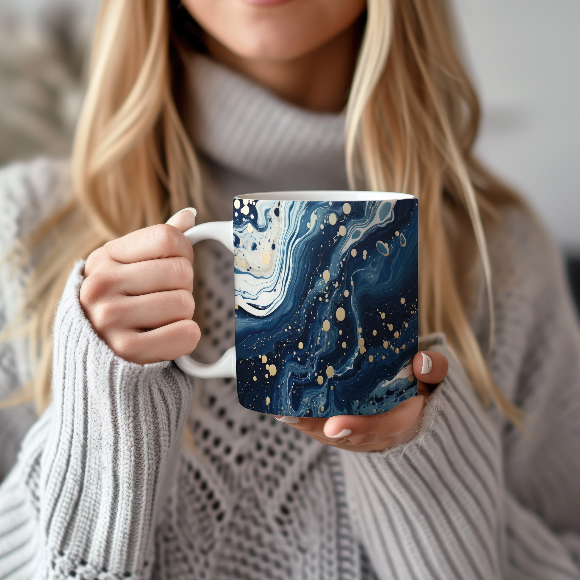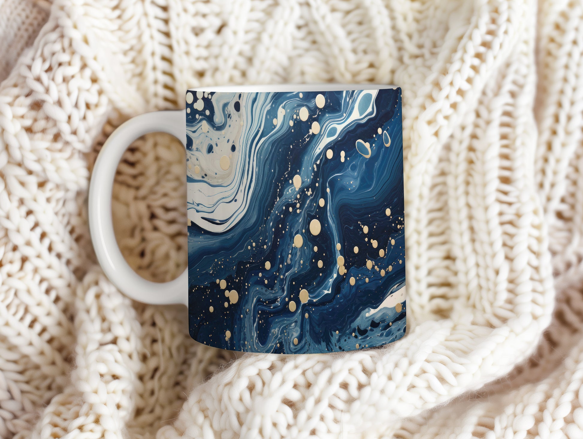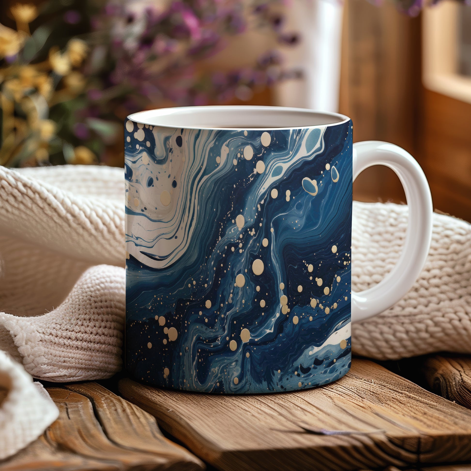 Hrnek s vlnami v tmavě modré a bílé