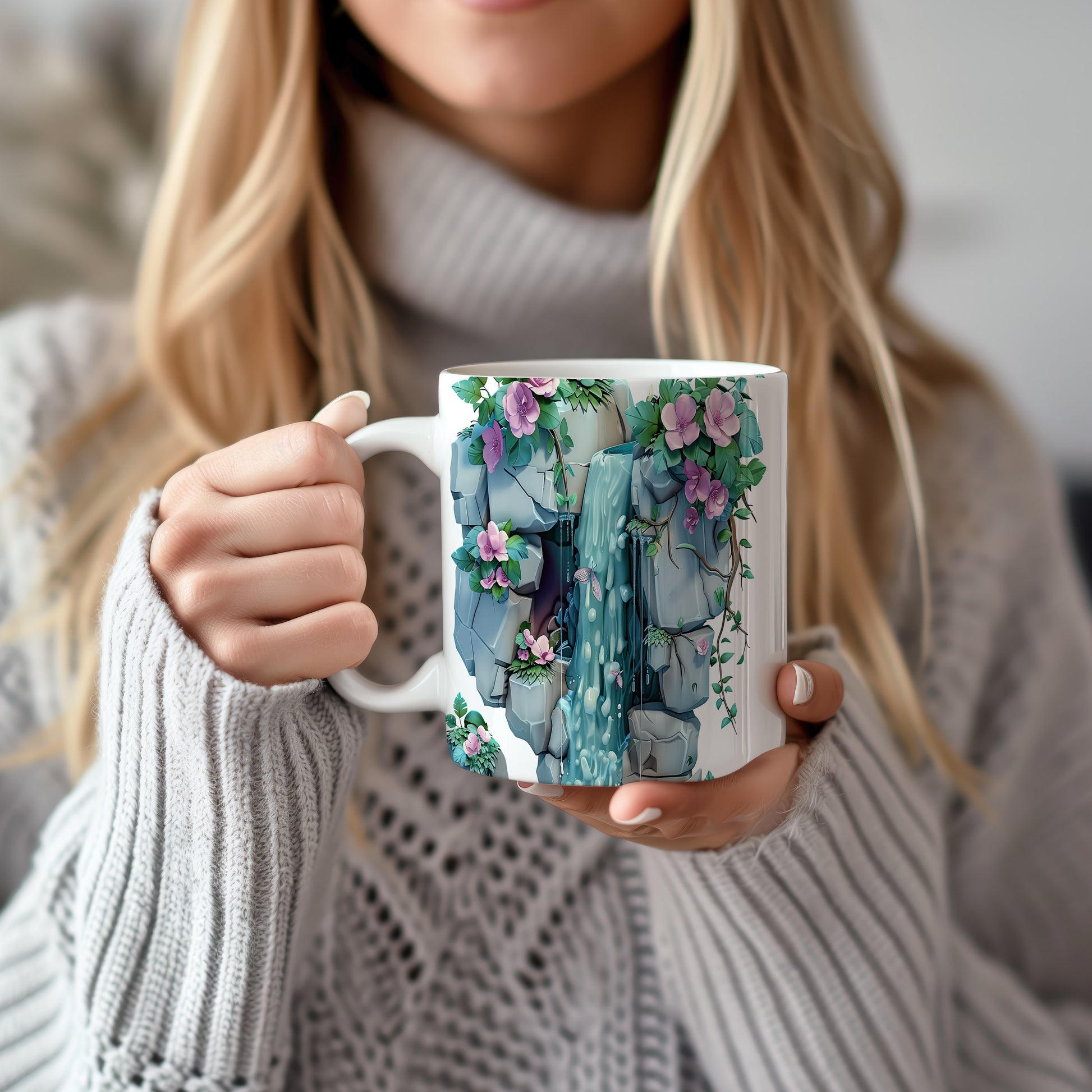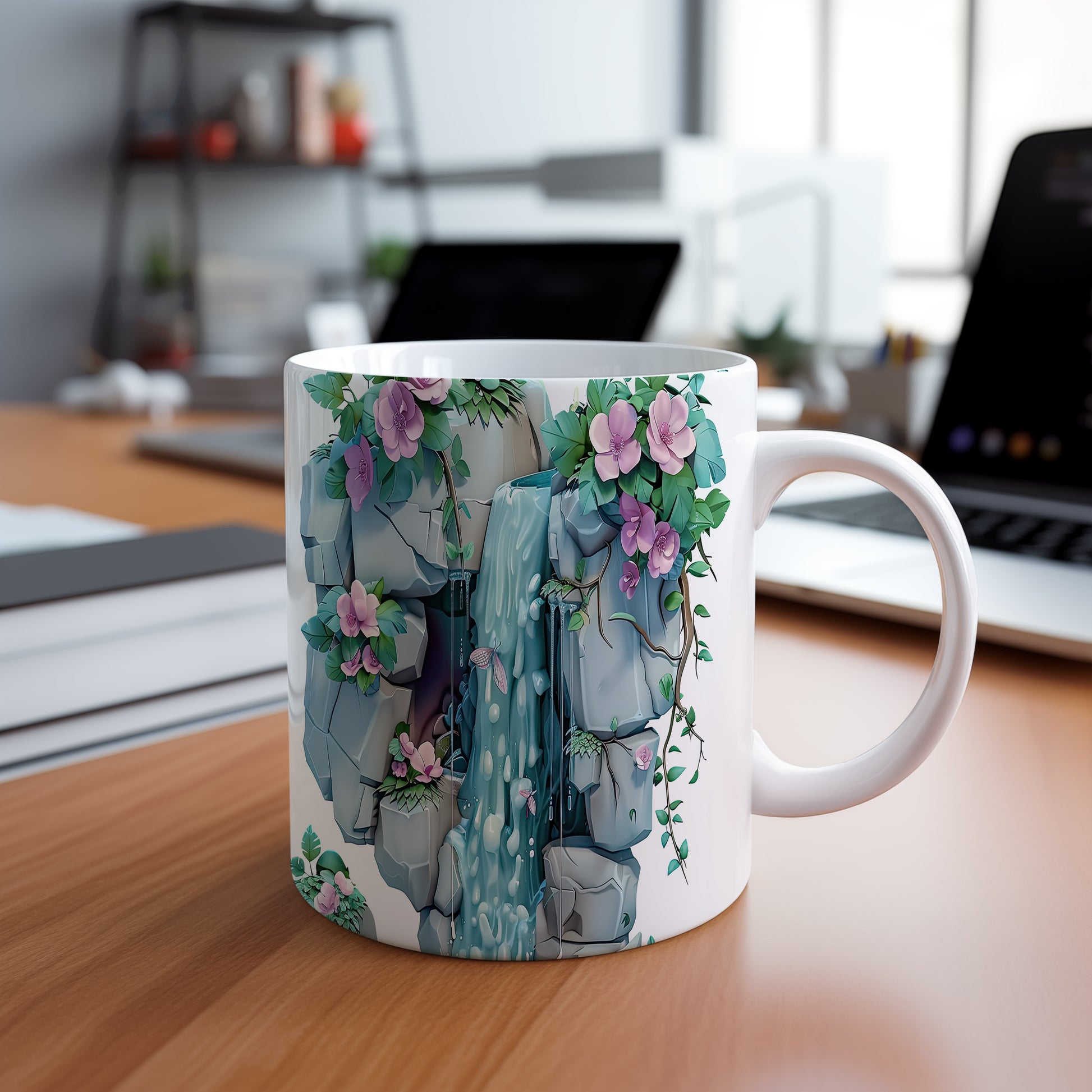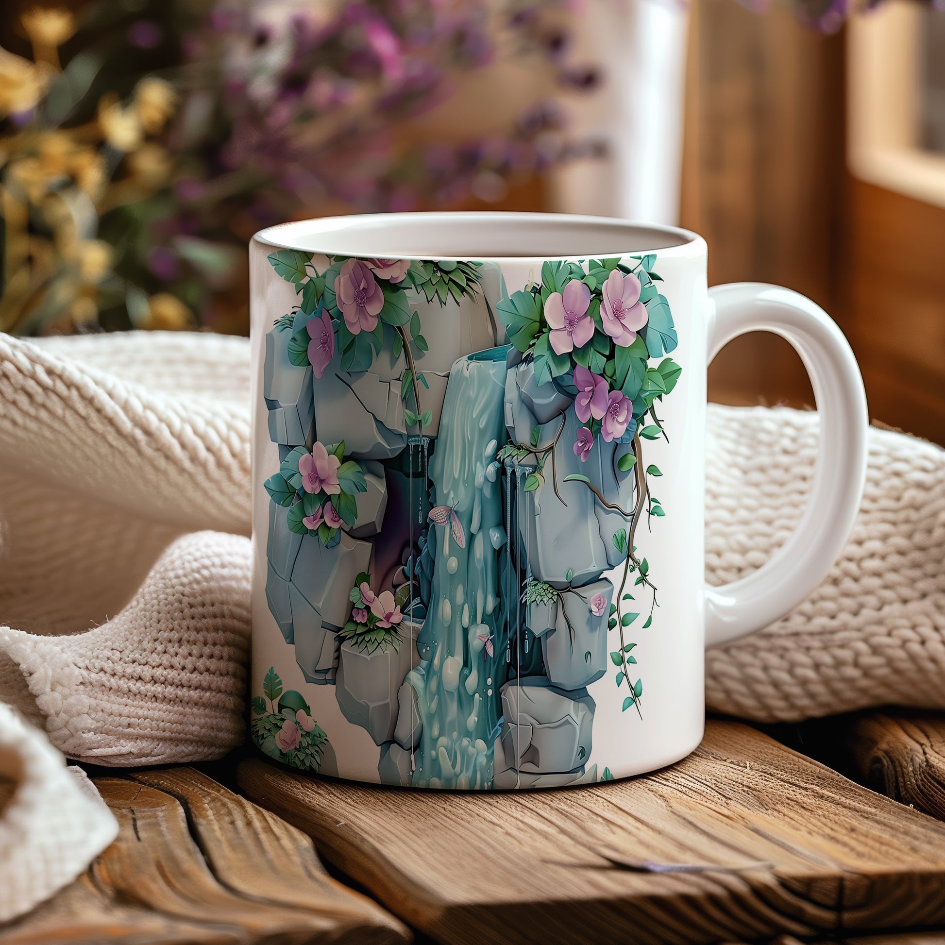 Keramický hrnek s motivem vodopádu a květin, ideální pro milovníky přírody a klidného odpočinku. Skvělý tip na dárek pro přátele nebo rodinu, kteří ocení přírodní krásy. Materiál: keramika. Objem: 330 ml. Vhodné do myčky i mikrovlnky. Tento hrnek přináší do každodenního pití nádech přírody a relaxace.