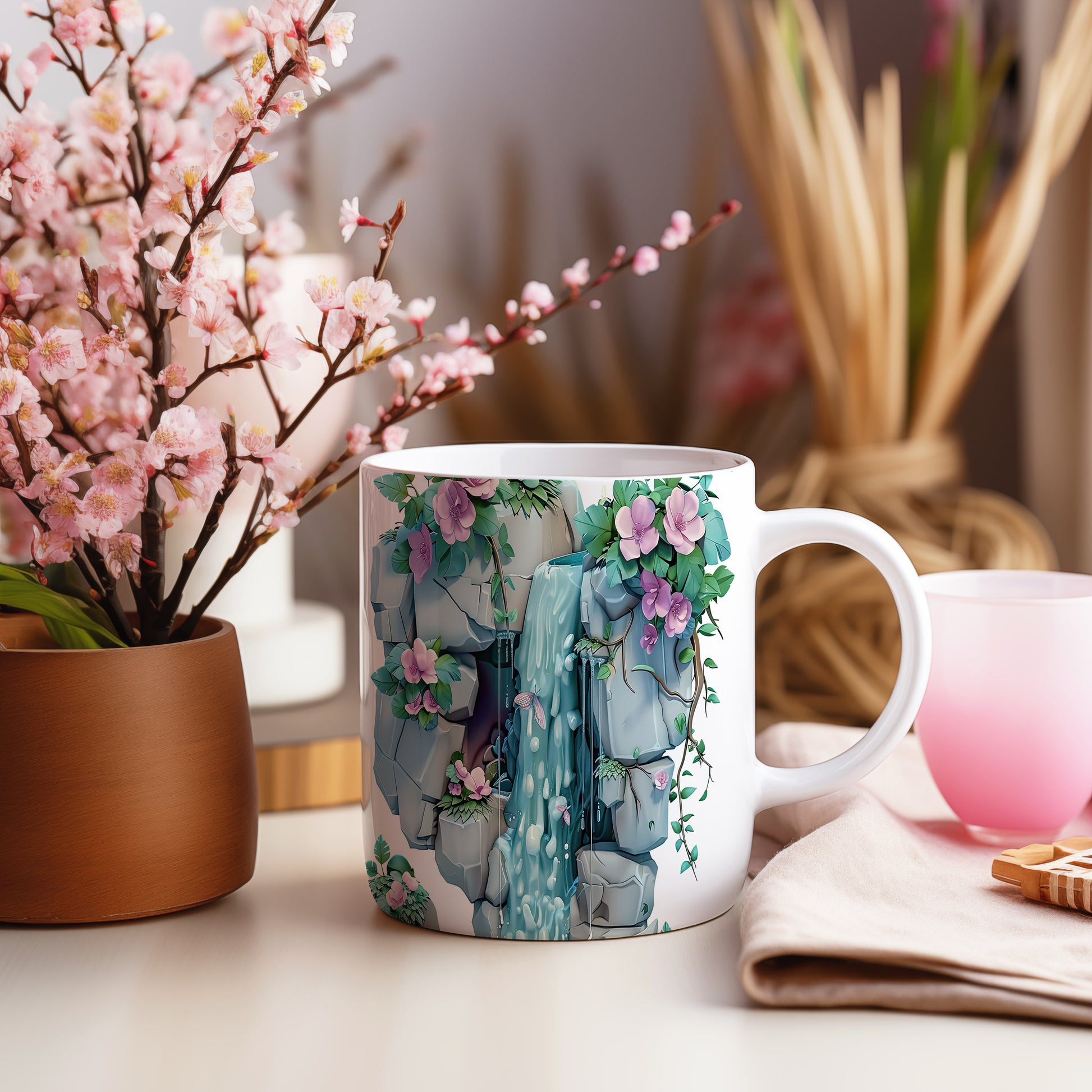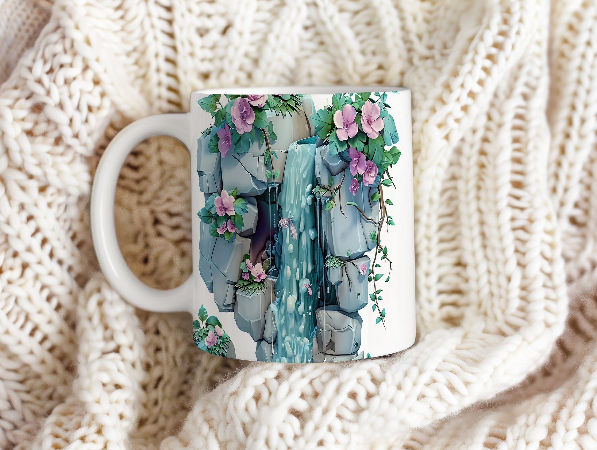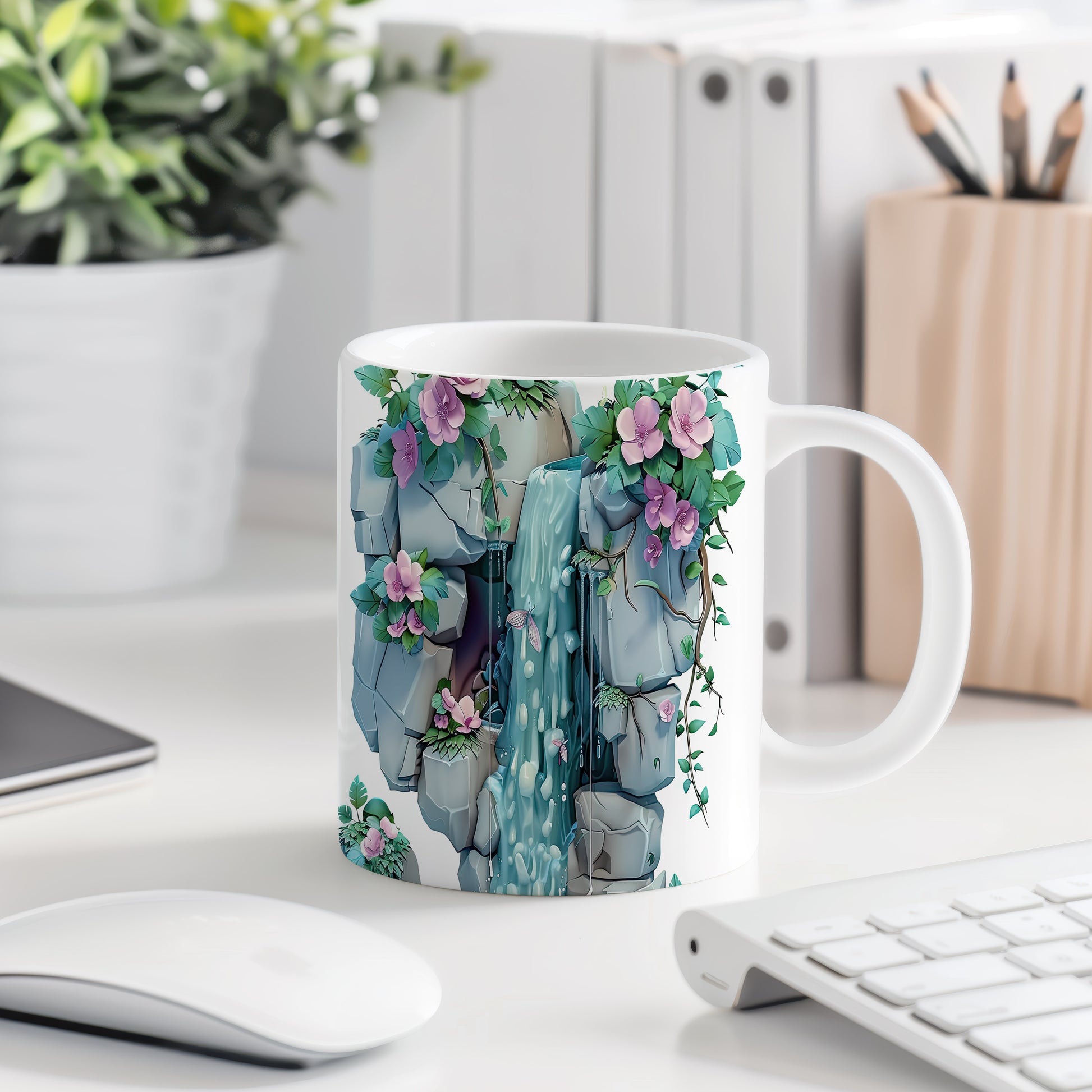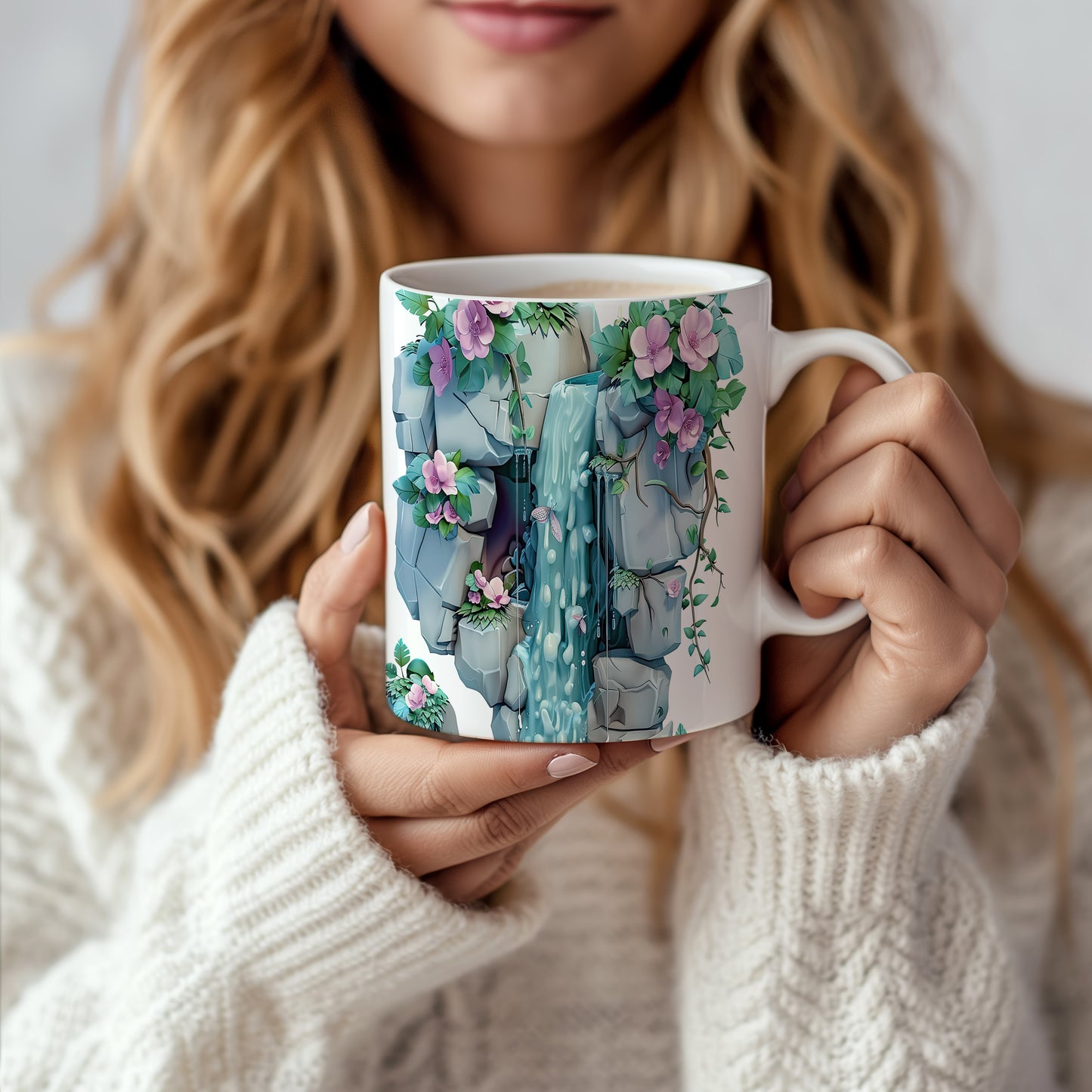 Keramický hrnek s motivem vodopádu a květin, ideální pro milovníky přírody a klidného odpočinku. Skvělý tip na dárek pro přátele nebo rodinu, kteří ocení přírodní krásy. Materiál: keramika. Objem: 330 ml. Vhodné do myčky i mikrovlnky. Tento hrnek přináší do každodenního pití nádech přírody a relaxace.