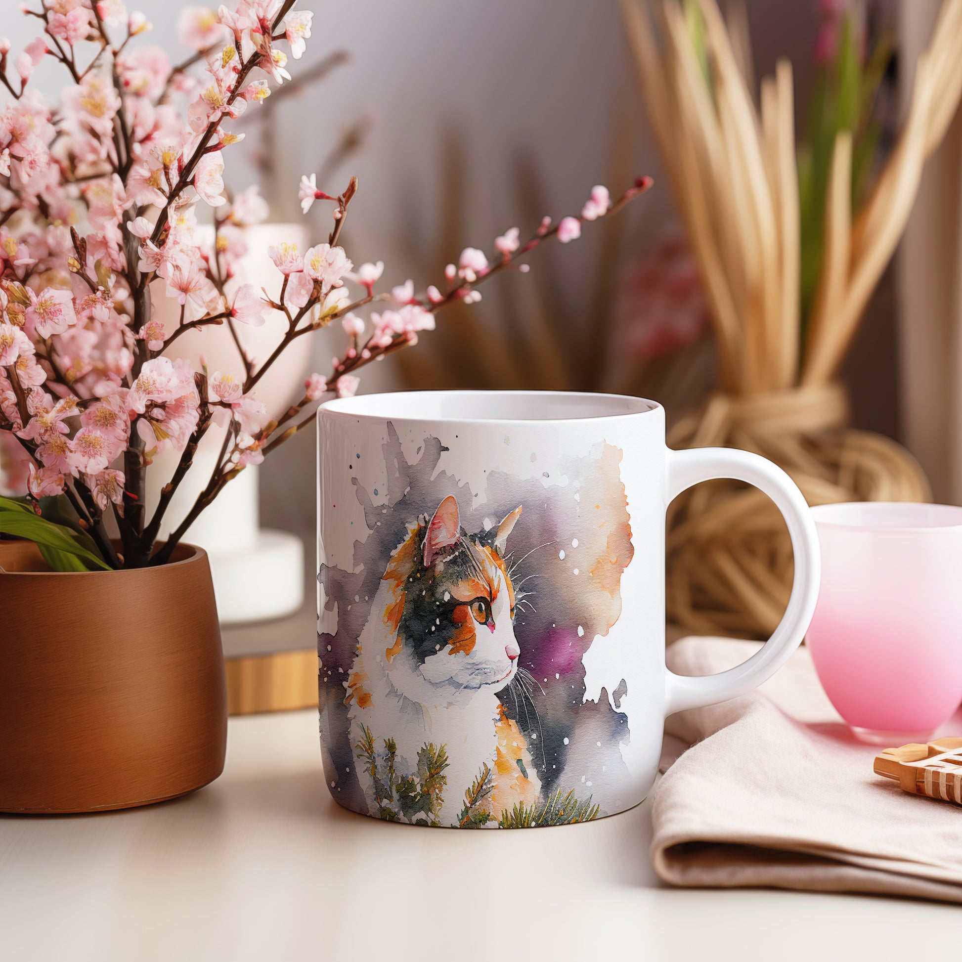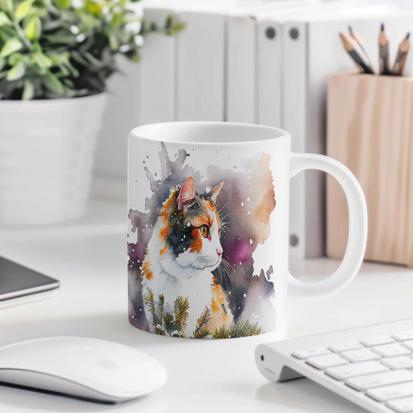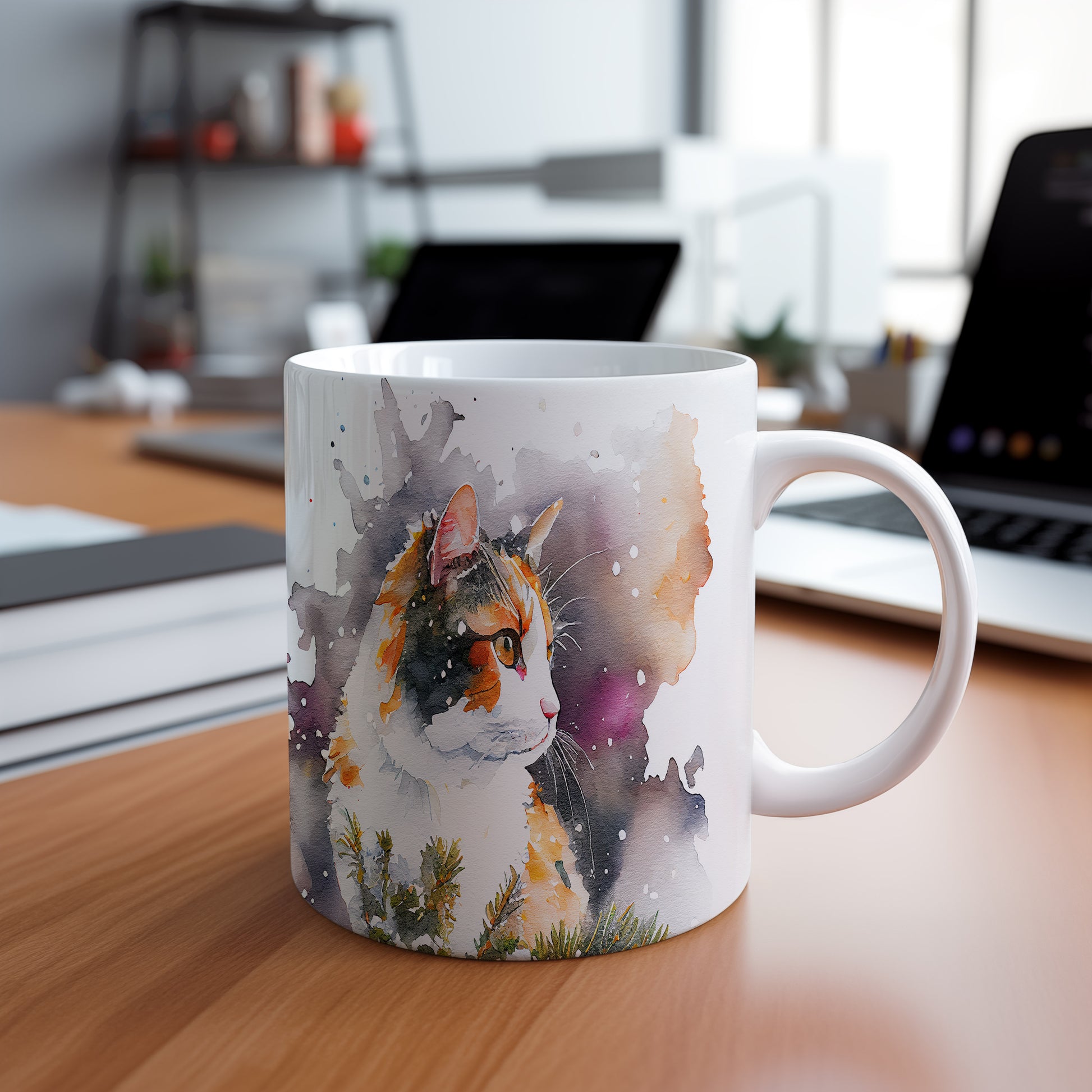 Tento hrnek z keramiky zobrazuje elegantní kočku v krásné akvarelové malbě. Je ideální pro milovníky koček a skvělým dárkem pro každého, kdo ocení originální design. Materiál: keramika. Objem: 330 ml. Vhodné do myčky i mikrovlnky. Používání tohoto hrnku přináší radost a oživí každý okamžik pití.
