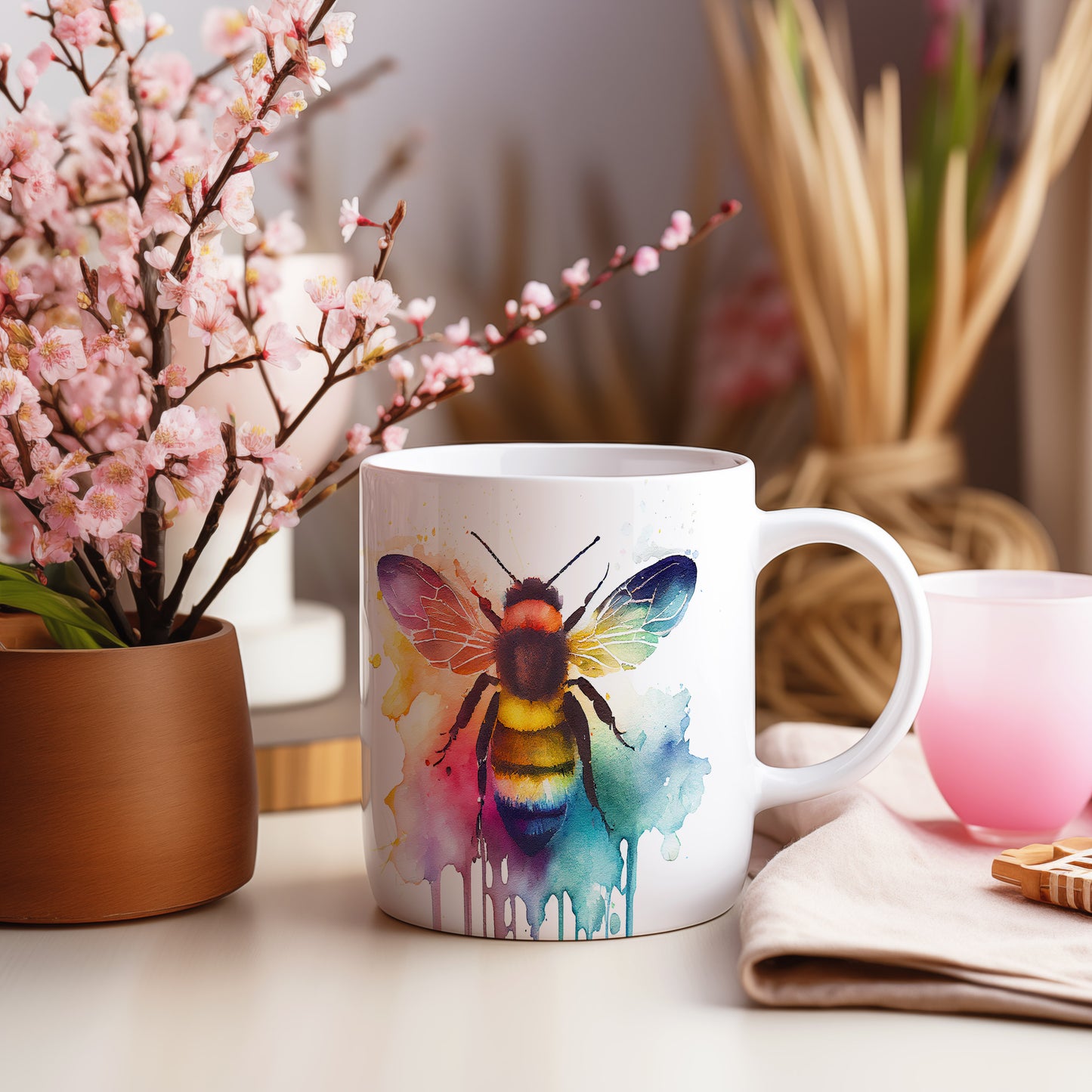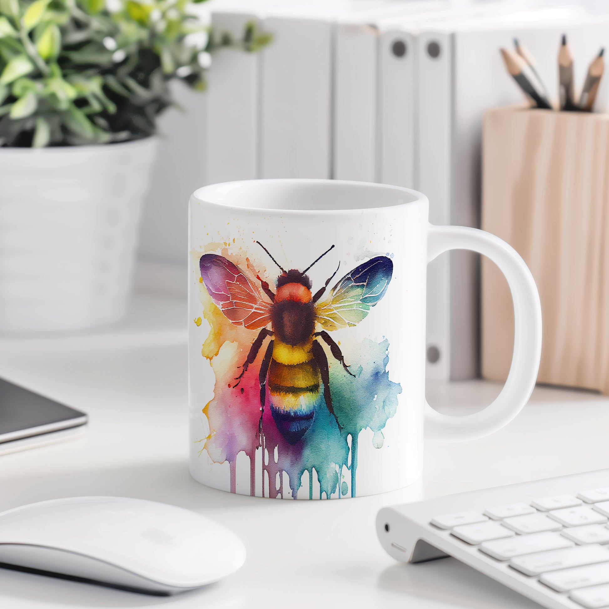 Tento keramický hrnek s vodovým motivem včely a barevných skvrn je skvělou volbou pro milovníky přírody a kreativní duše. Je ideální jako dárek pro přátele nebo rodinu, kteří ocení jedinečný design. Materiál: keramika. Objem: 330 ml. Vhodné do myčky i mikrovlnky. Používání tohoto hrnku přináší radost z každého doušku.