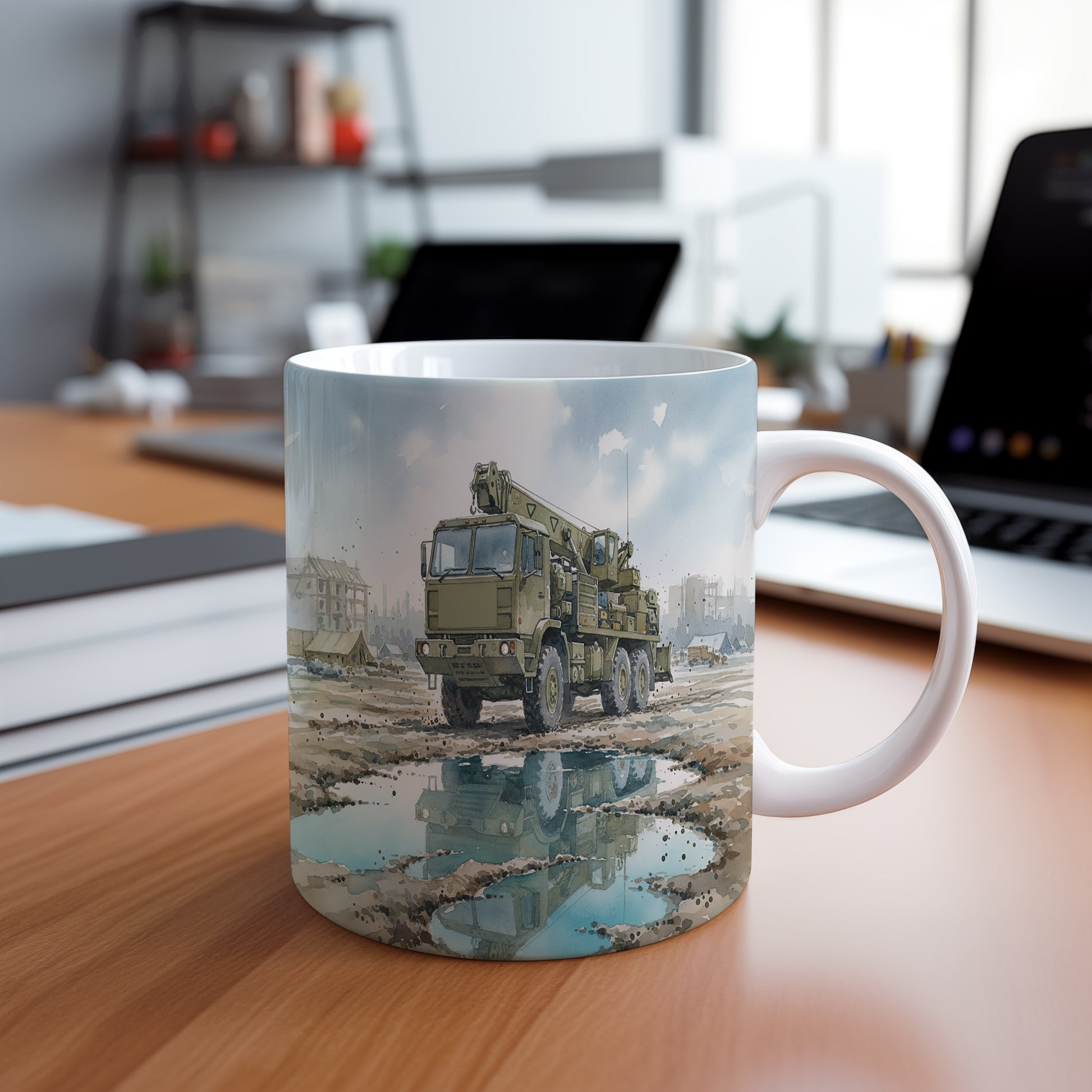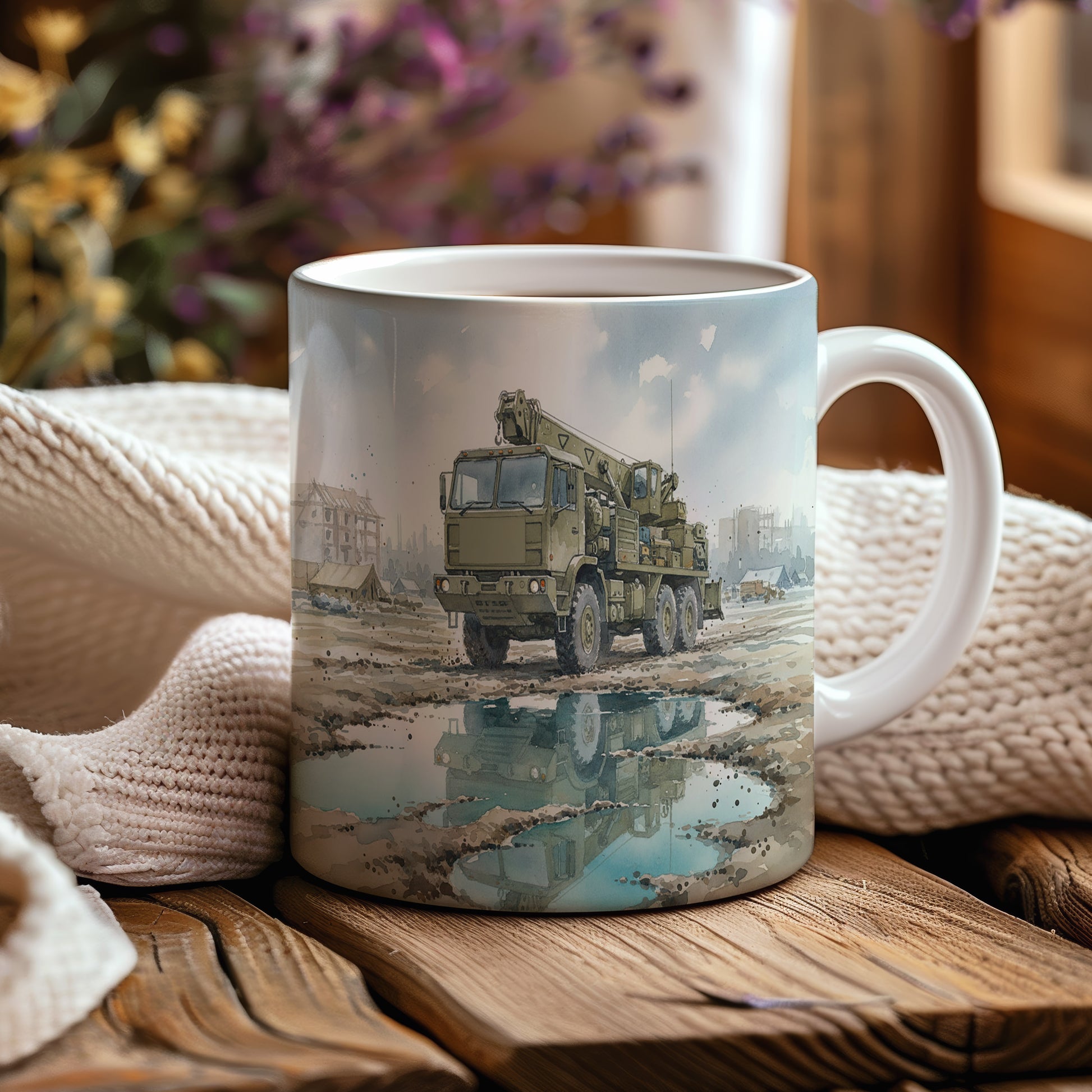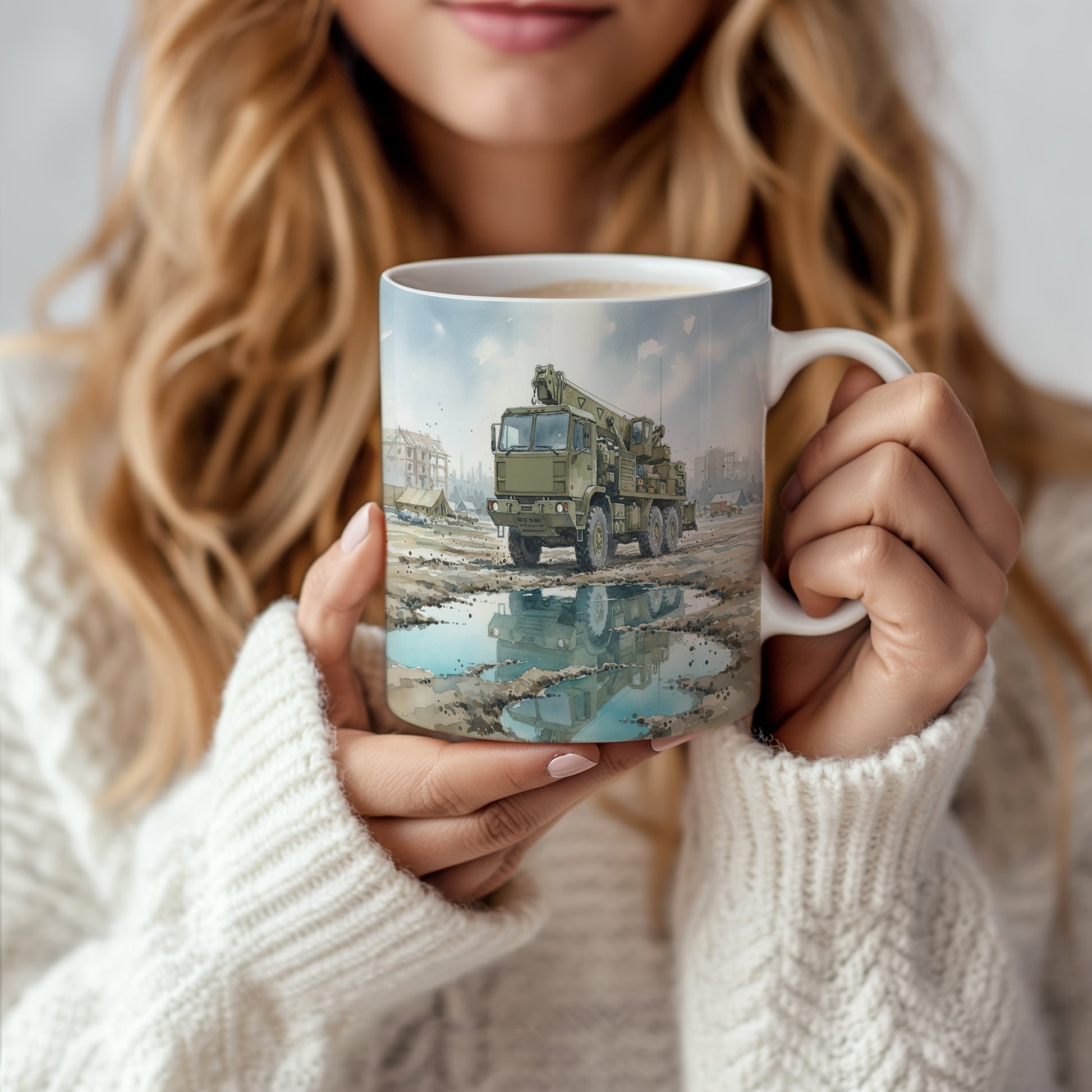 Objevte krásu vojenského jeřábu na staveništi v akvarelovém provedení. Tento hrnek je ideální pro milovníky techniky a umění. Hrnek 330 ml – vhodný do myčky i mikrovlnky.