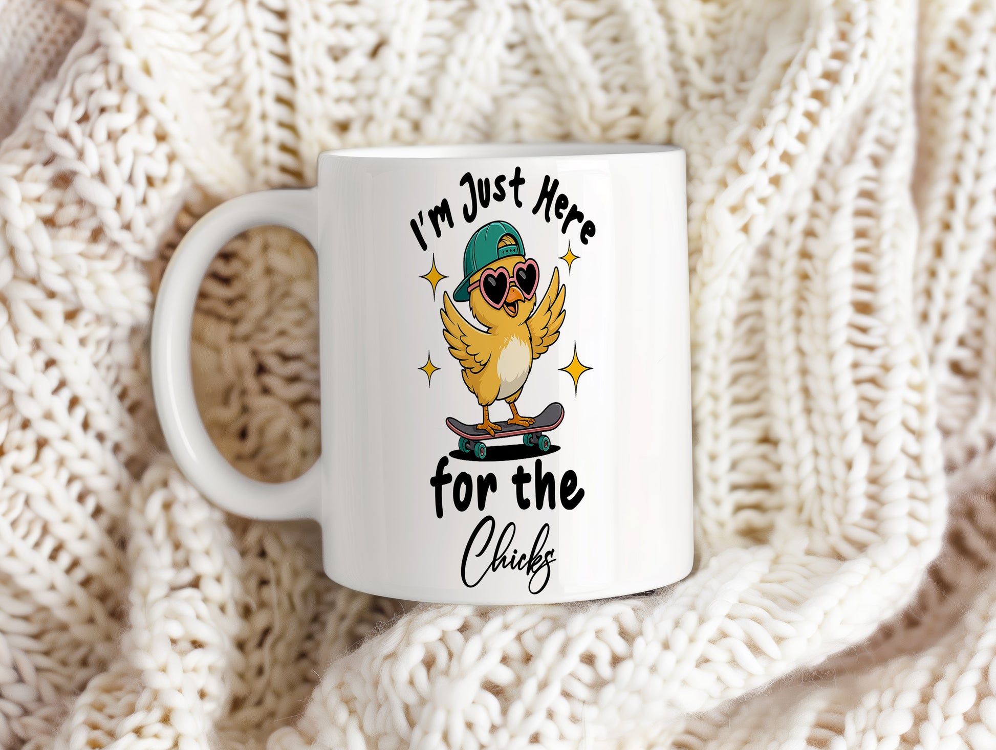 Hrnek s vtipným nápisem – Just Here for the Chicks