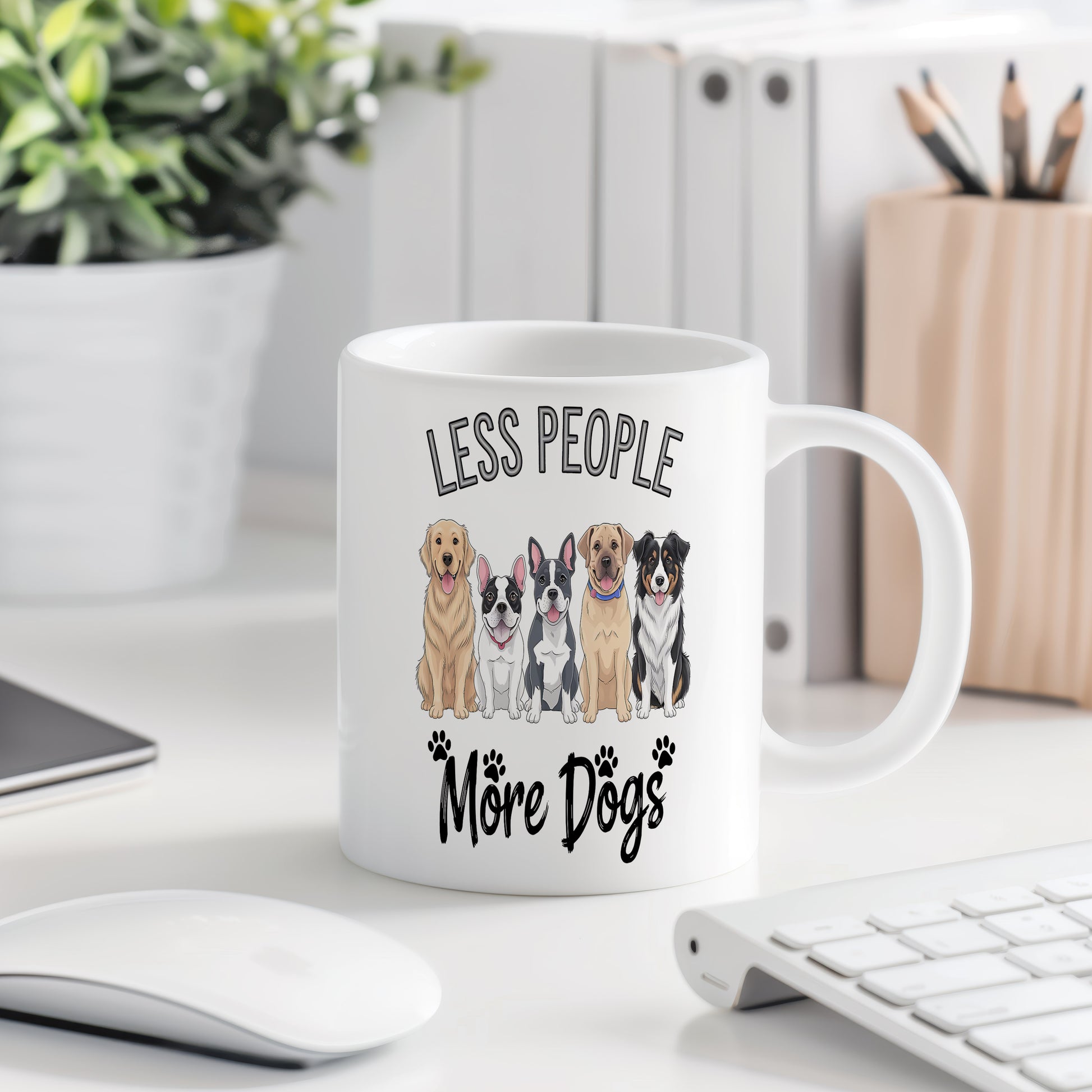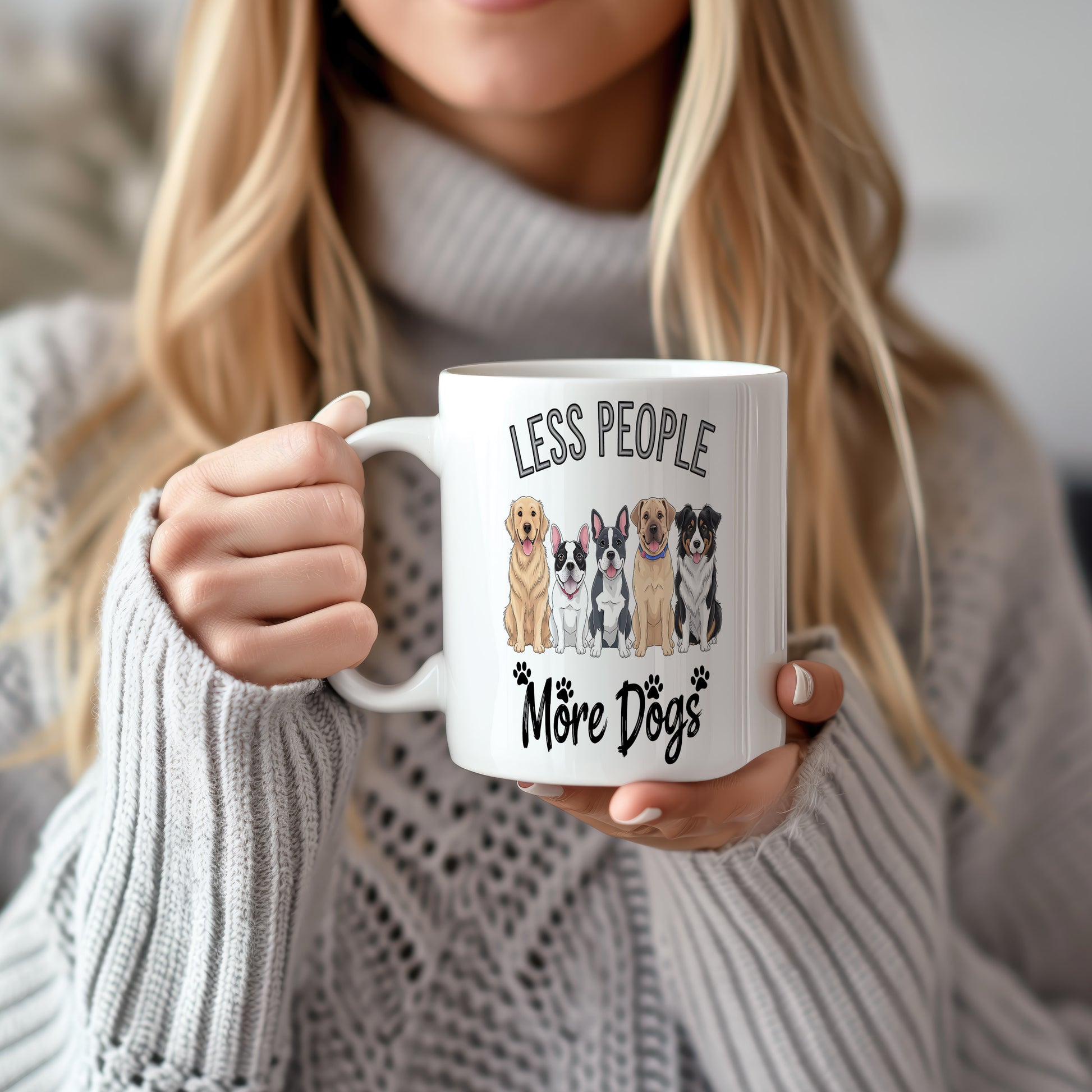 Tento hrnek s nápisem 'LESS PEOPLE More Dogs' je ideální pro milovníky psů. Přináší úsměv a pohodu do každého dne.
