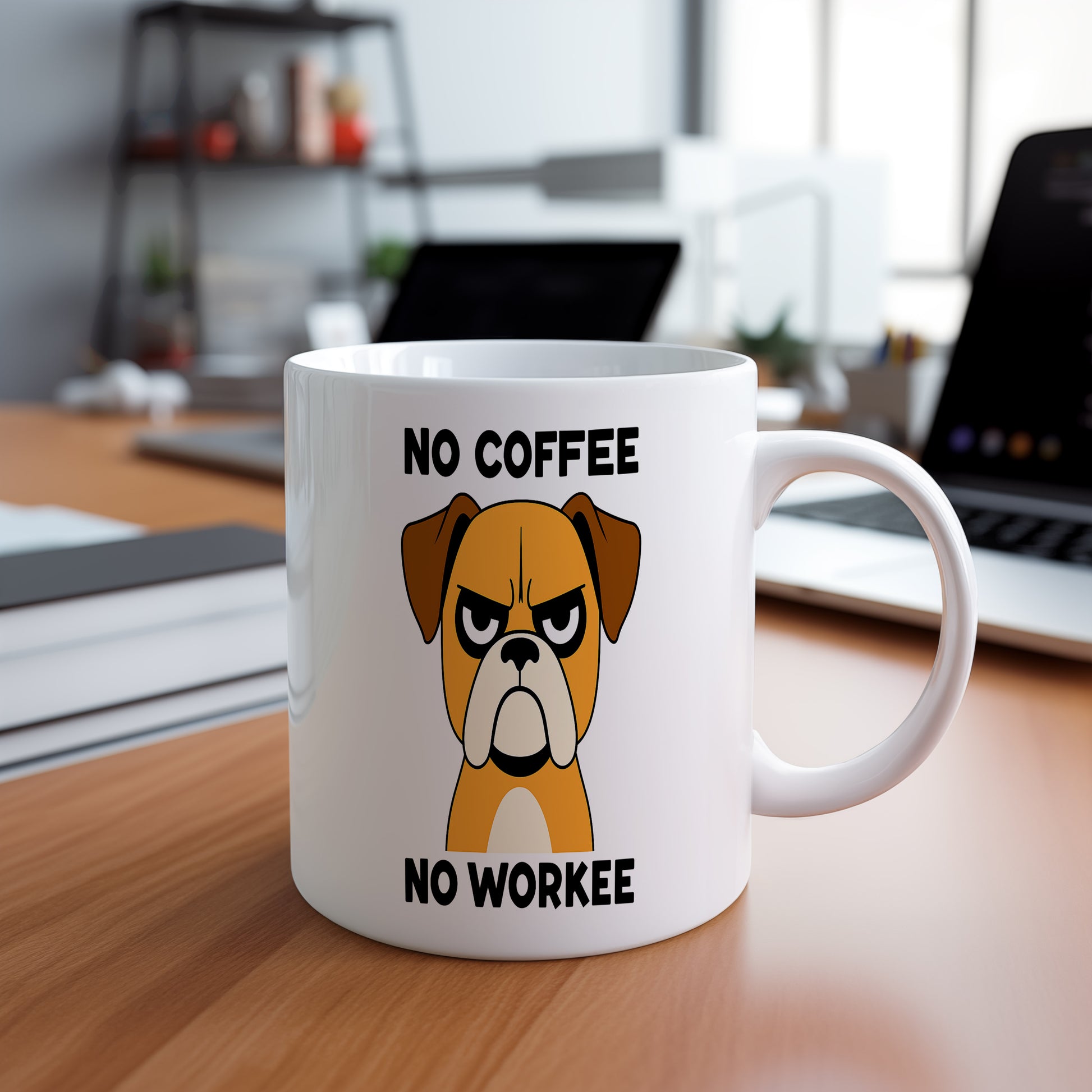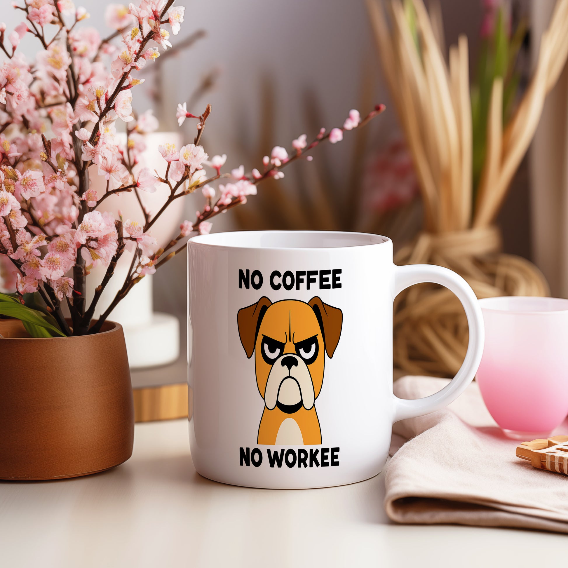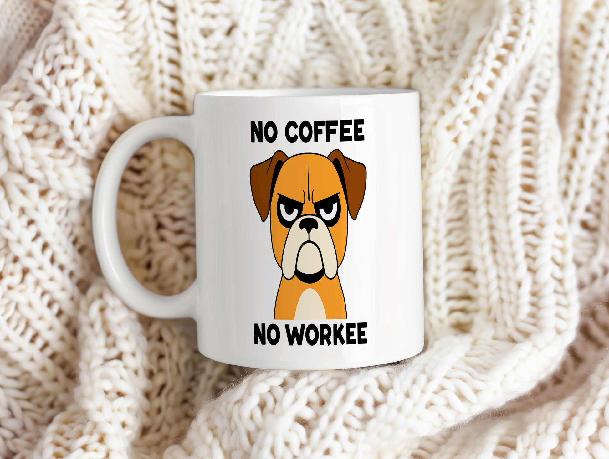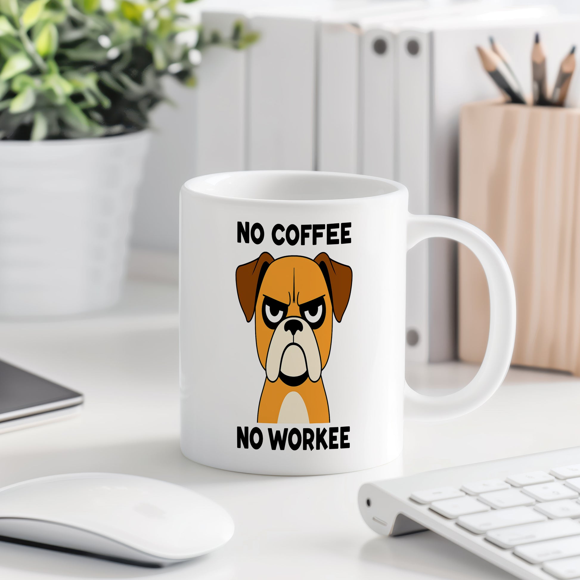 Tento hrnek s nápisem 'NO COFFEE NO WORKEE' je ideální pro milovníky kávy. Skvělý dárek pro ty, kteří potřebují svou ranní dávku kofeinu.