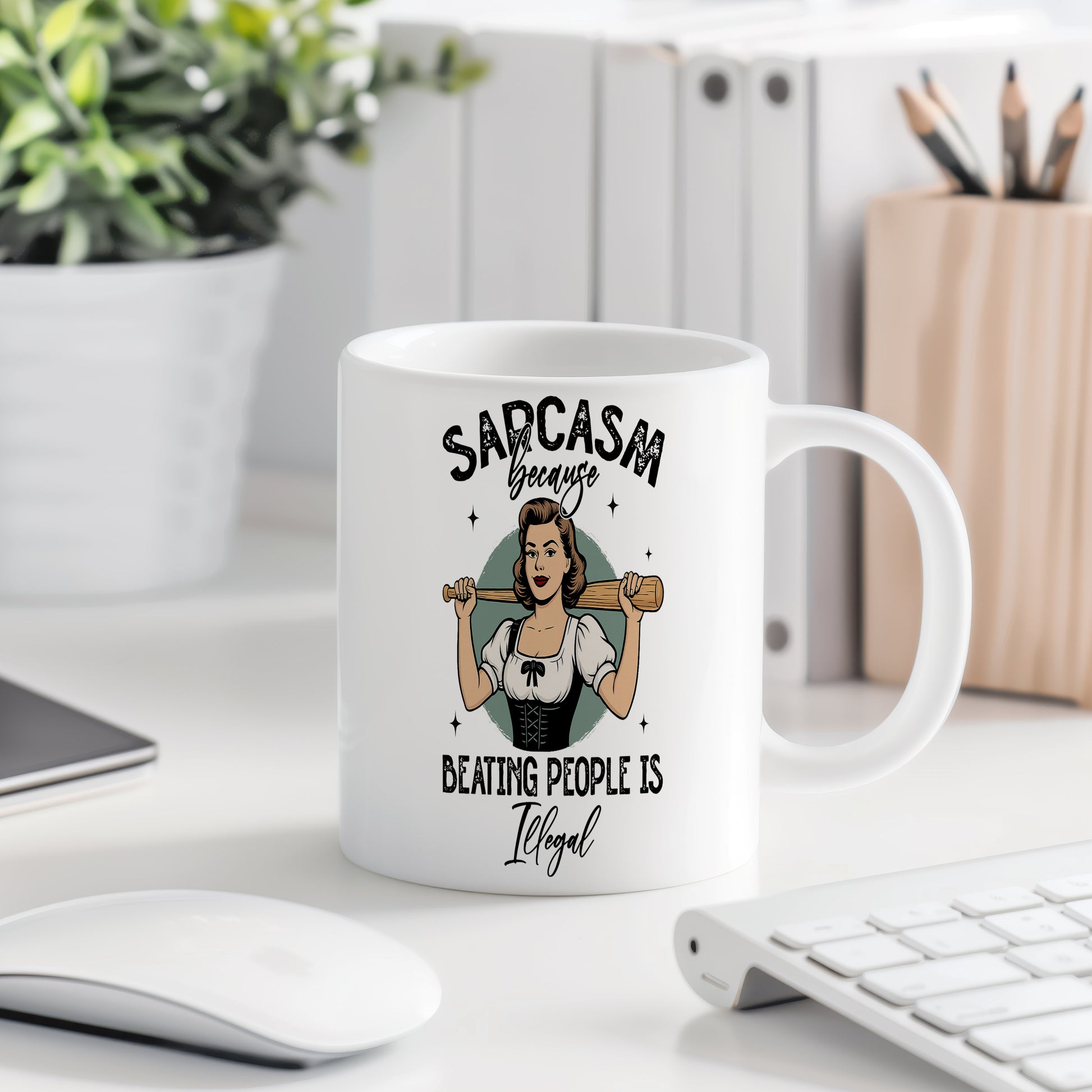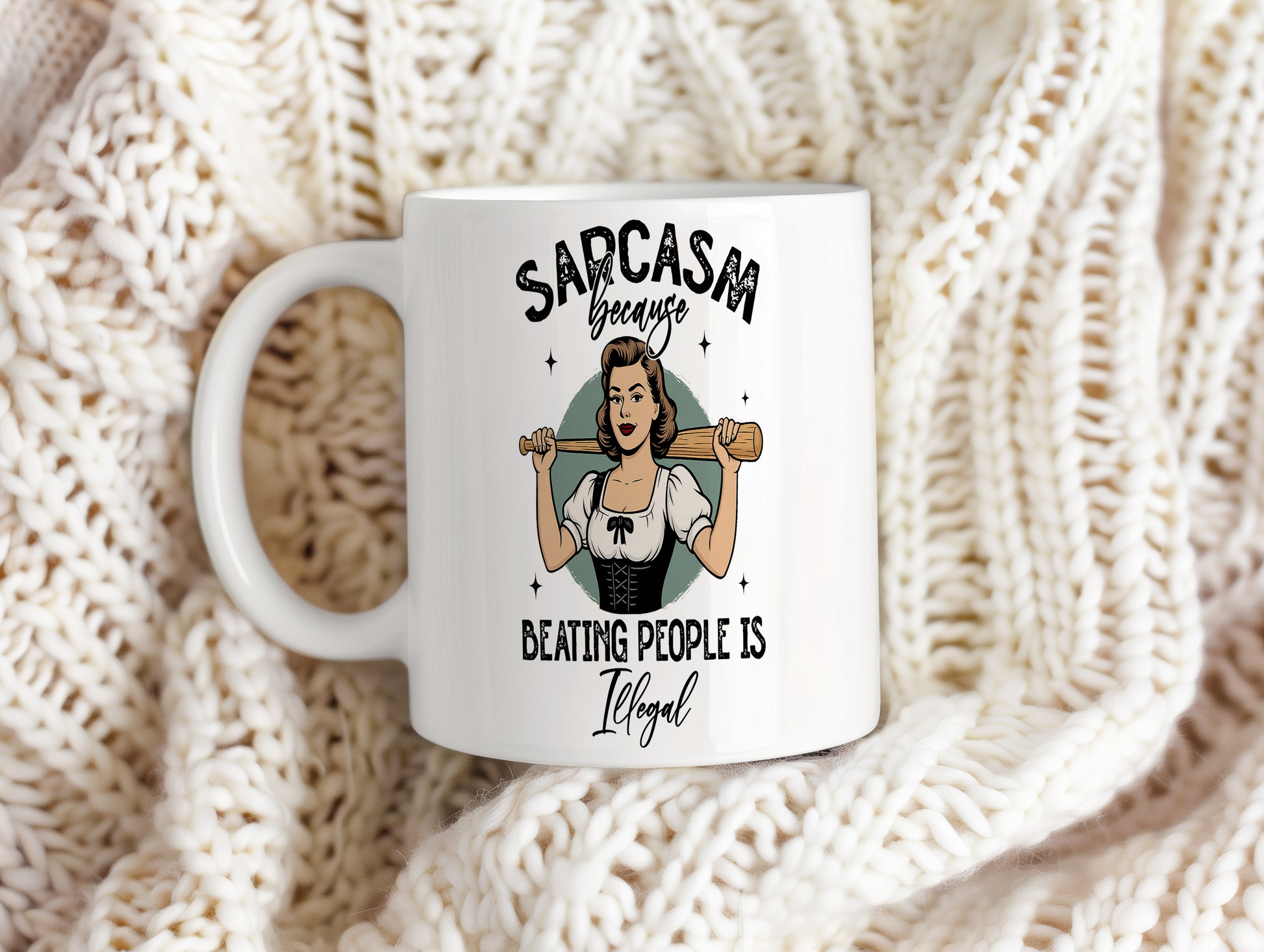 Tento hrnek s vtipným nápisem je ideální pro milovníky sarkasmu. Přináší úsměv na tvář každému, kdo ho uvidí.