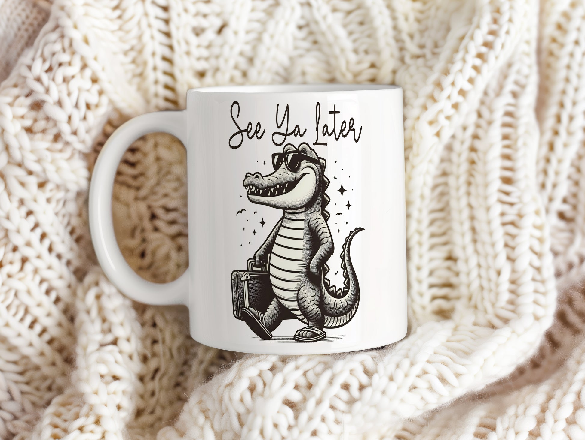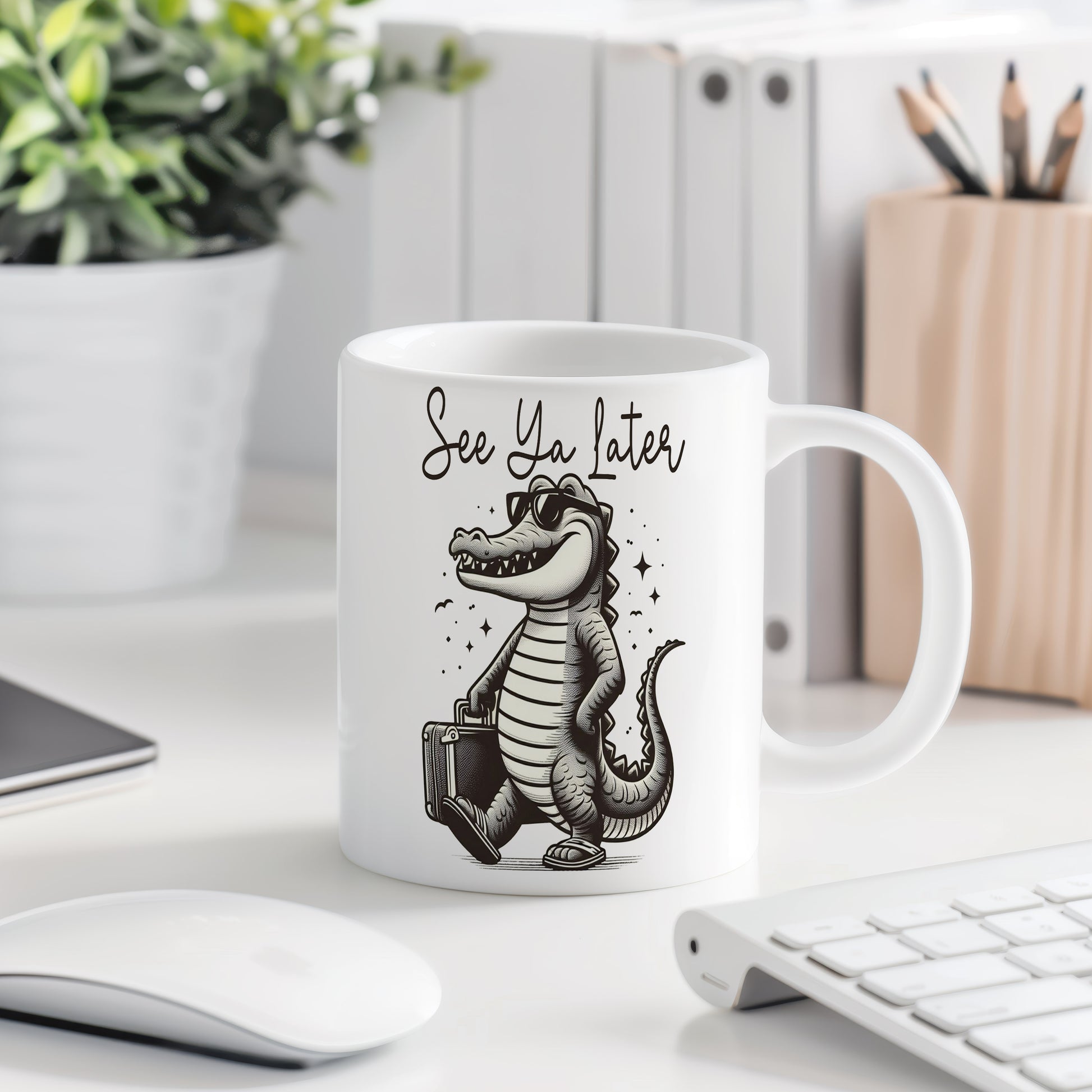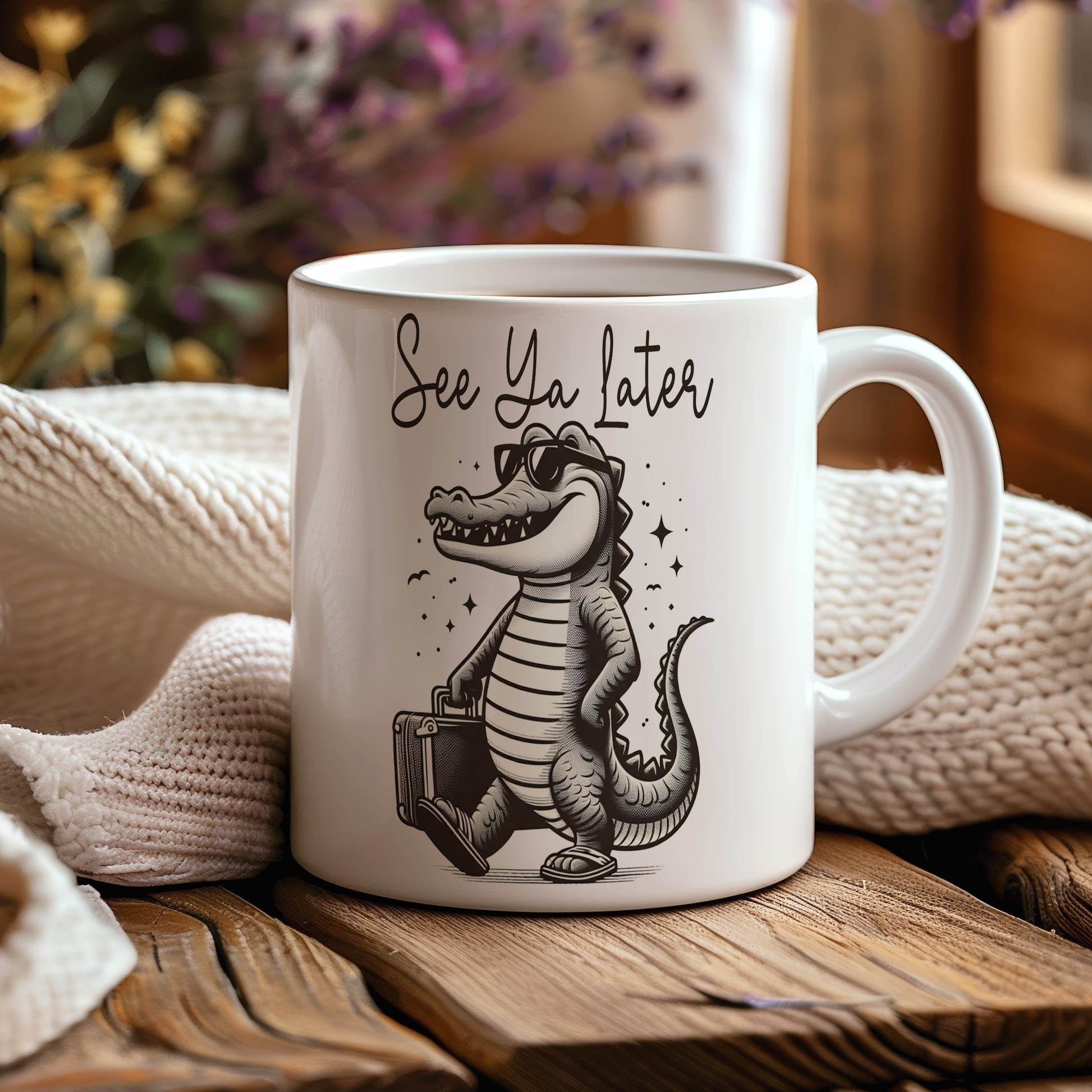Tento hrnek s nápisem 'See Ya Later' a obrázkem krokodýla je ideální pro ty, kteří mají rádi humor. Skvělý doplněk do vaší kuchyně nebo kanceláře.