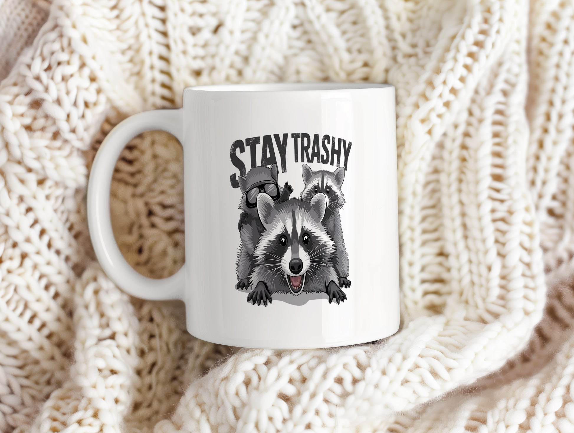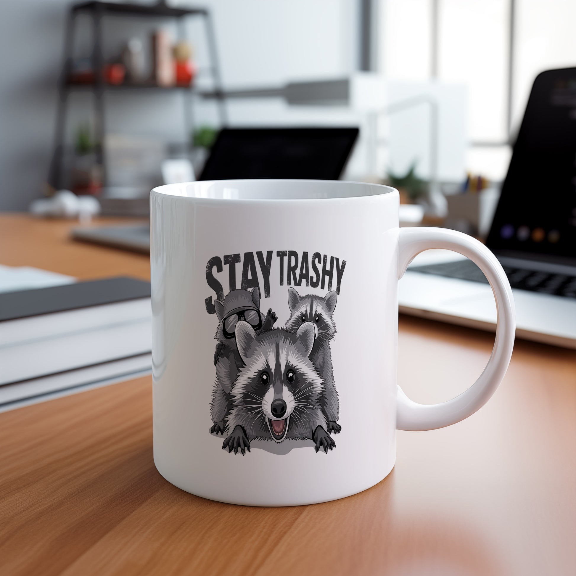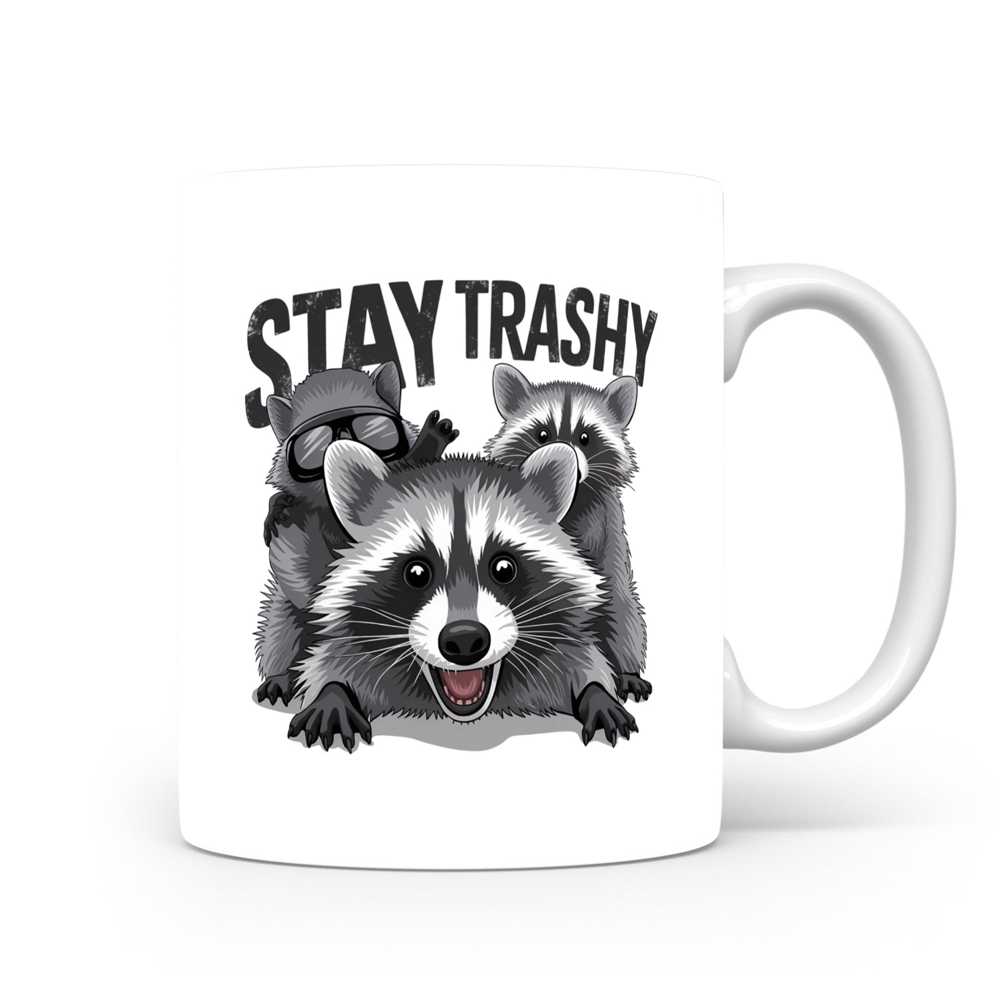 Tento hrnek s nápisem 'STAY TRASHY' a obrázkem mývalů je ideální pro milovníky humoru. Skvělý dárek pro každou příležitost.