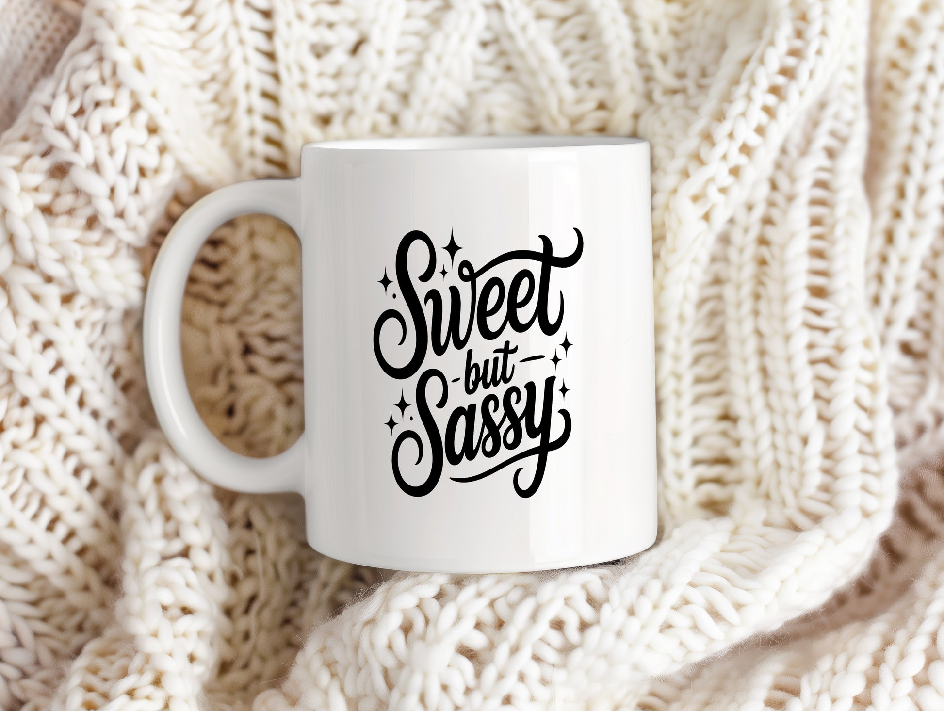 Hrnek s vtipným nápisem – Sweet but Sassy
