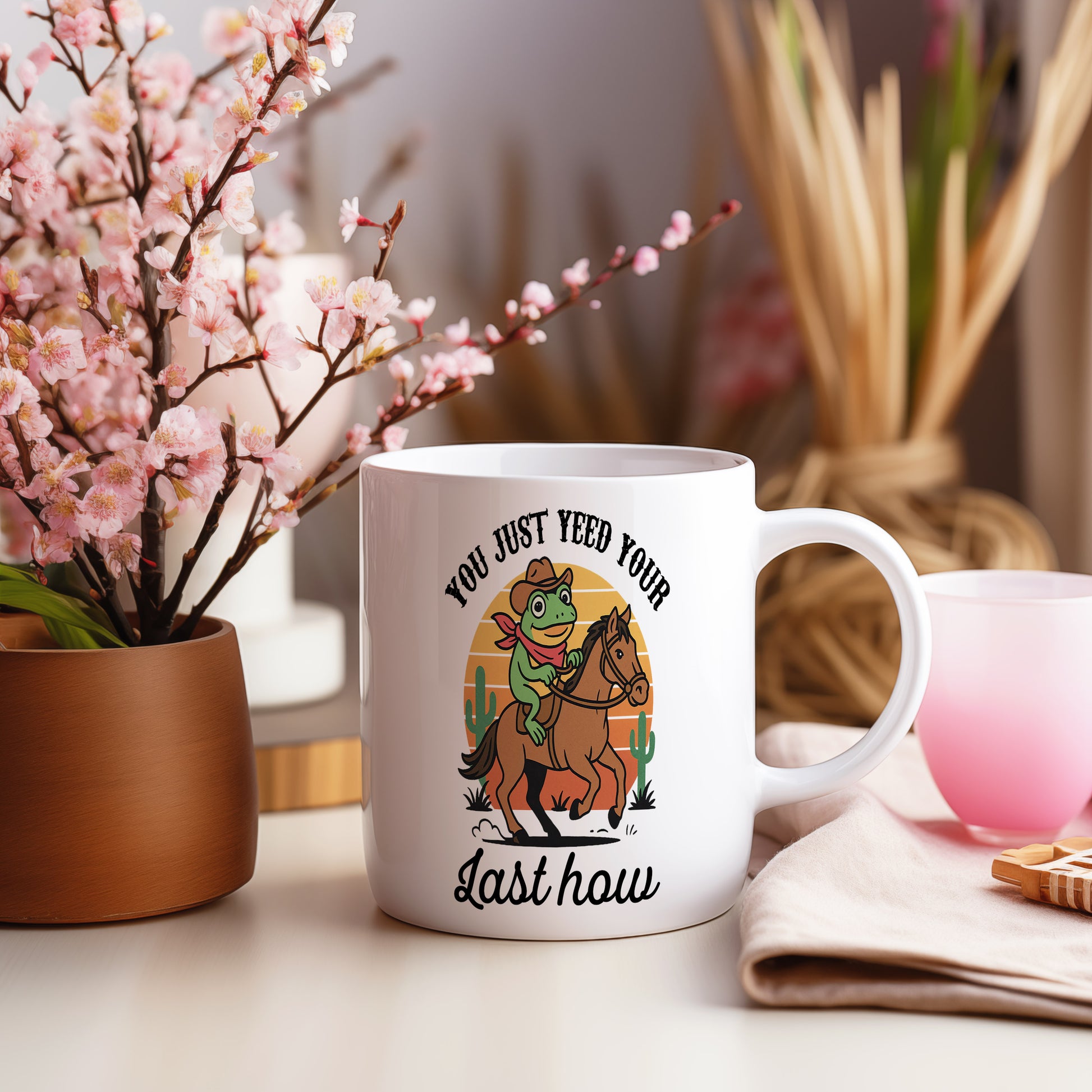 Vtipný hrnek s motivem žabáka na koni a nápisem, který rozesměje každého. Ideální dárek pro milovníky humoru.