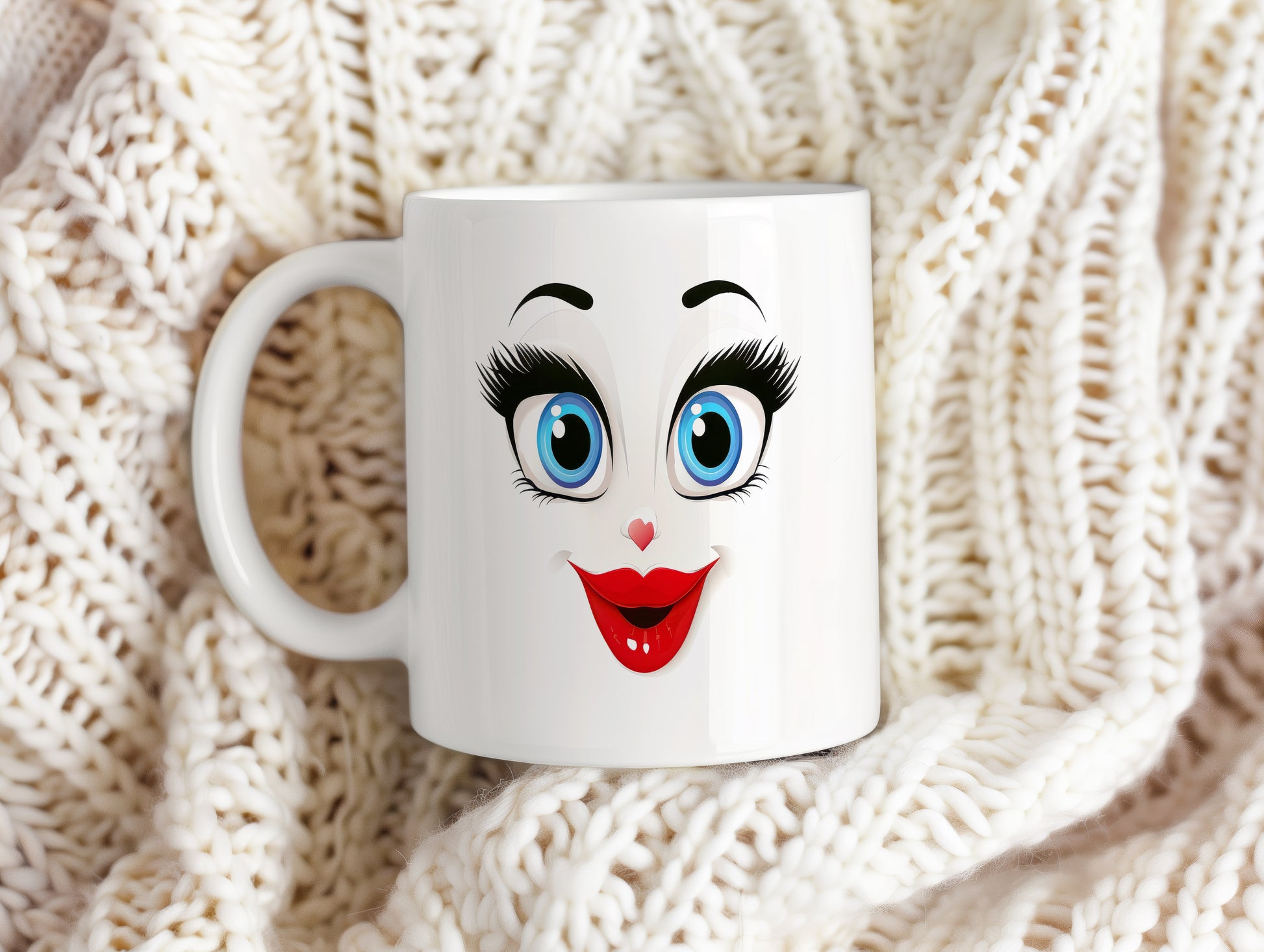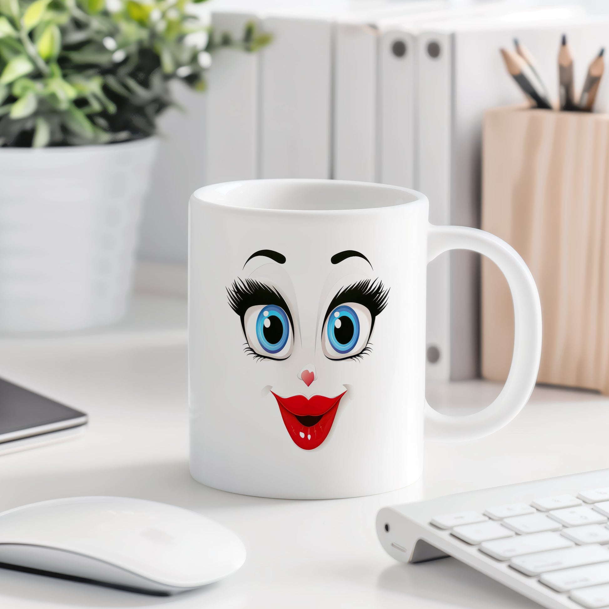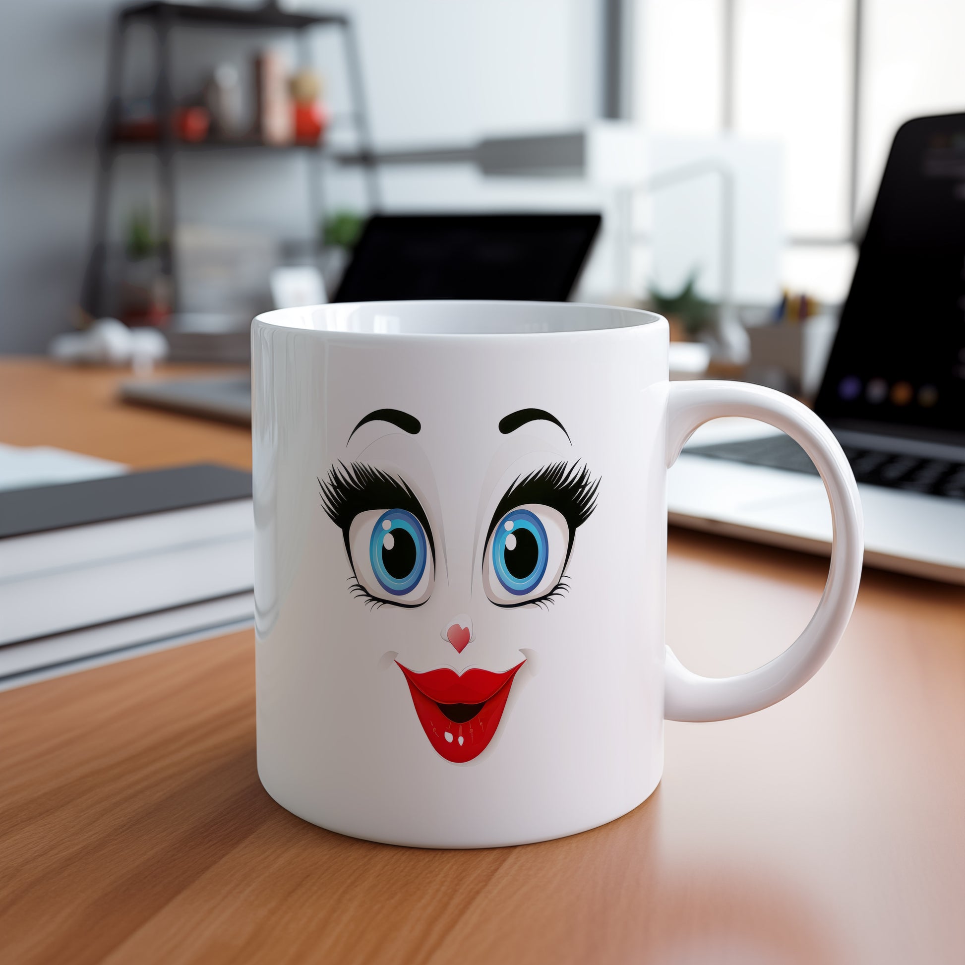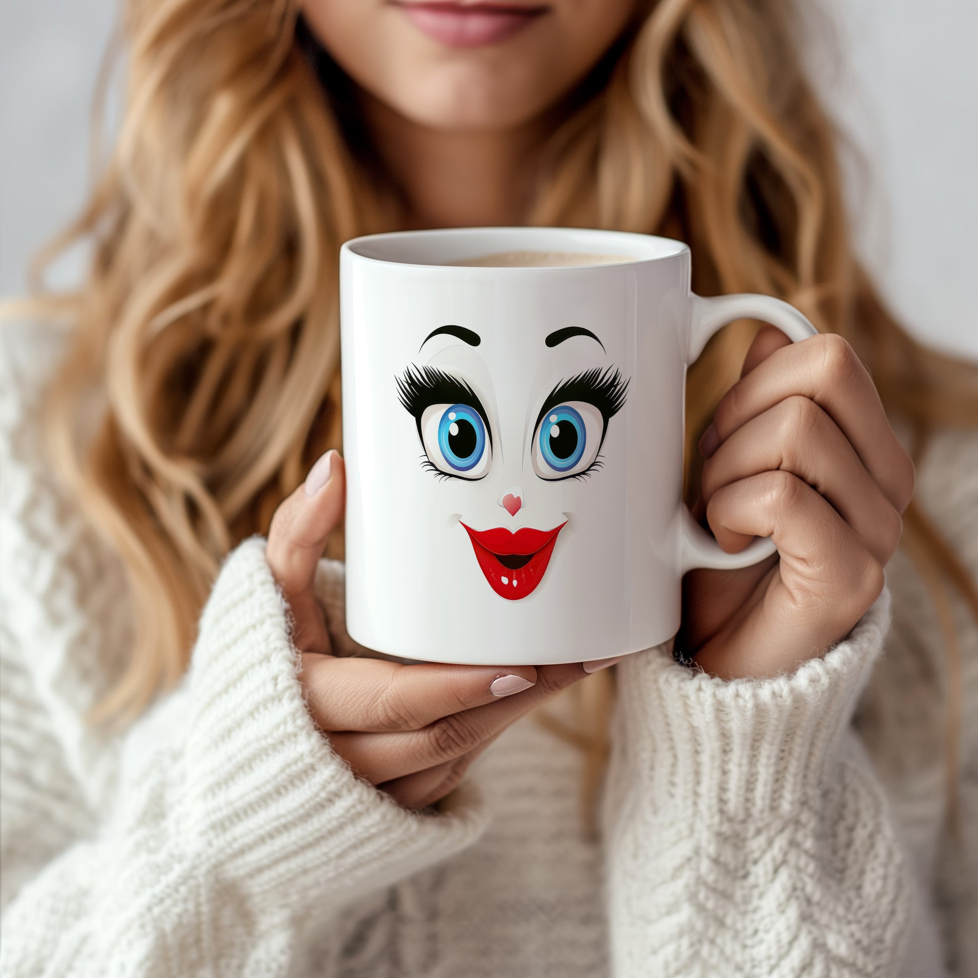 Hrnek s vtipným obličejem – líbezný úsměv. Skvělý parťák pro ranní kávu i odpolední čaj.