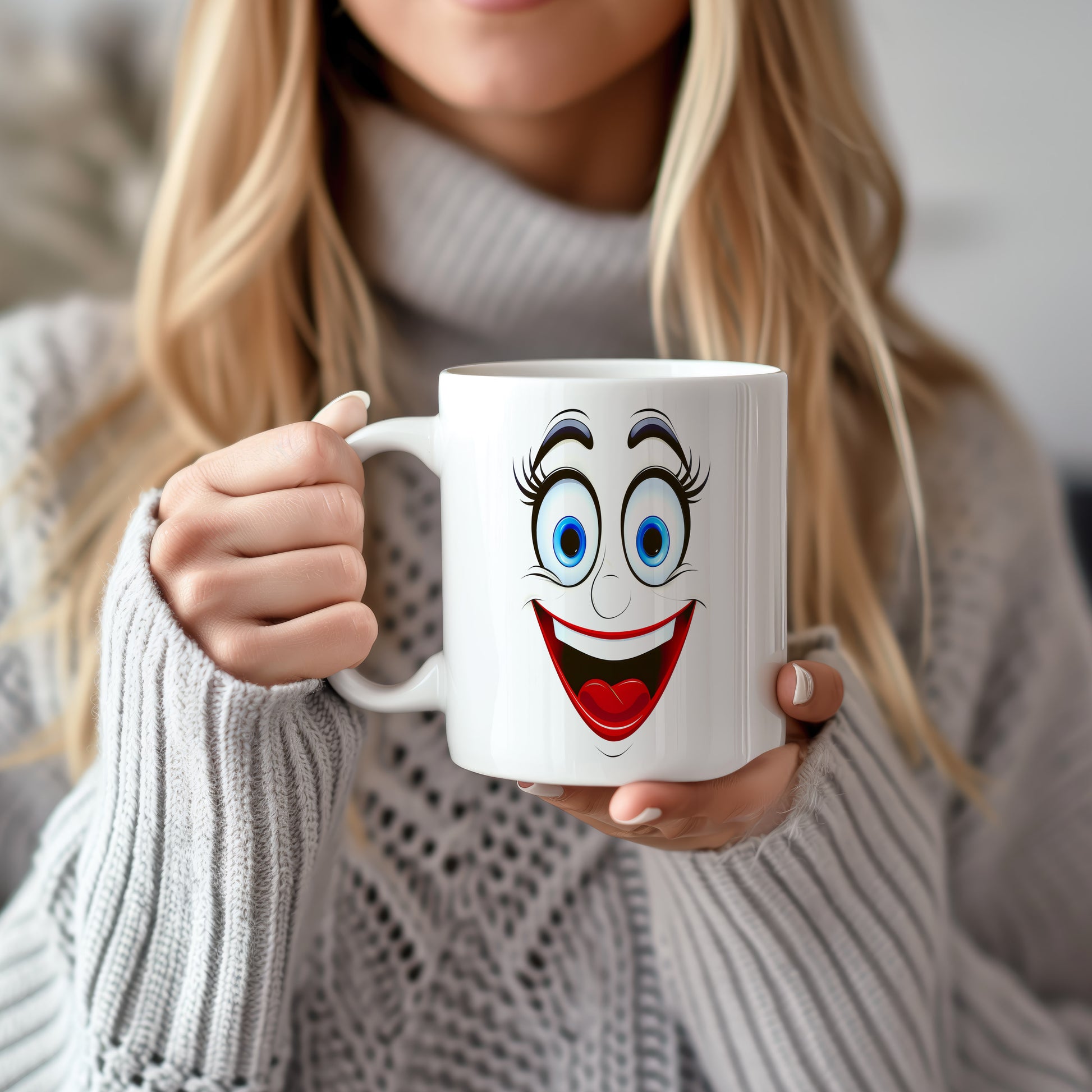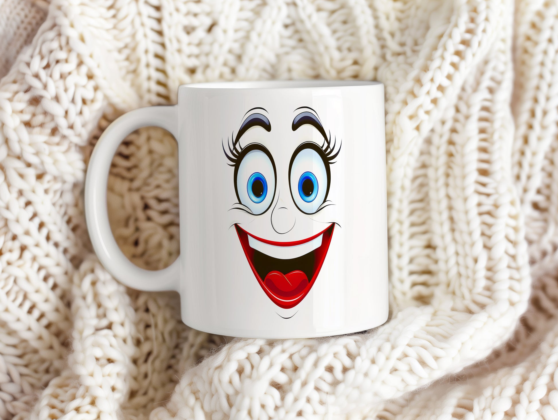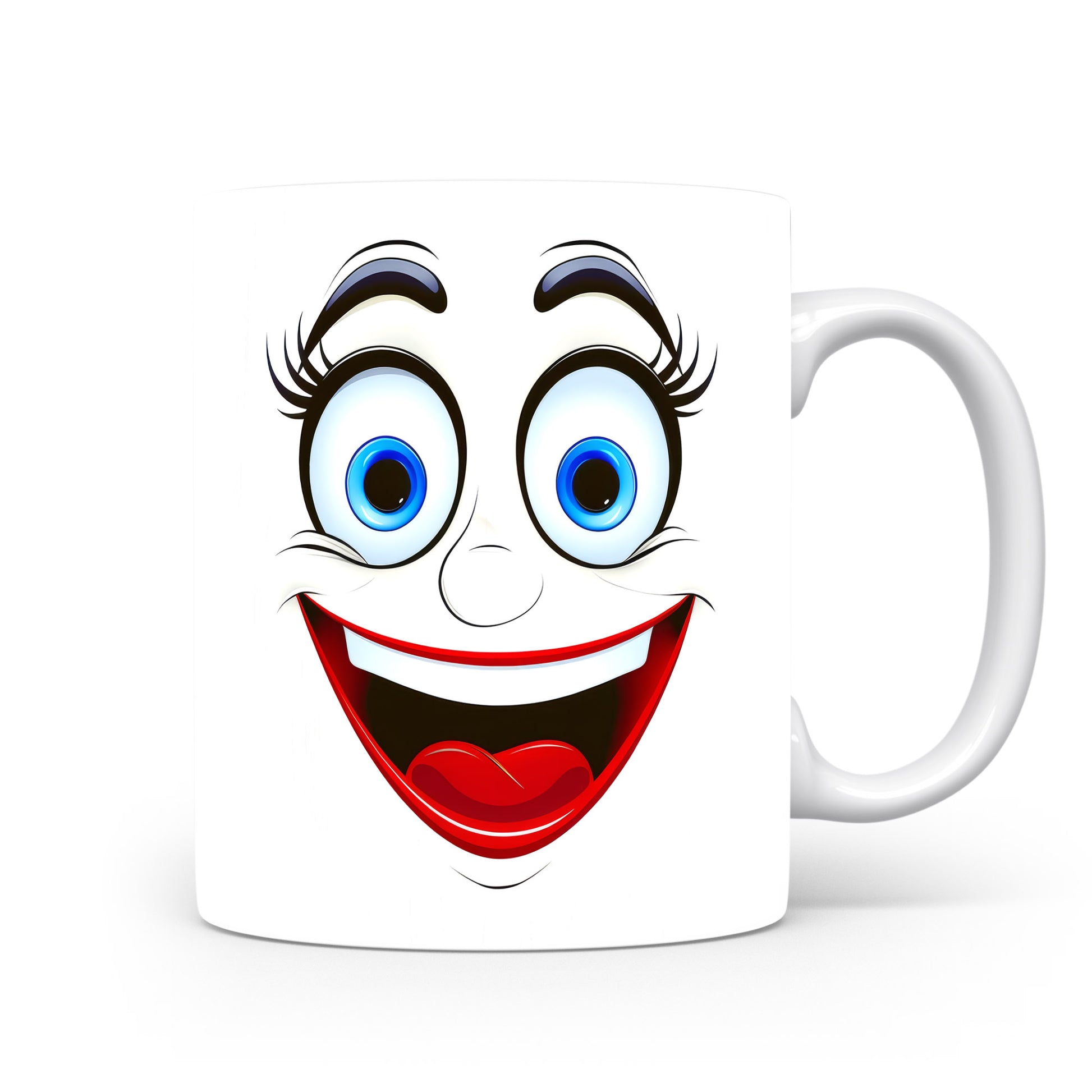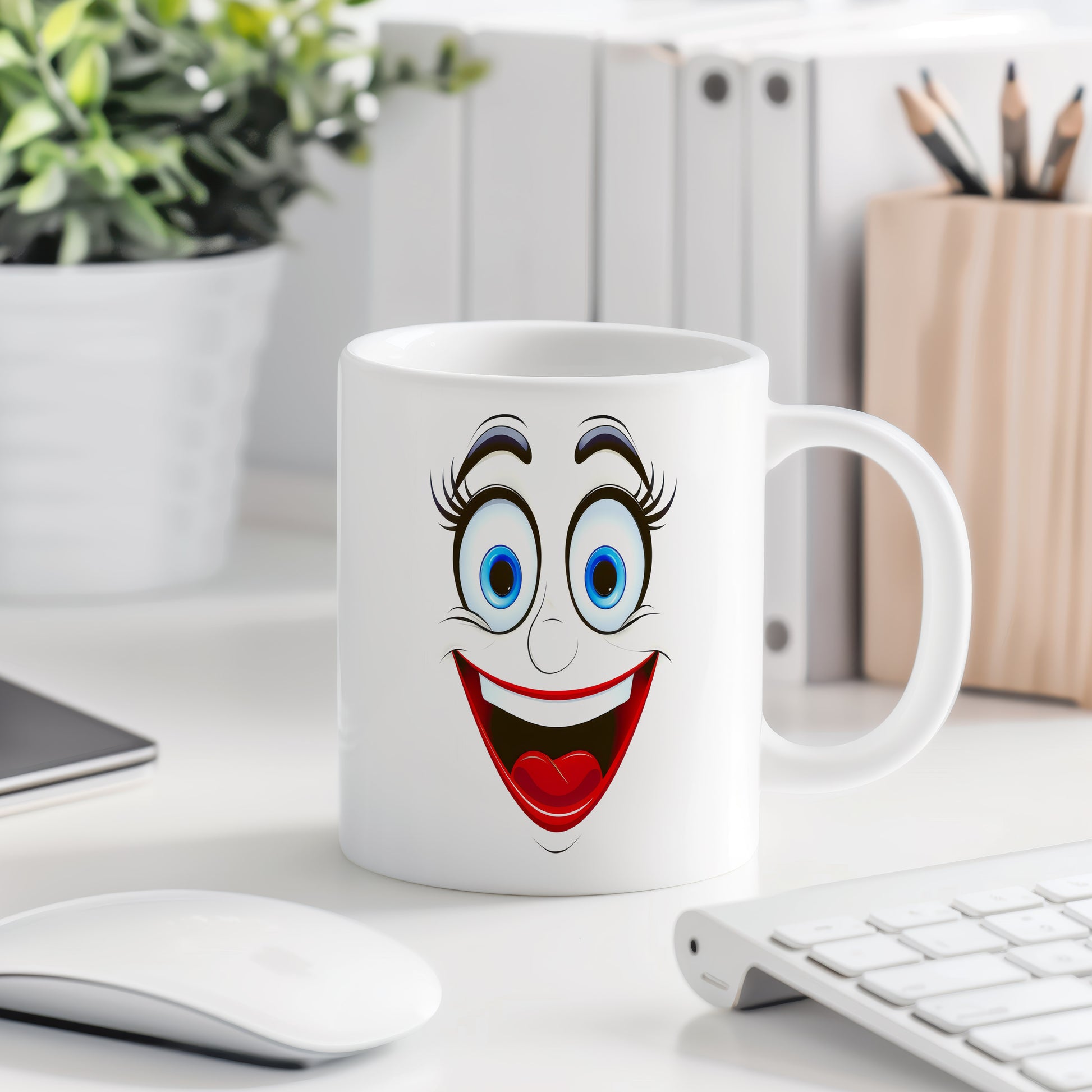 Hrnek s vtipným obličejem – nadšený smích. Skvělý parťák pro ranní kávu i odpolední čaj.