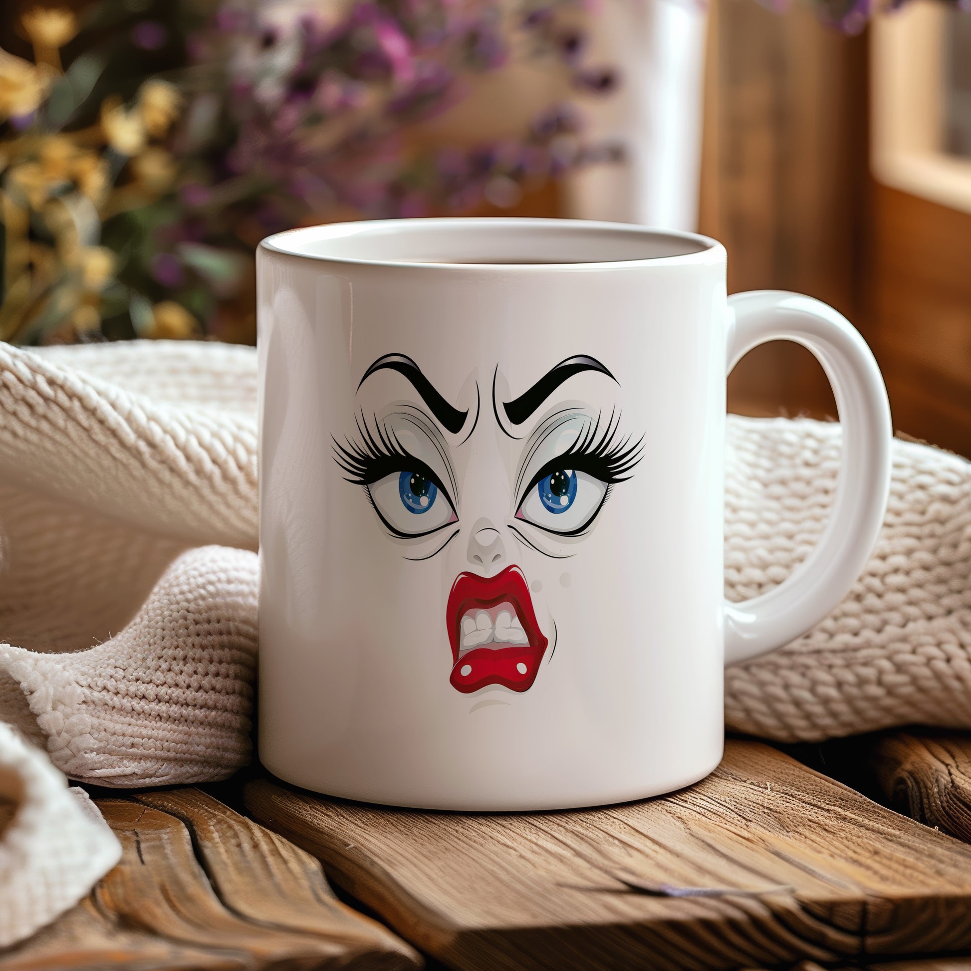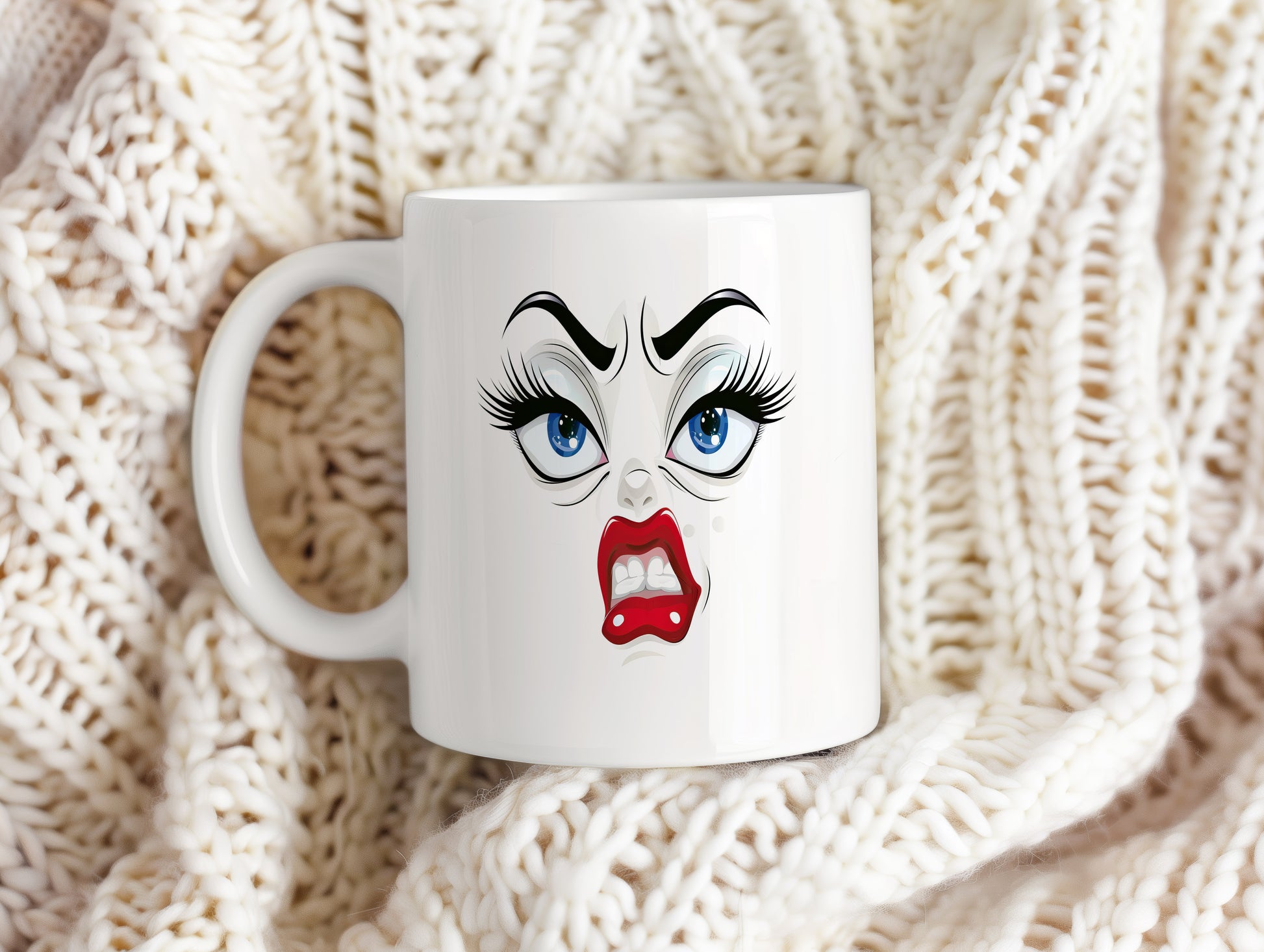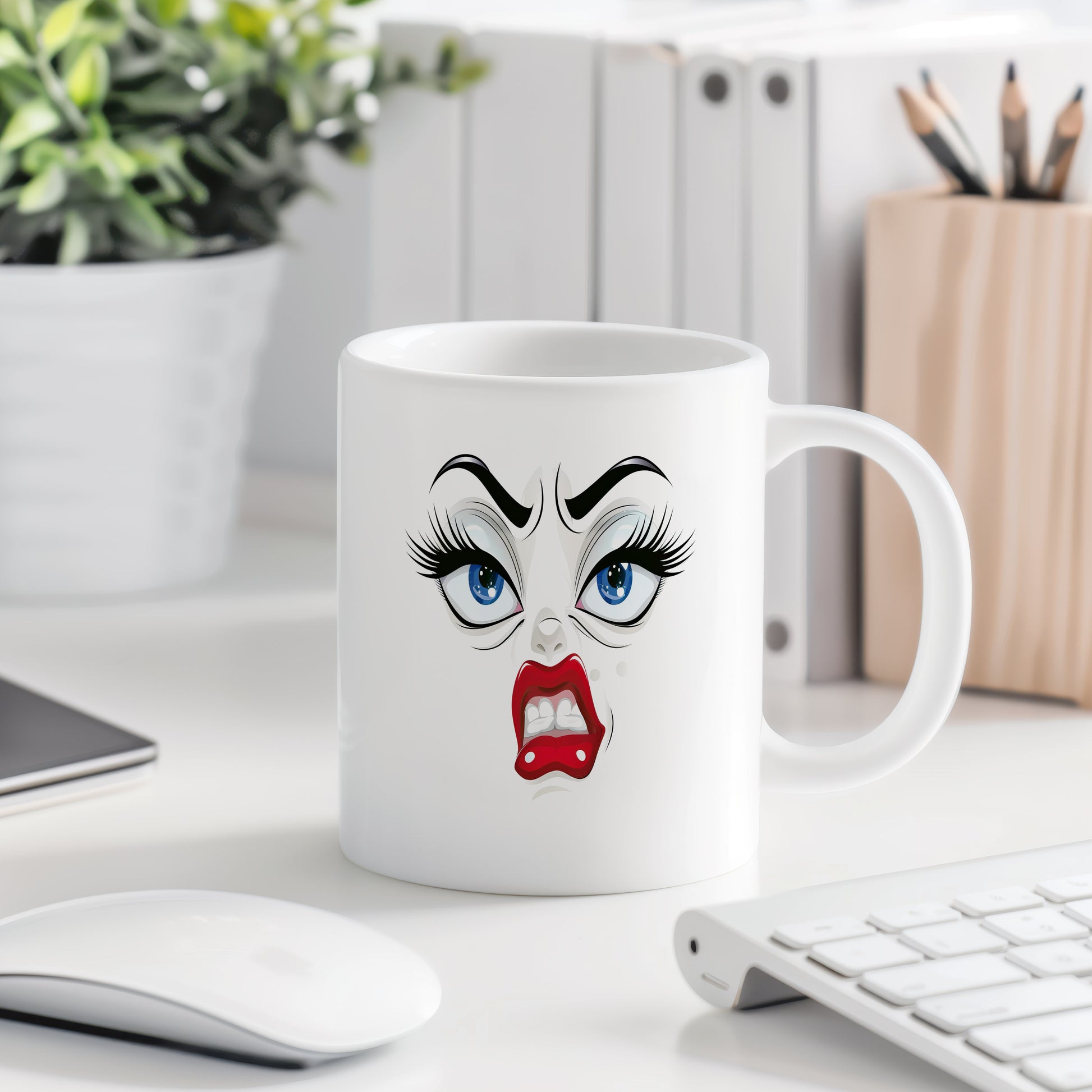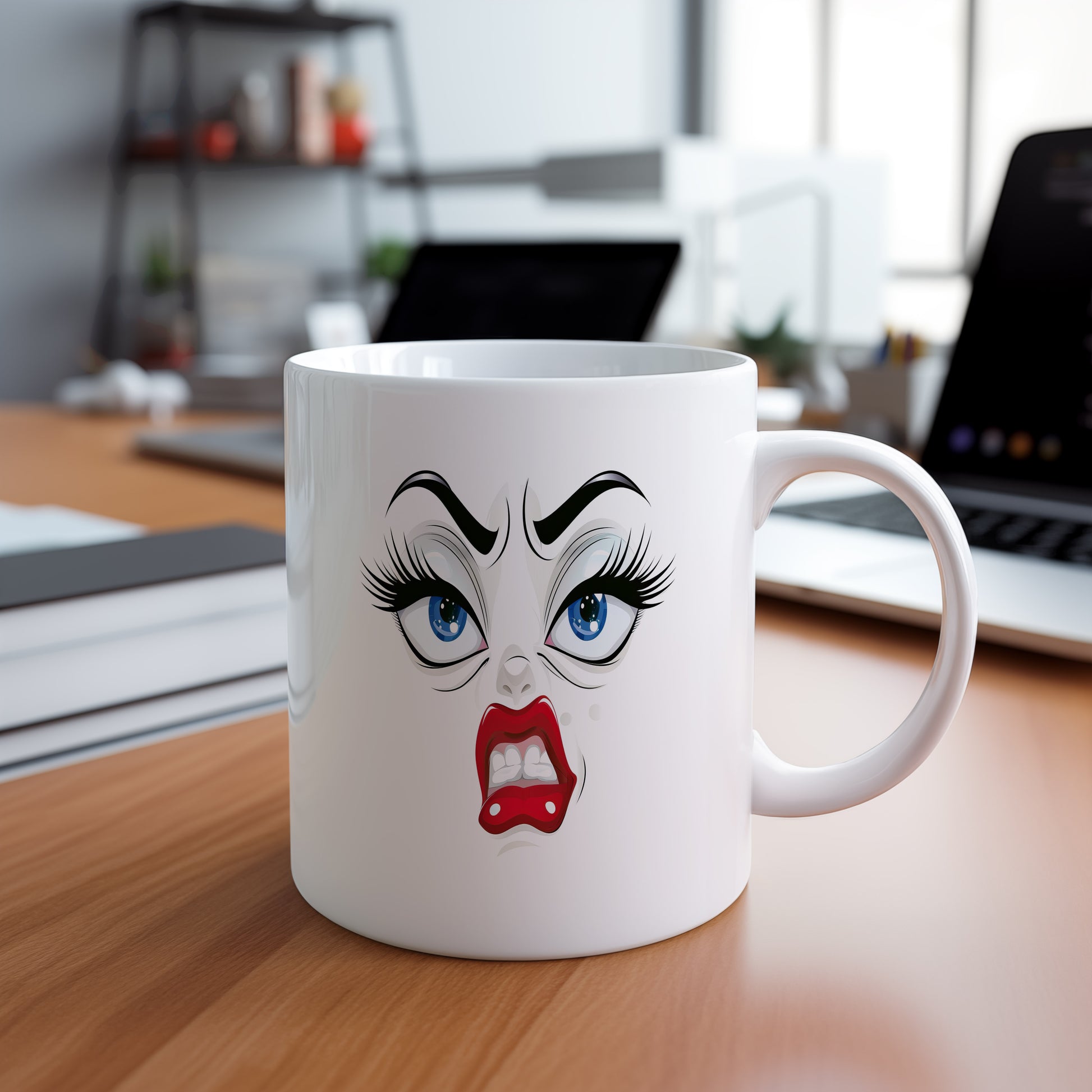 Hrnek s vtipným obličejem – naštvané se slzou. Skvělý parťák pro ranní kávu i odpolední čaj.