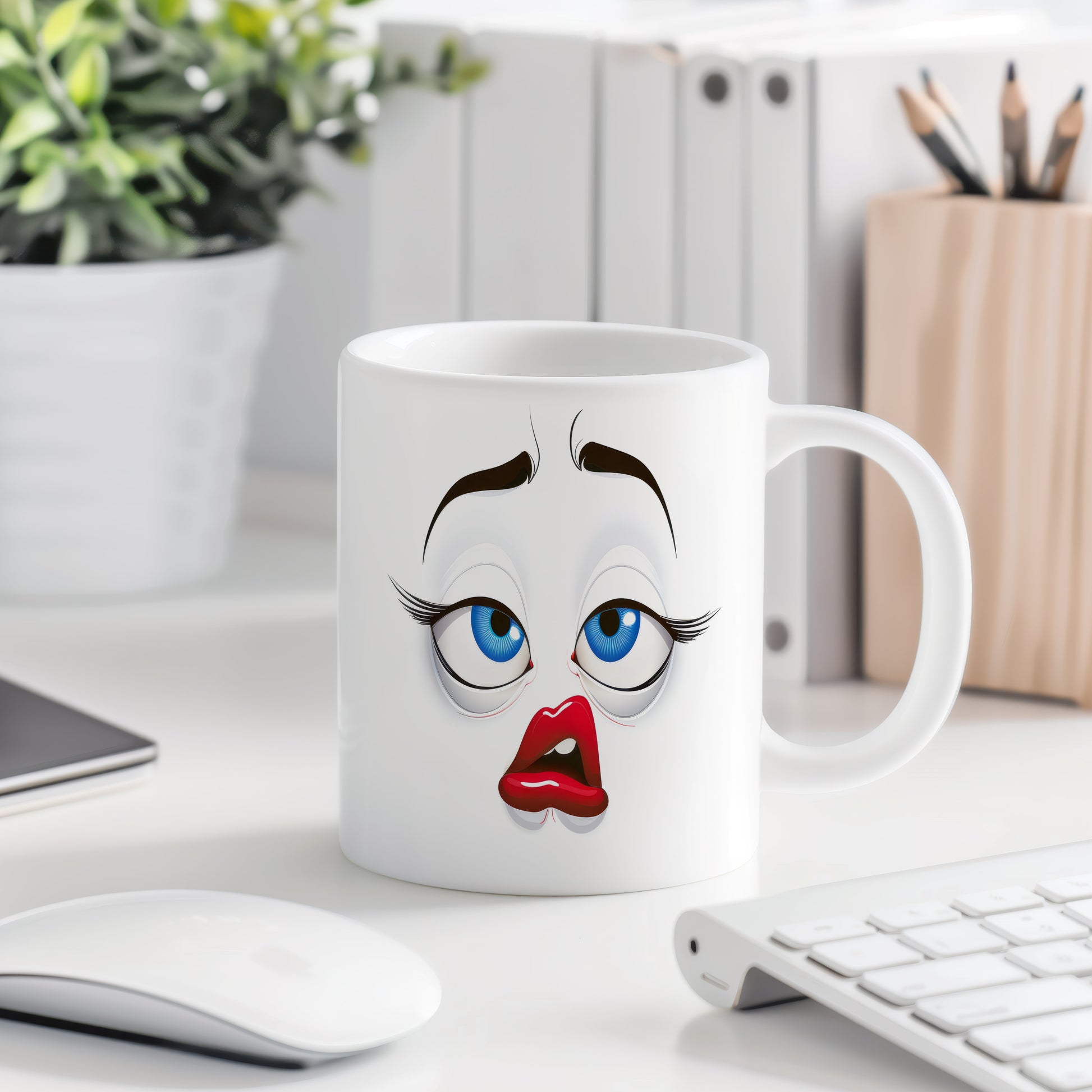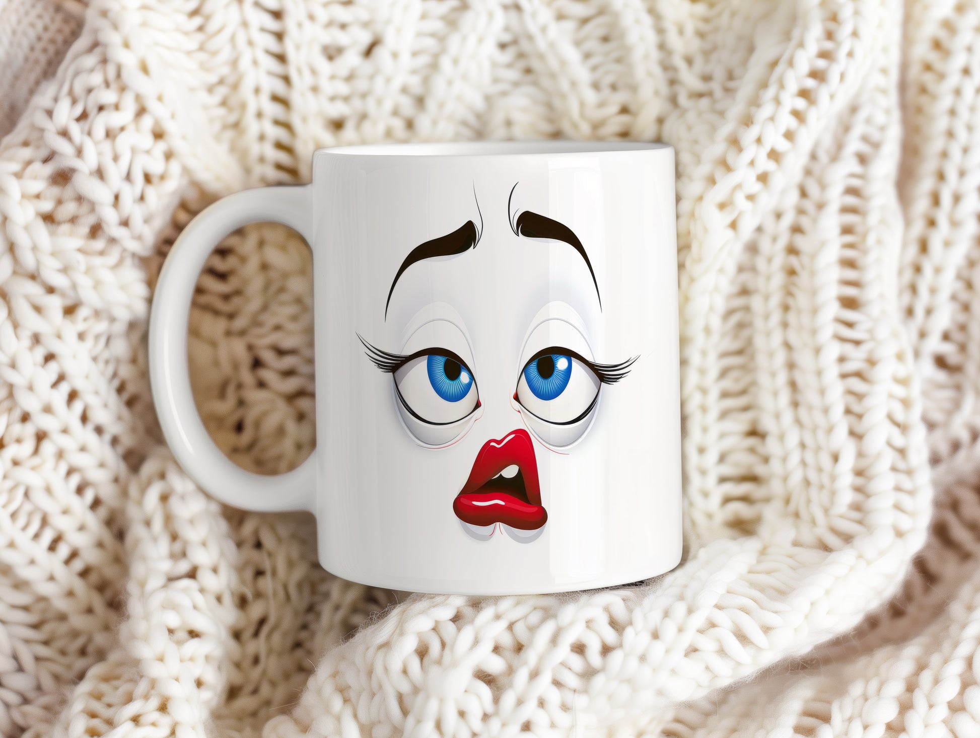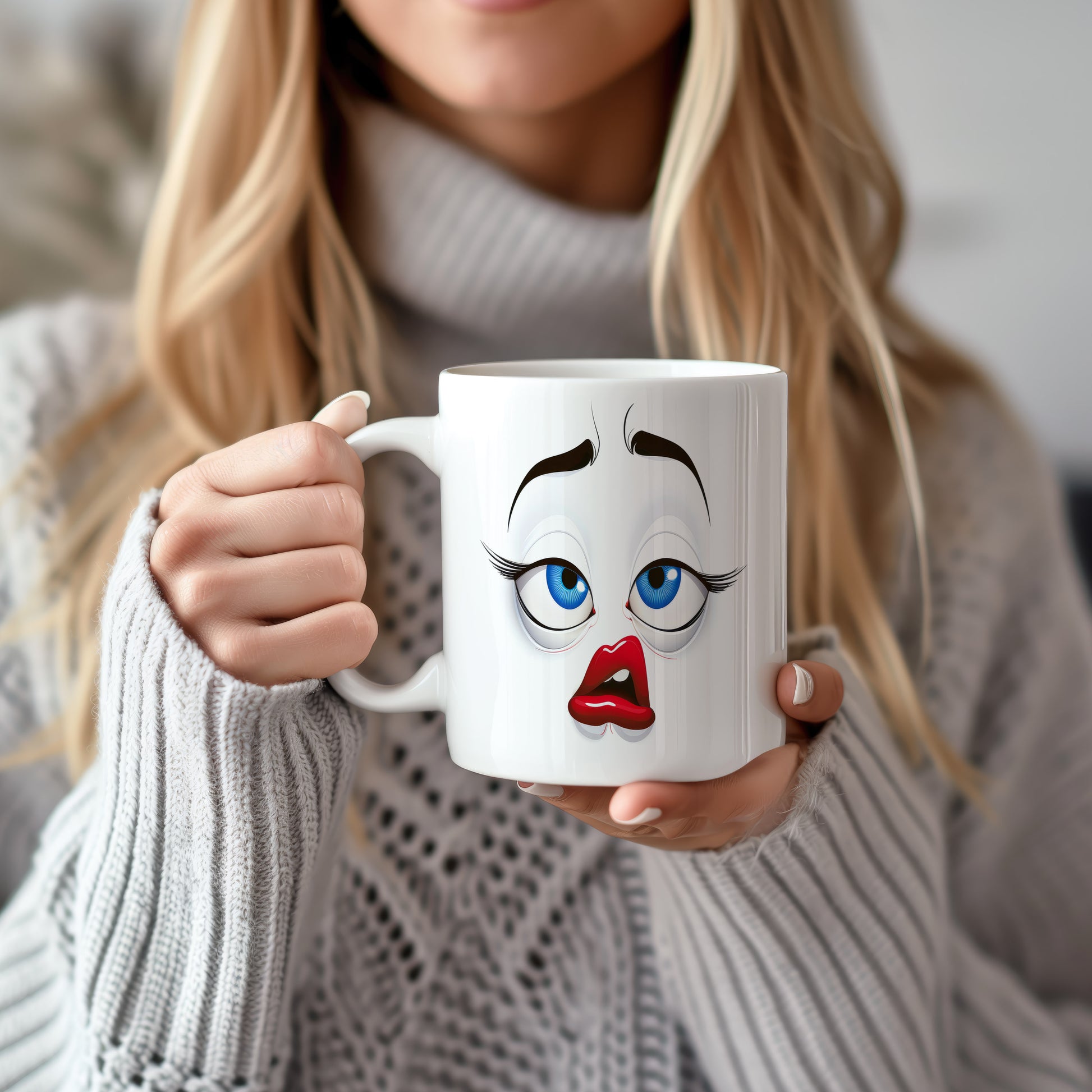 Hrnek s vtipným obličejem – ospalé našpulení. Skvělý parťák pro ranní kávu i odpolední čaj.