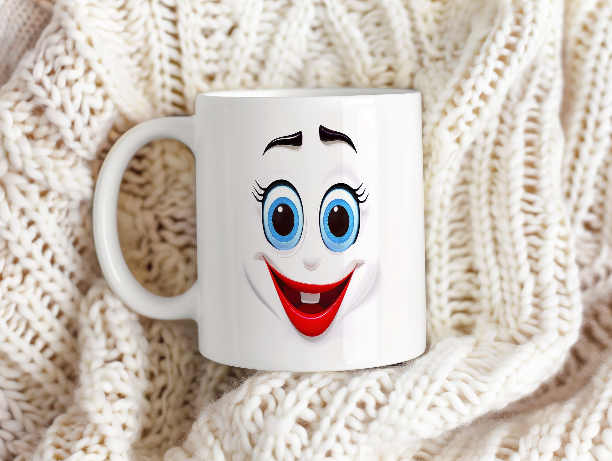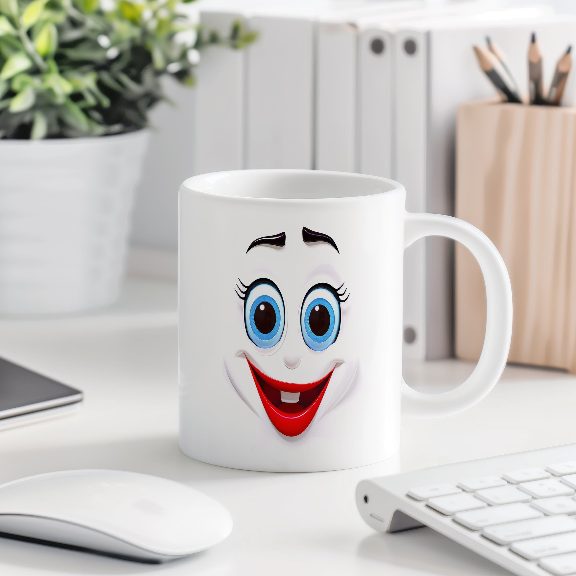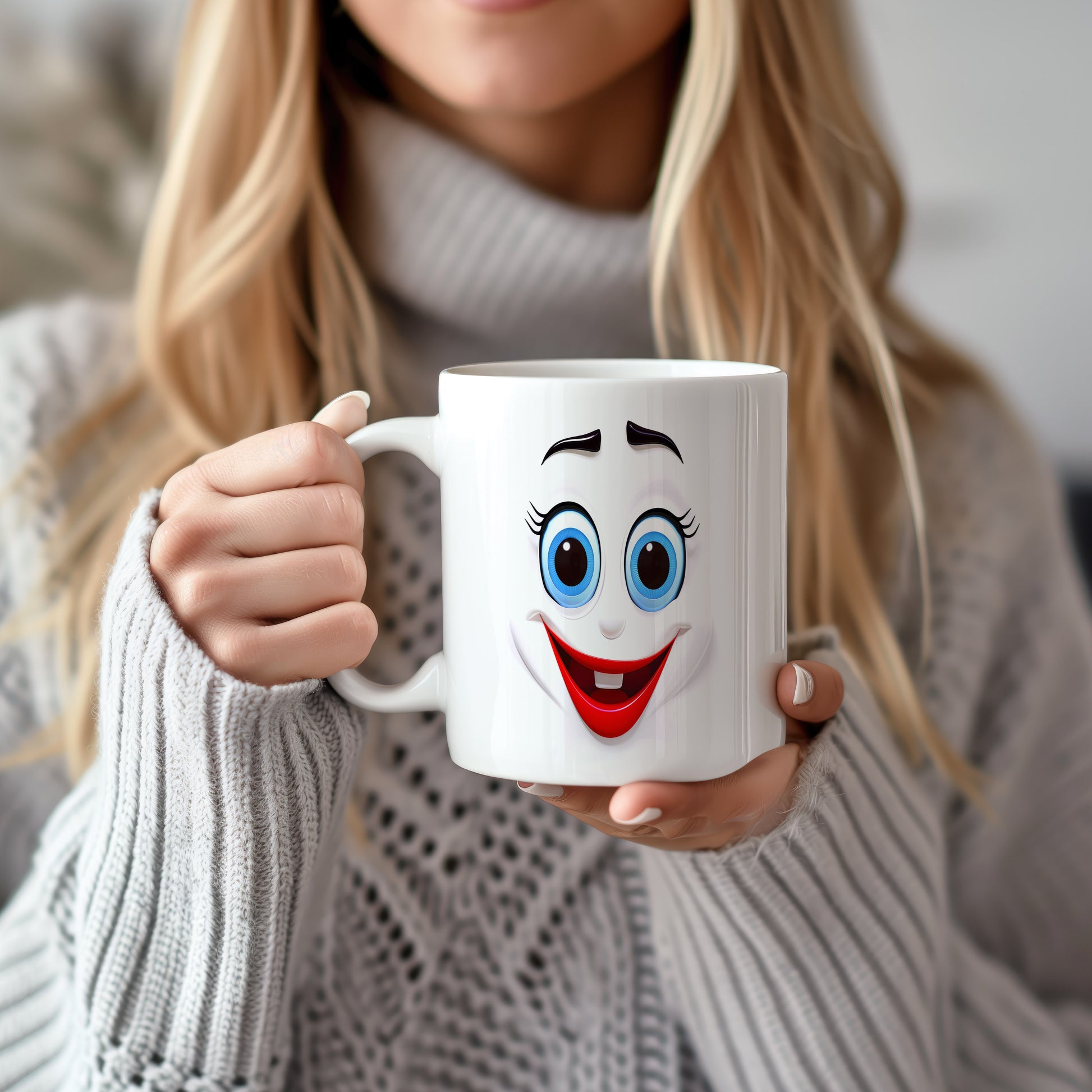 Hrnek s vtipným obličejem – ostýchavý úsměv. Skvělý parťák pro ranní kávu i odpolední čaj.