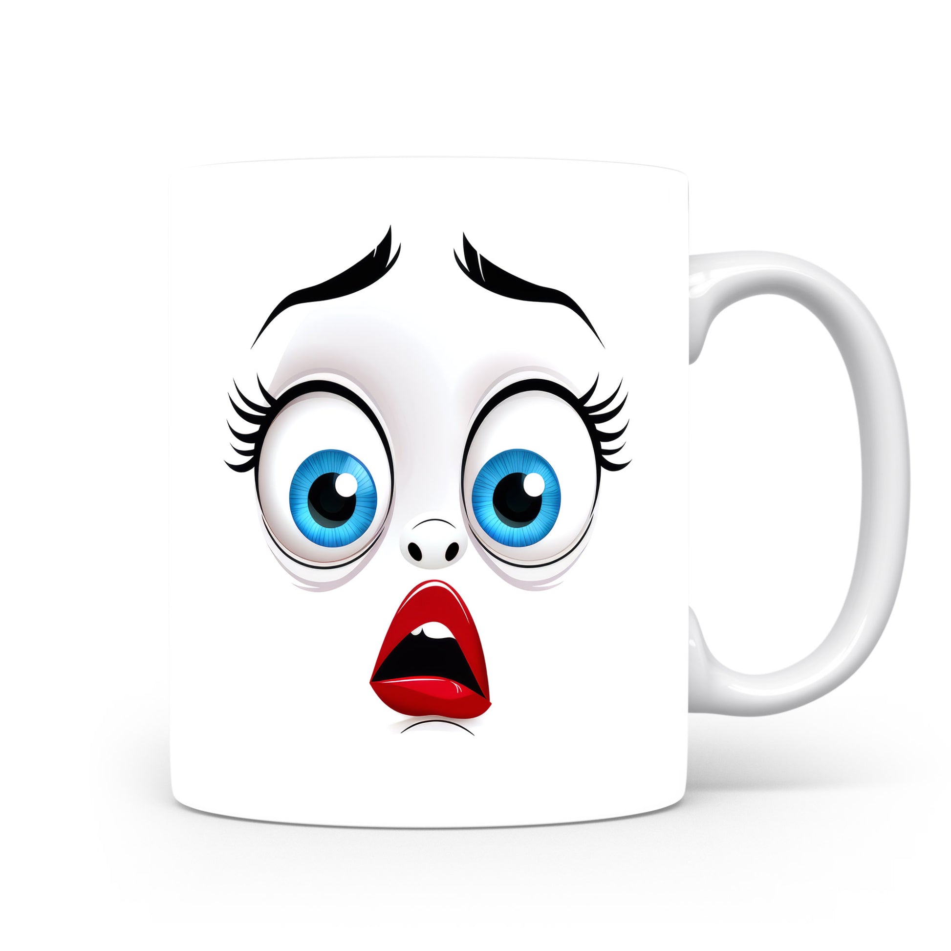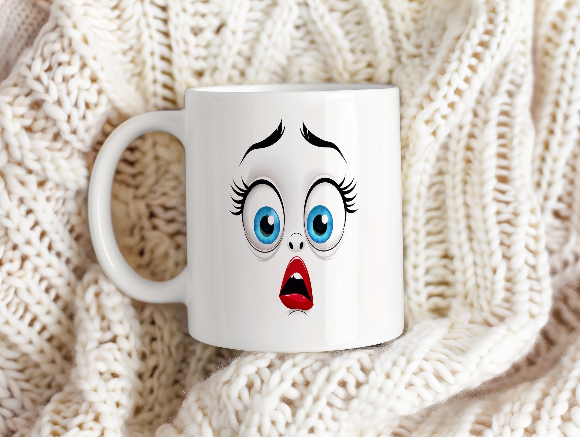 Hrnek s vtipným obličejem – polekané „ach“. Skvělý parťák pro ranní kávu i odpolední čaj.