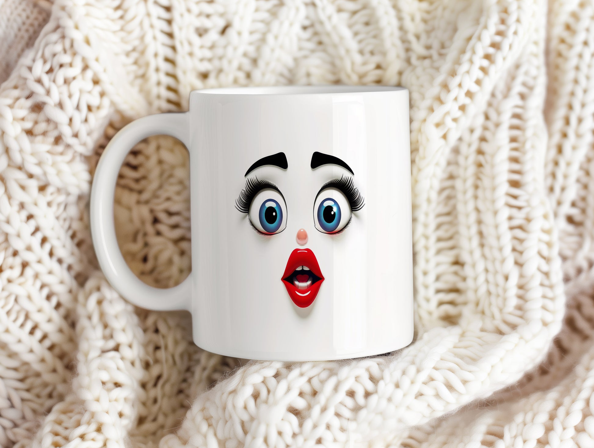 Hrnek s vtipným obličejem – překvapené „jé“. Skvělý parťák pro ranní kávu i odpolední čaj.
