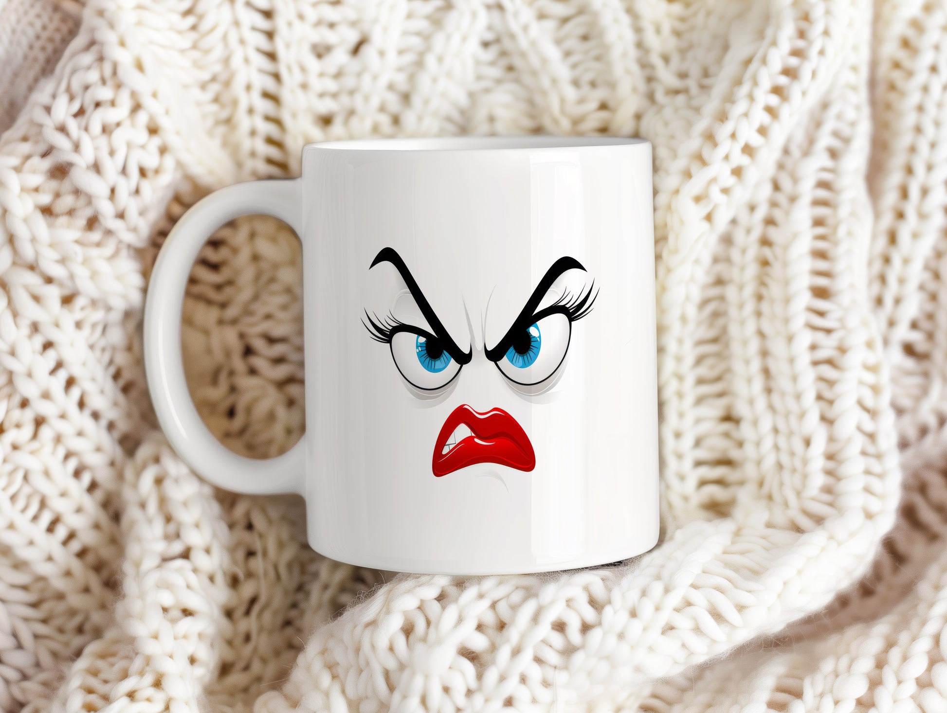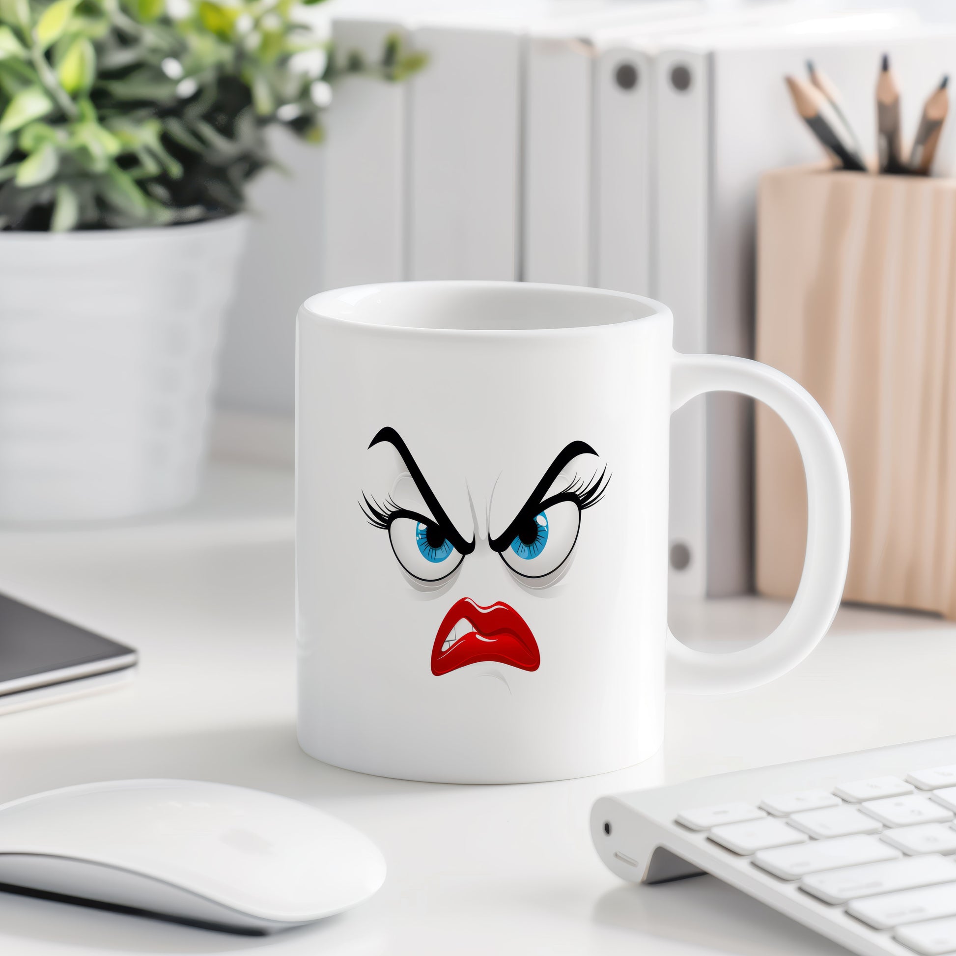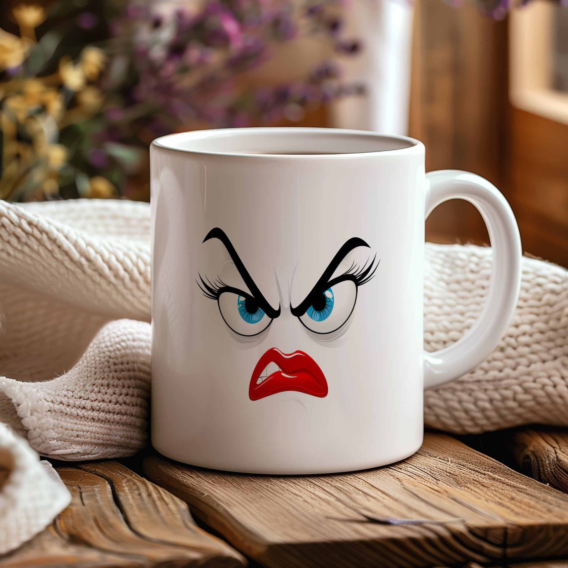 Hrnek s vtipným obličejem – rozhořčený pohled