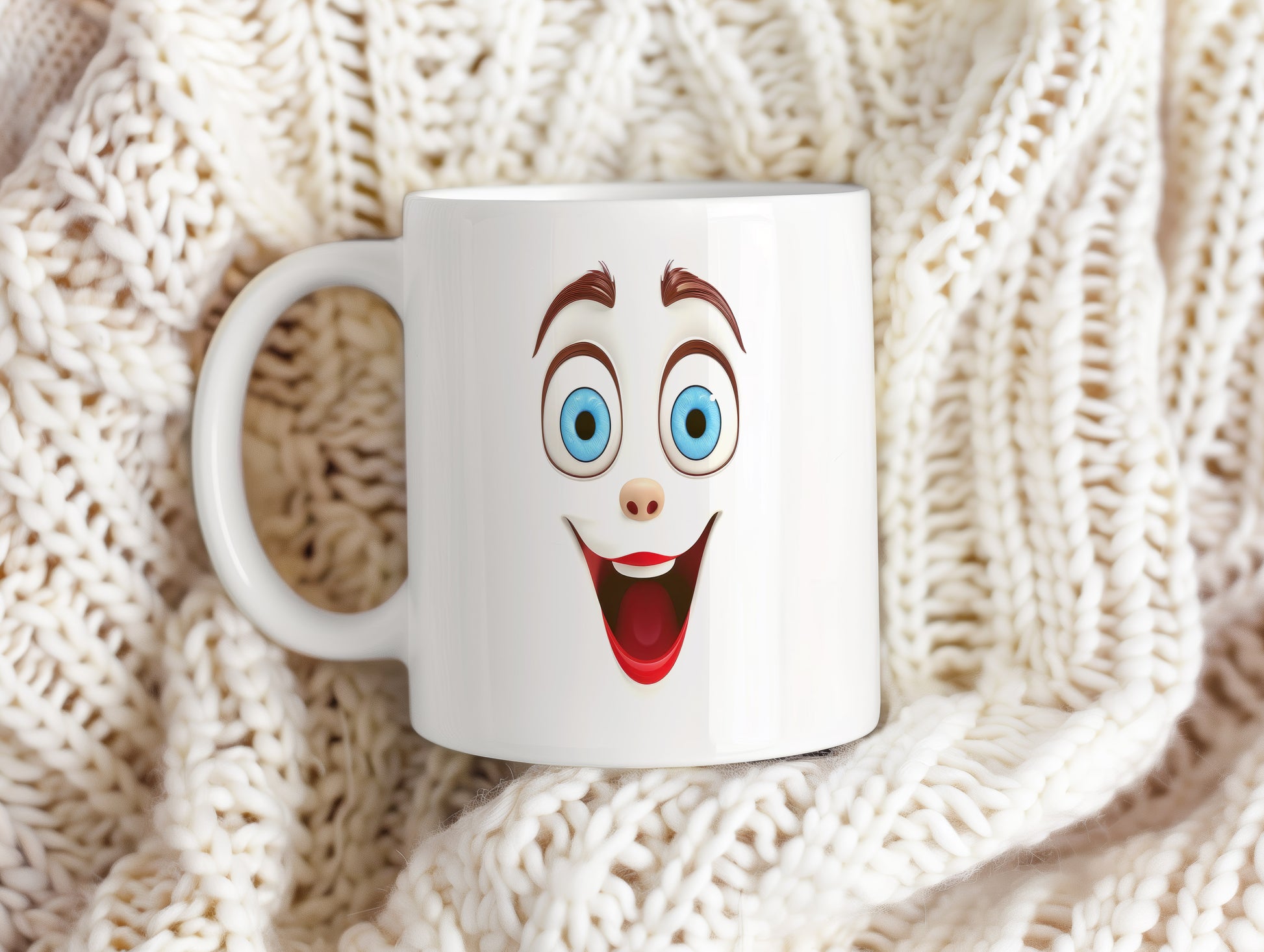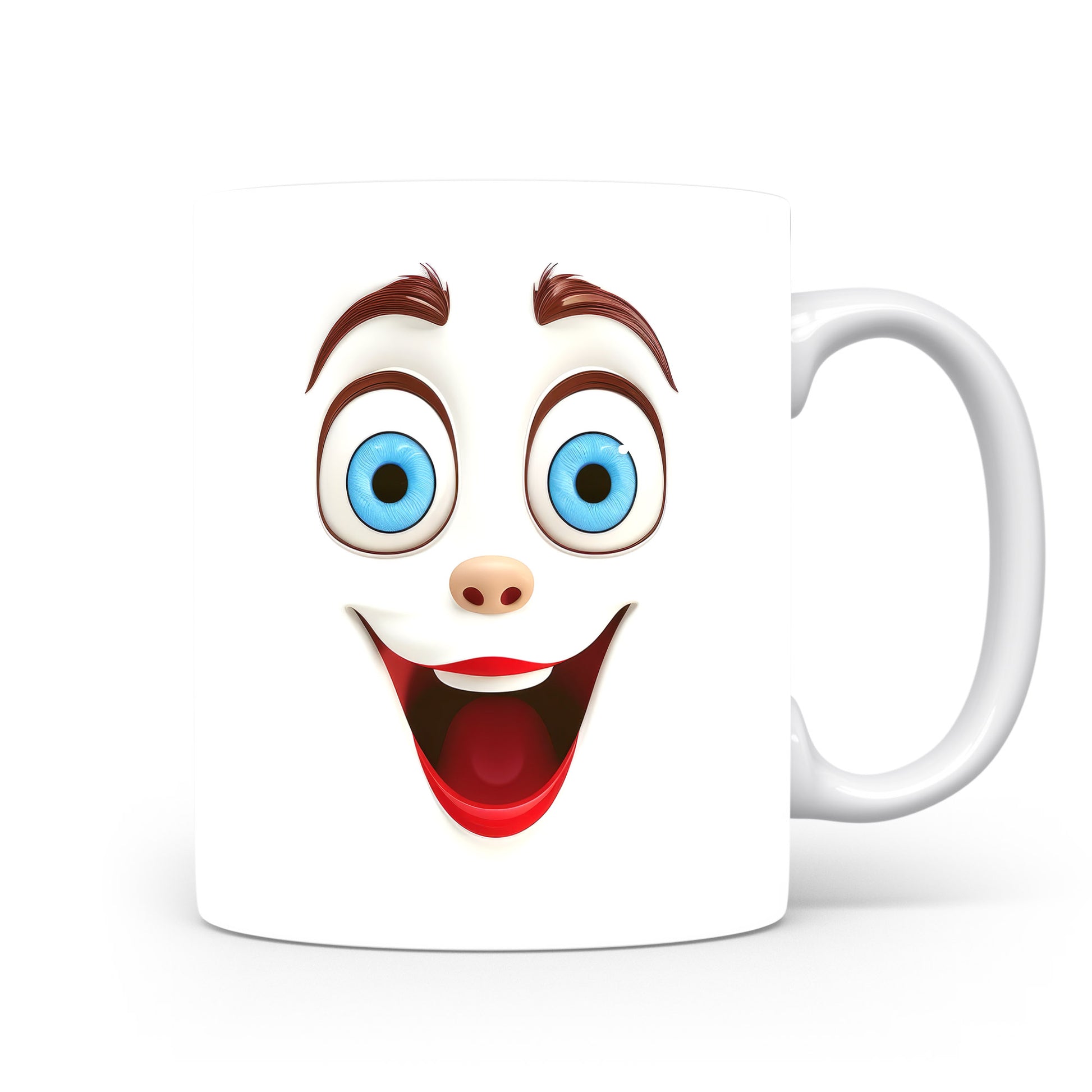 Hrnek s vtipným obličejem – rozjařený smích. Skvělý parťák pro ranní kávu i odpolední čaj.