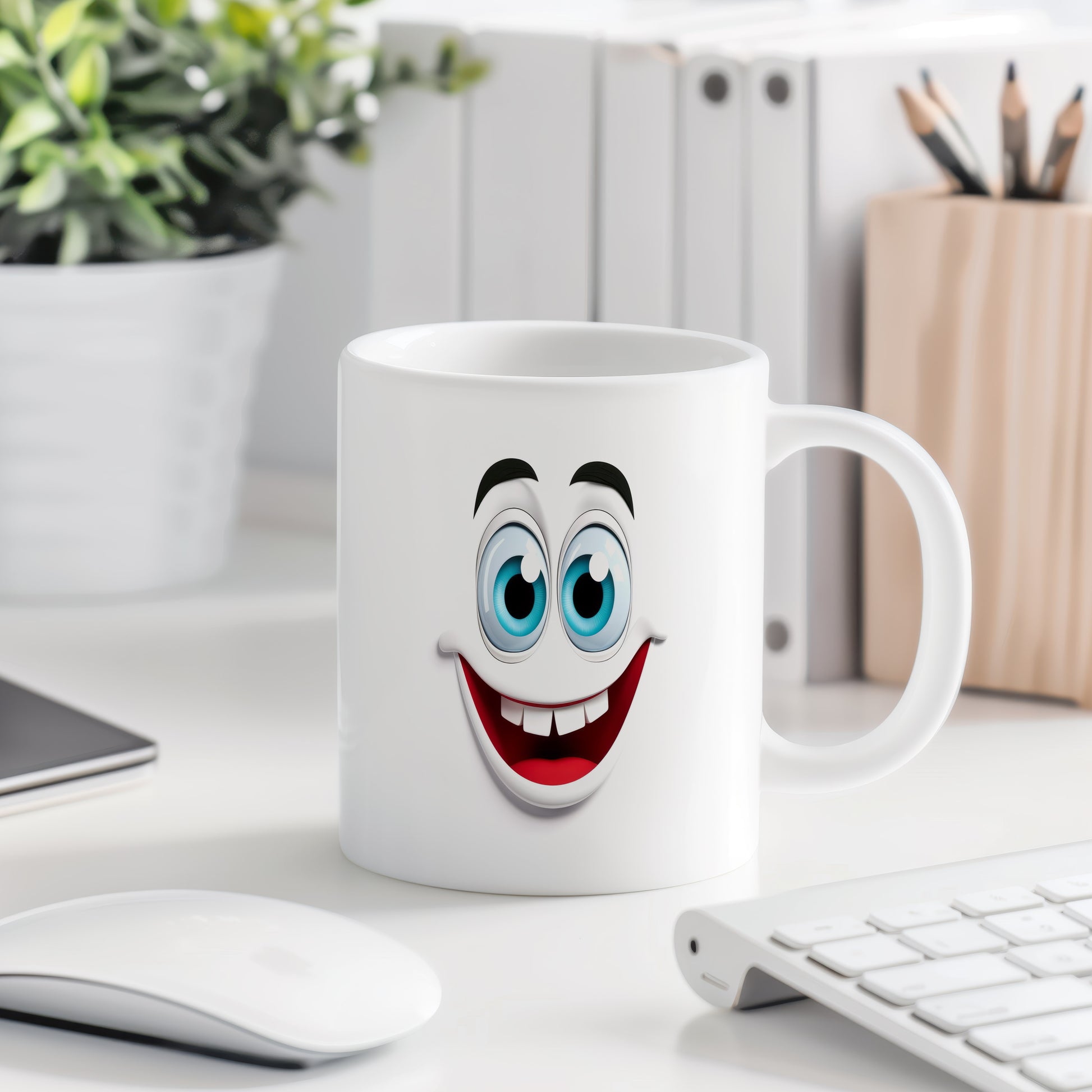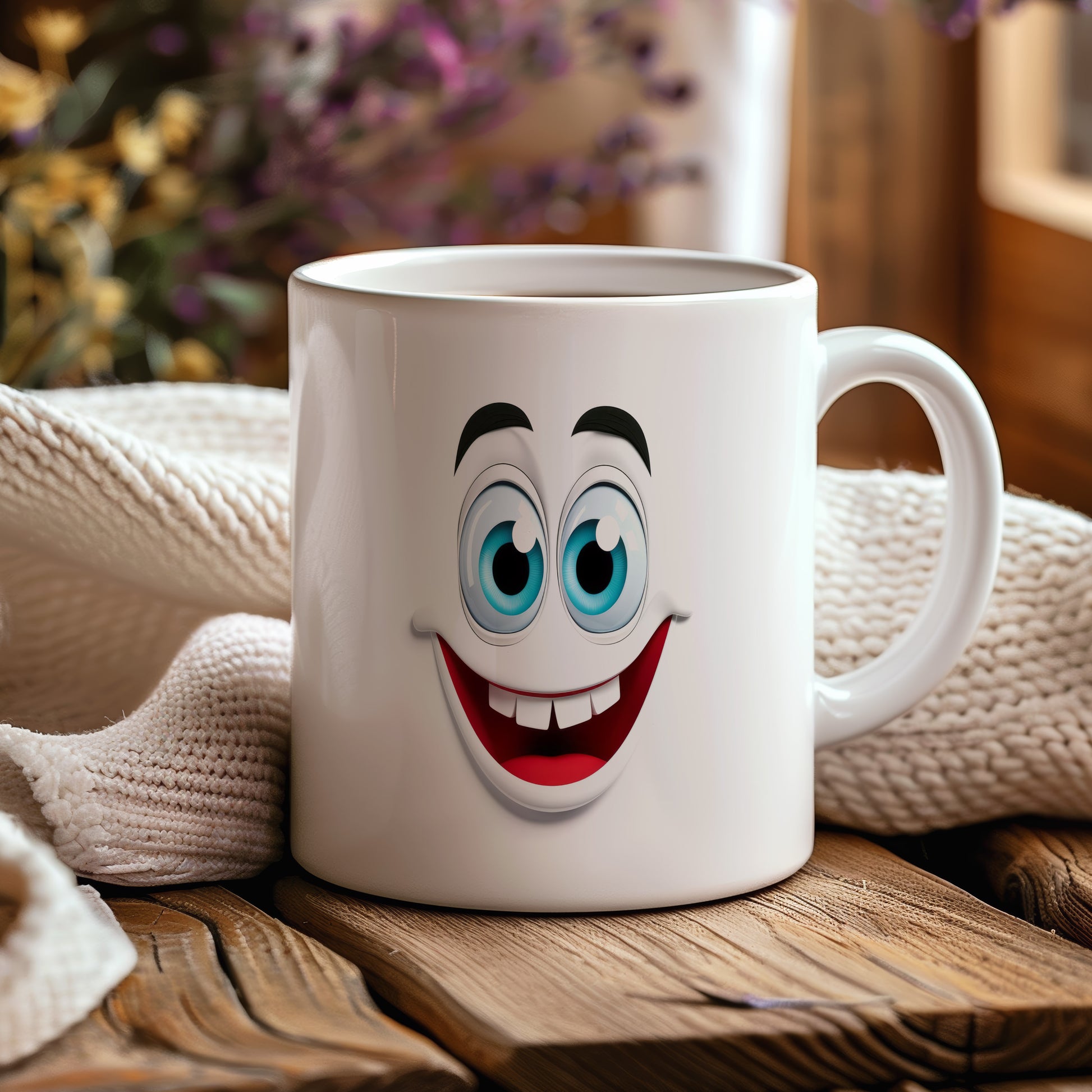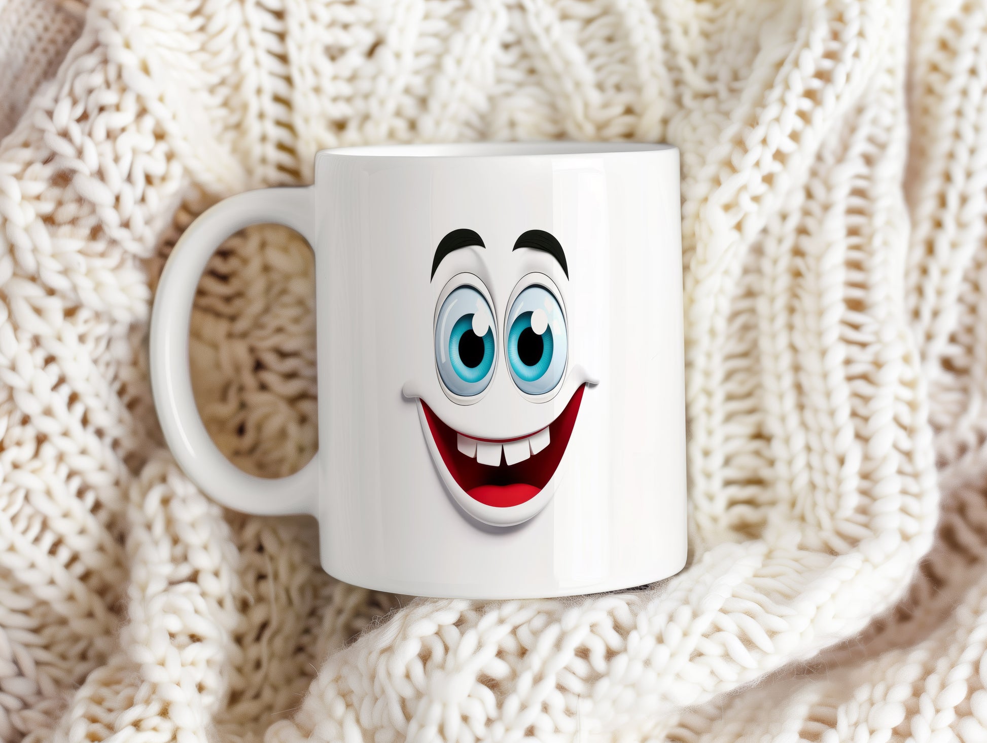 Hrnek s vtipným obličejem – široký úsměv. Skvělý parťák pro ranní kávu i odpolední čaj.