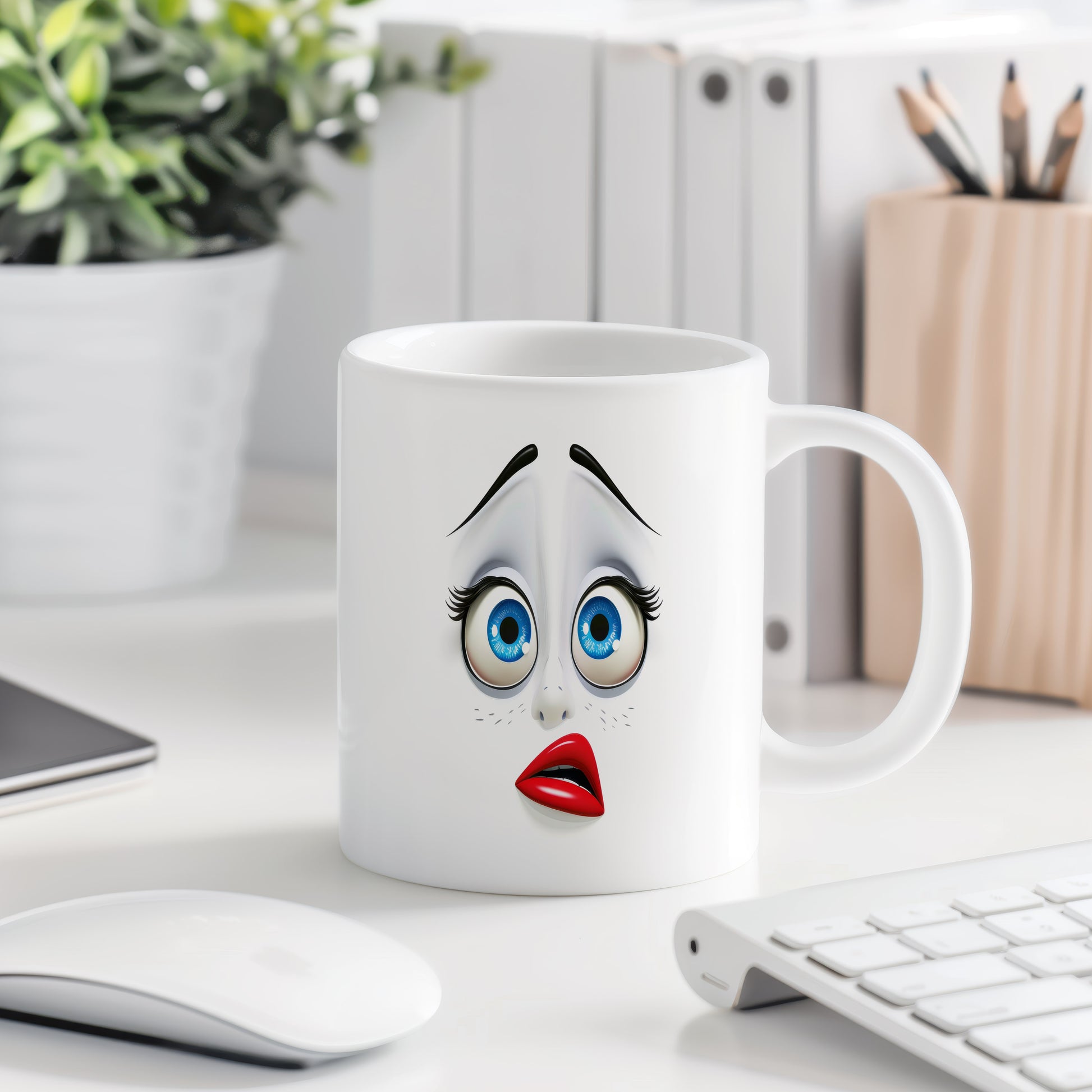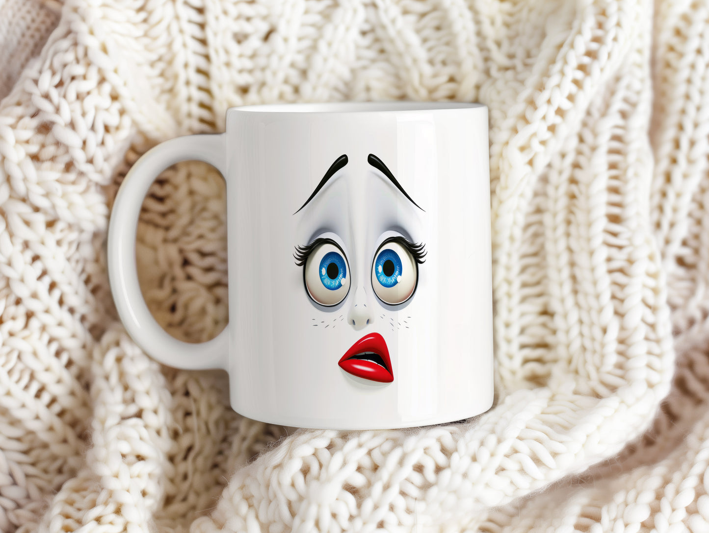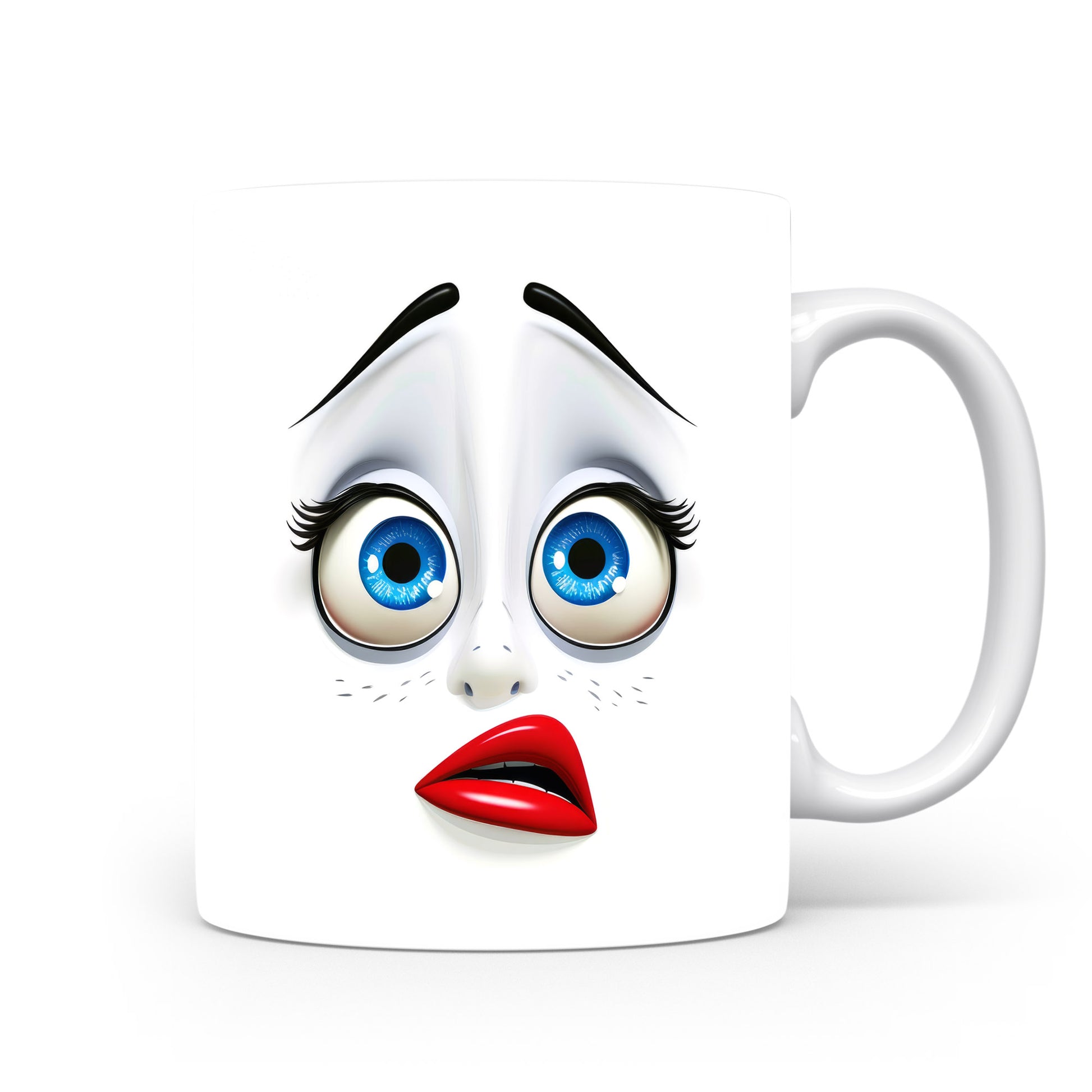 Hrnek s vtipným obličejem – ustaraný výraz. Skvělý parťák pro ranní kávu i odpolední čaj.
